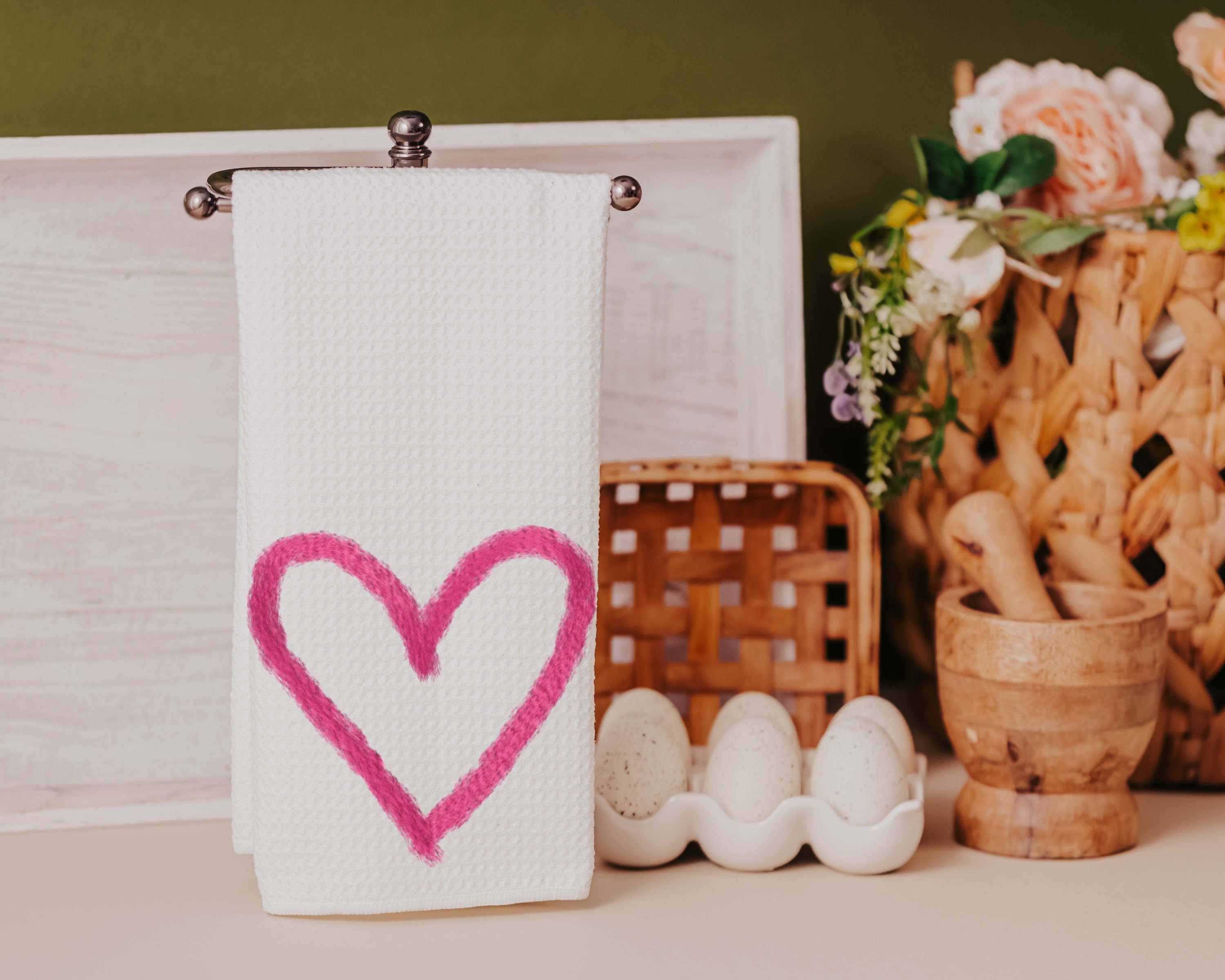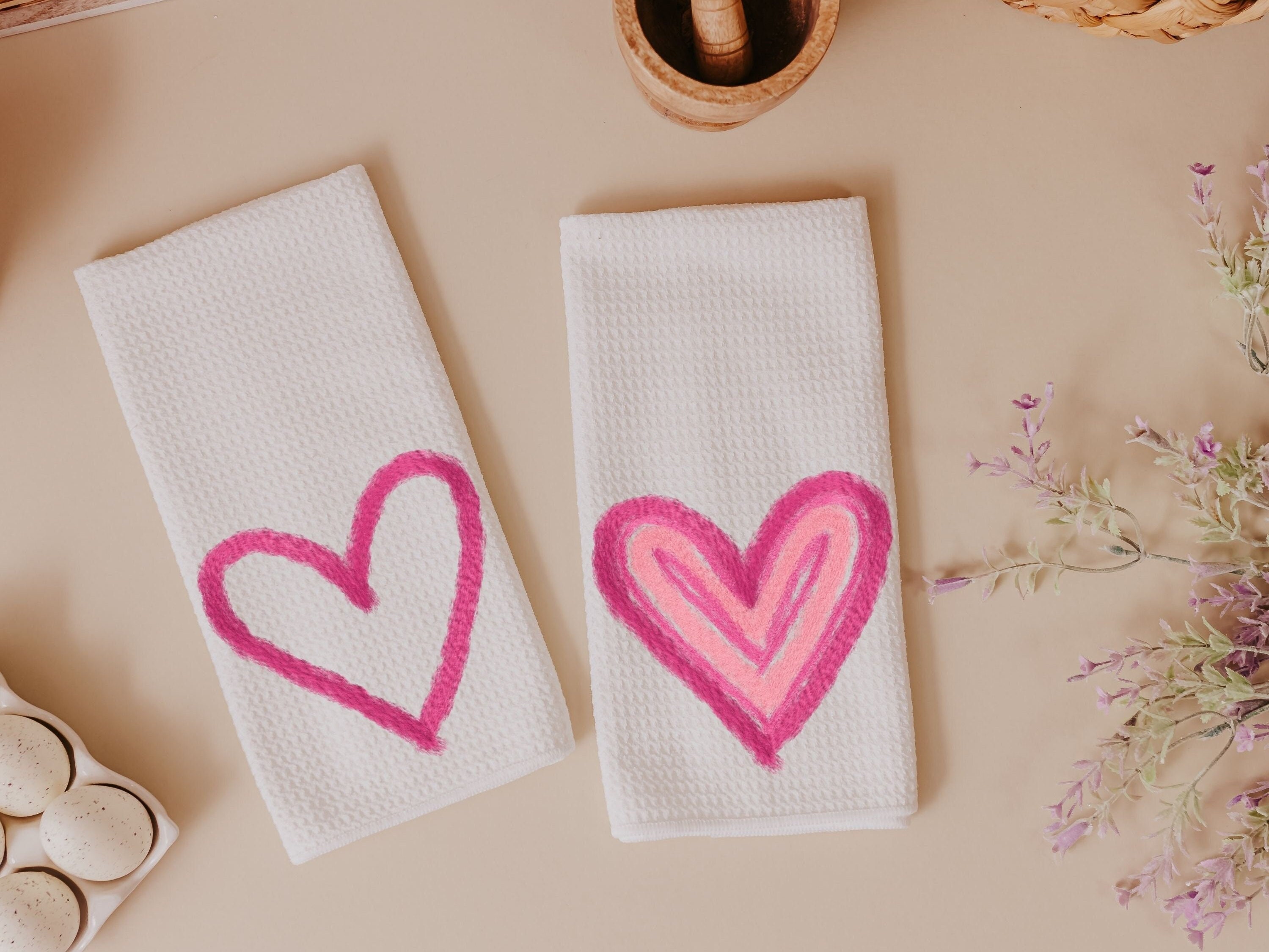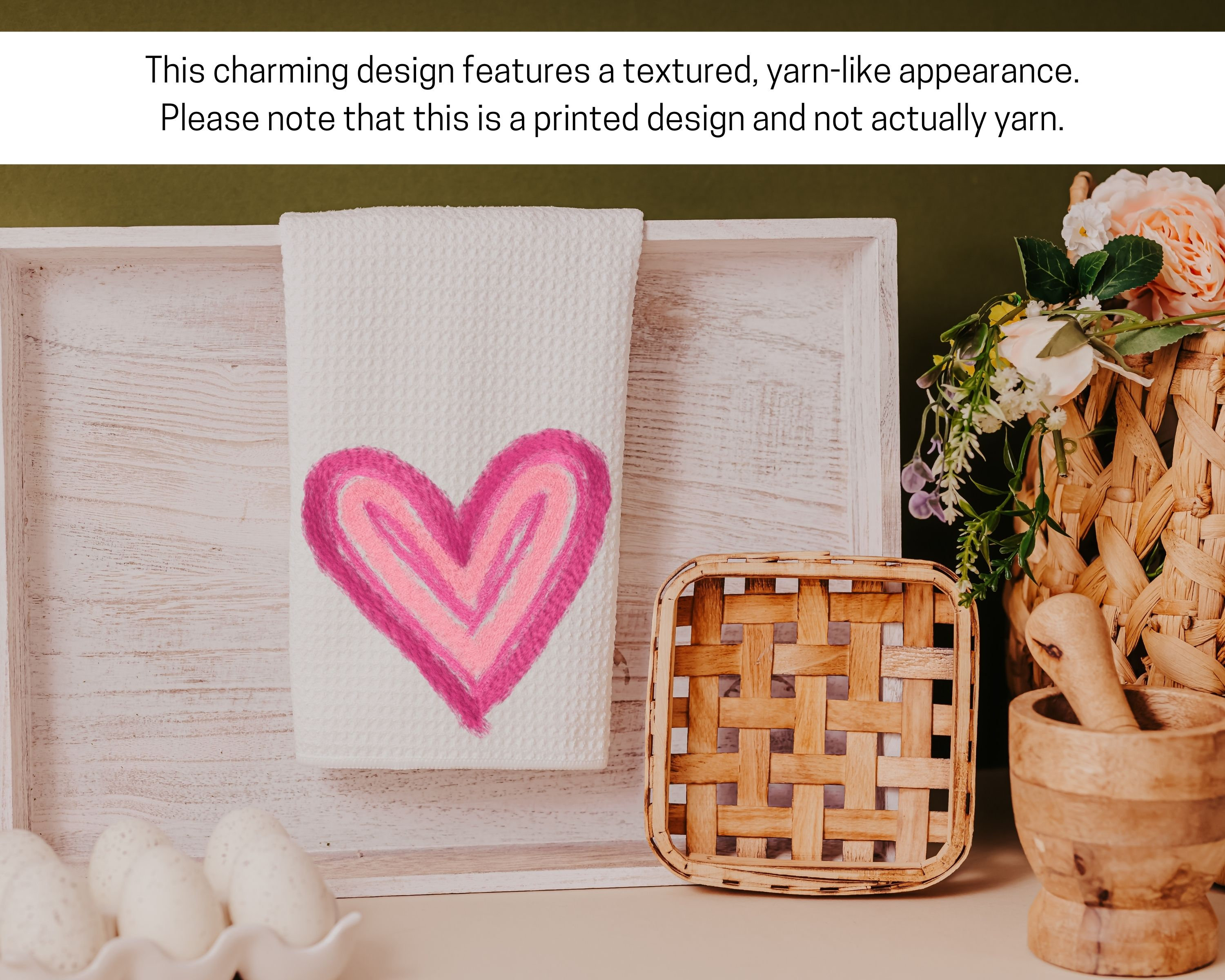 Add a pop of color to your kitchen with our "Faux Yarn, Pink Heart" kitchen towels. These towels are the perfect Valentine's Day addition to your kitchen decor. They make fun and thoughtful gifts for your knitting enthusiast friends. Whether you're looking to treat yourself or surprise a loved one, these towels are the ideal choice. Their beautiful pink heart designs bring a touch of fun to your daily routine. Celebrate the season of love and creativity with these cute Valentines kitchen towels.