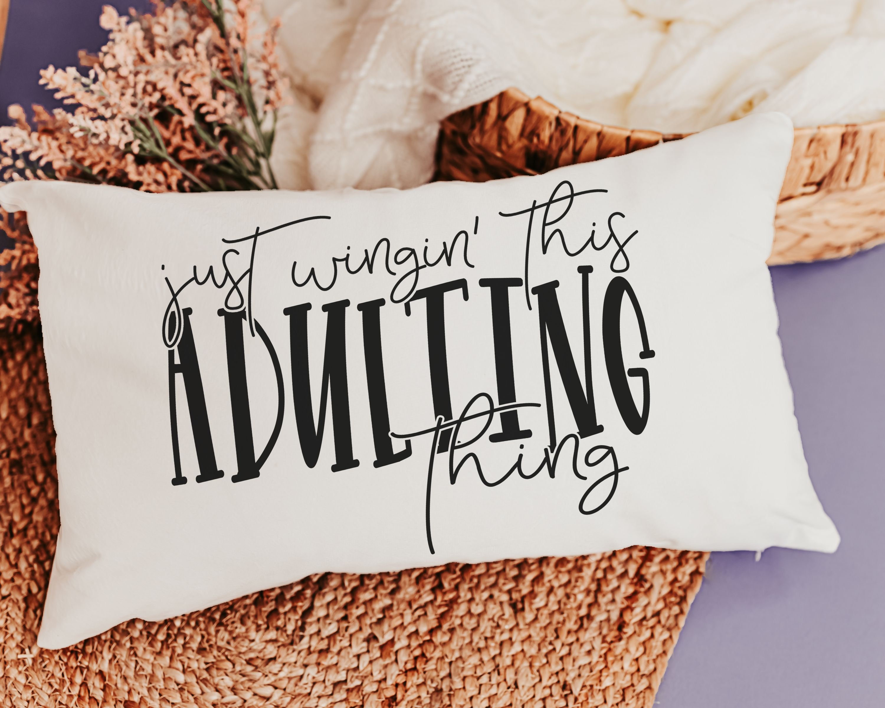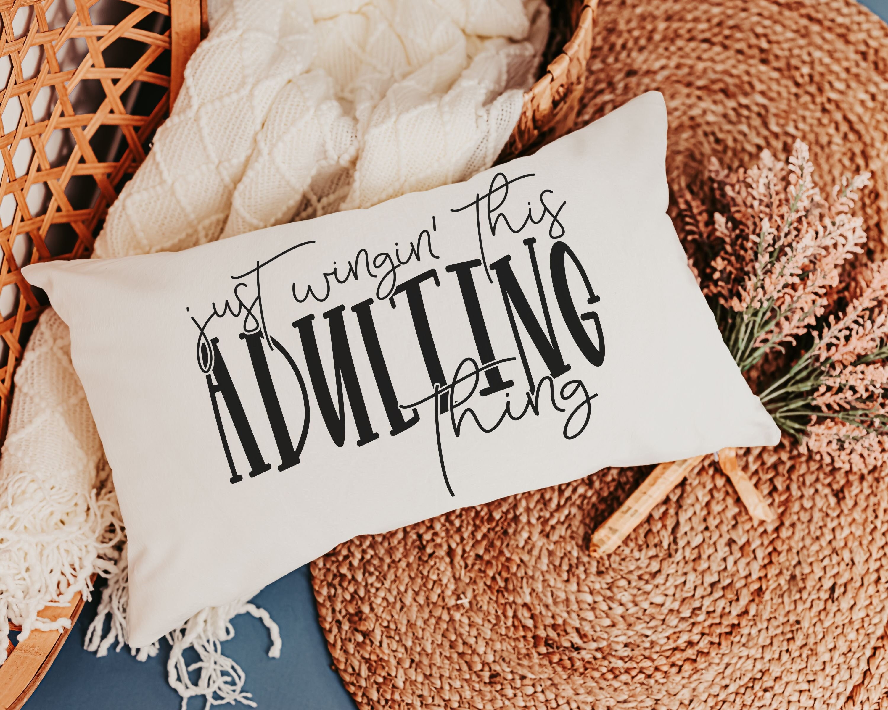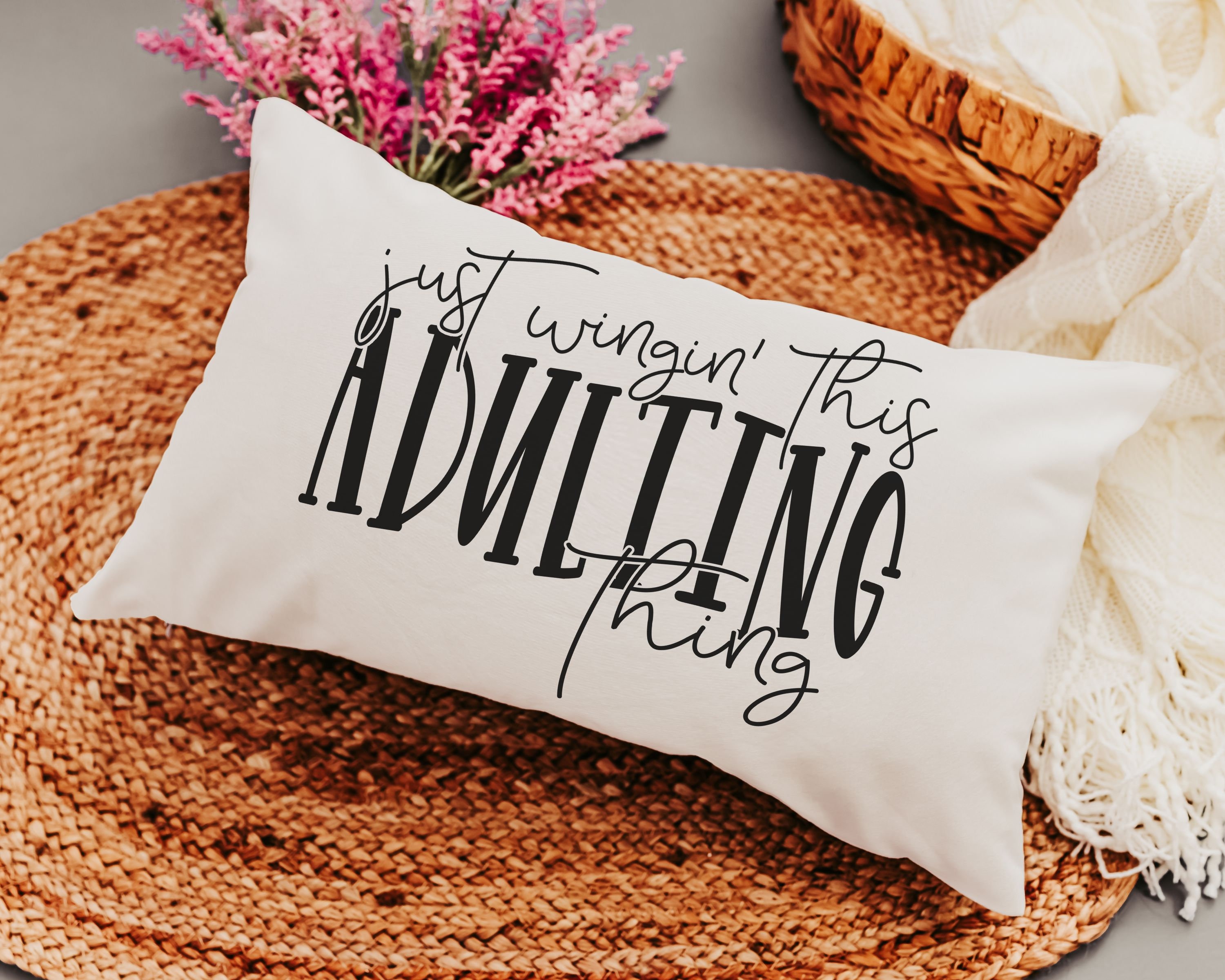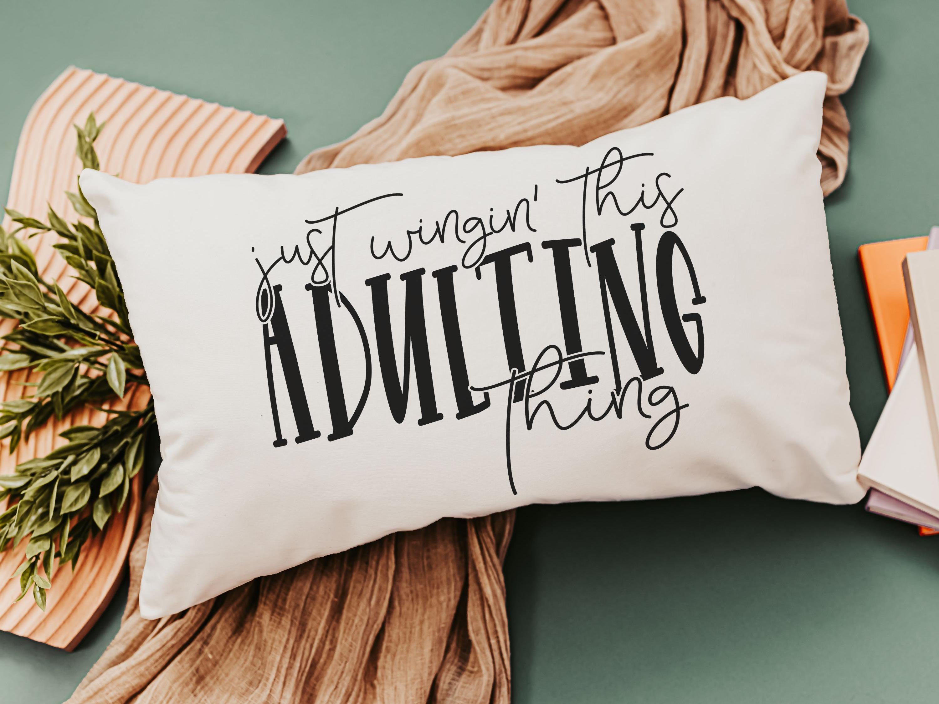 Take on life with a little humor! This "Just Wingin' this adulting thing" funny lumbar pillow is the perfect mix of sarcastic and sassy, making it a great gift for 18th birthdays, college dorms, or anyone navigating adulthood. The 12x20 pillow adds a playful touch to beds, chairs, or study spaces. Ideal for graduates, daughters, or anyone embracing the chaos of life!