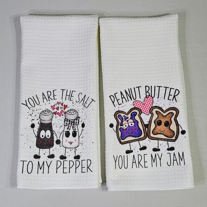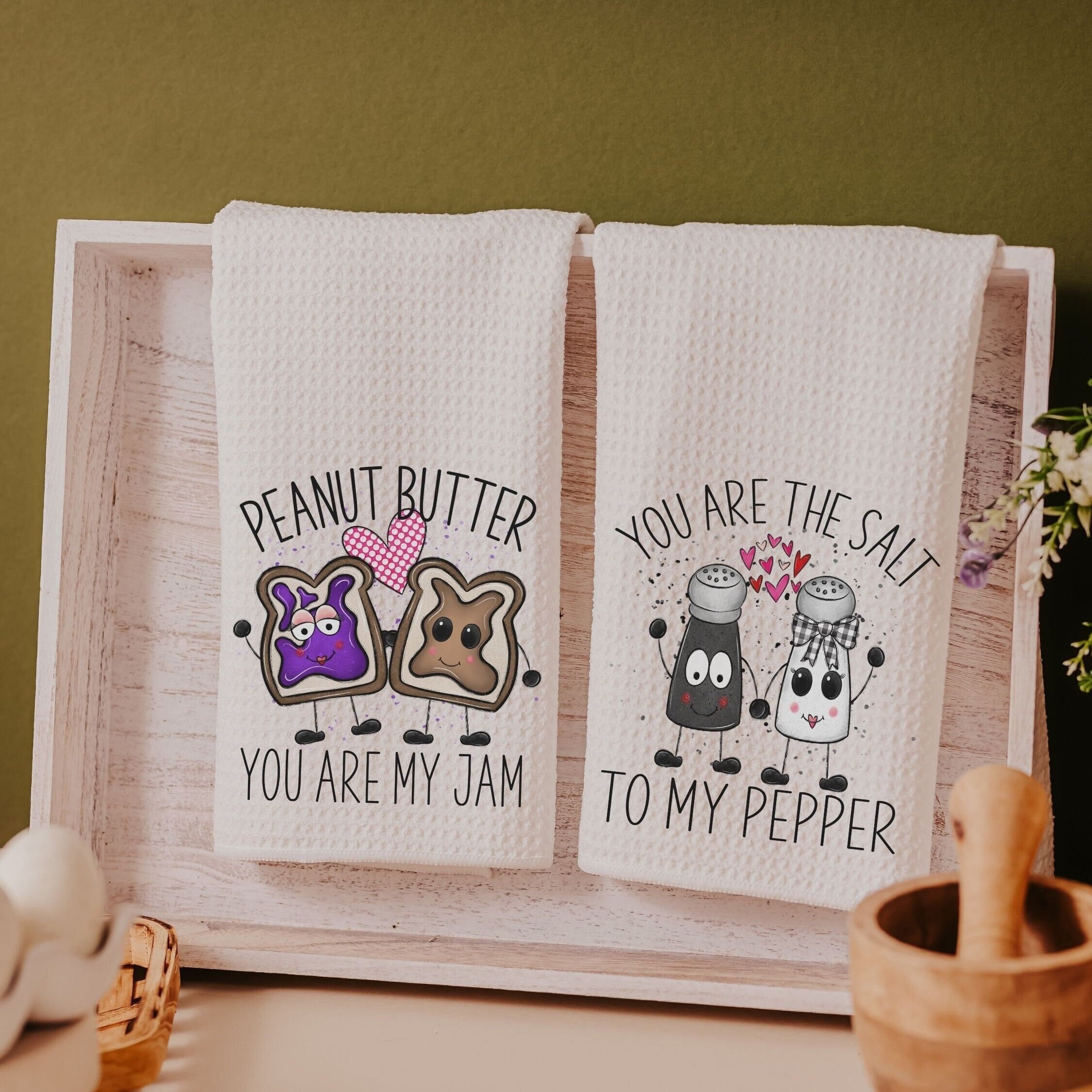 pb and j you're my jam cute Valentines kitchen towels, you're the salt to my pepper funny Valentines gifts for girlfriend, Valentine wedding