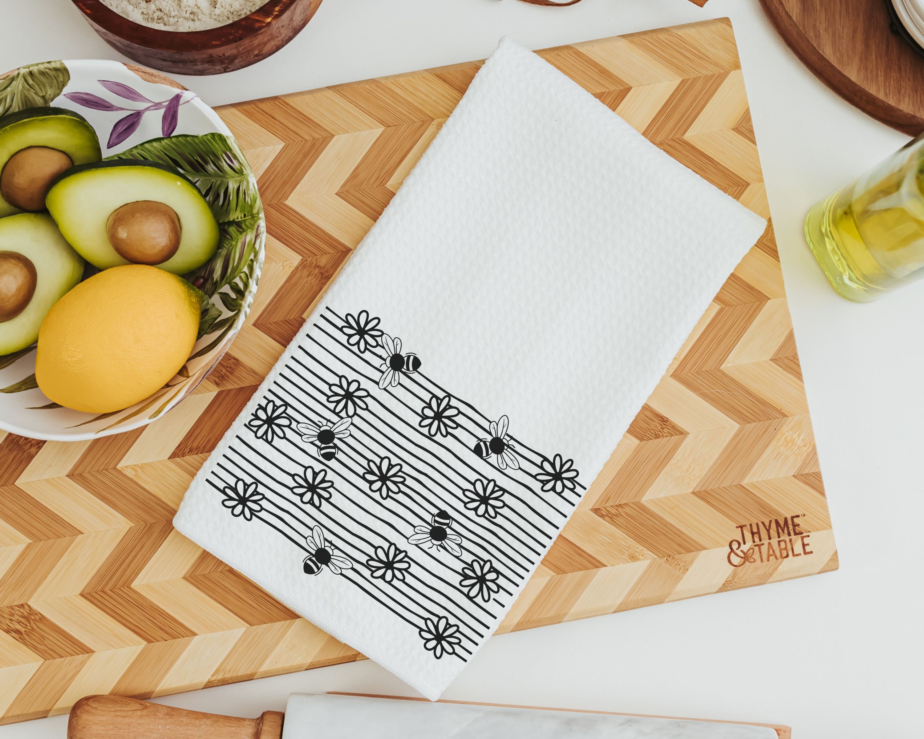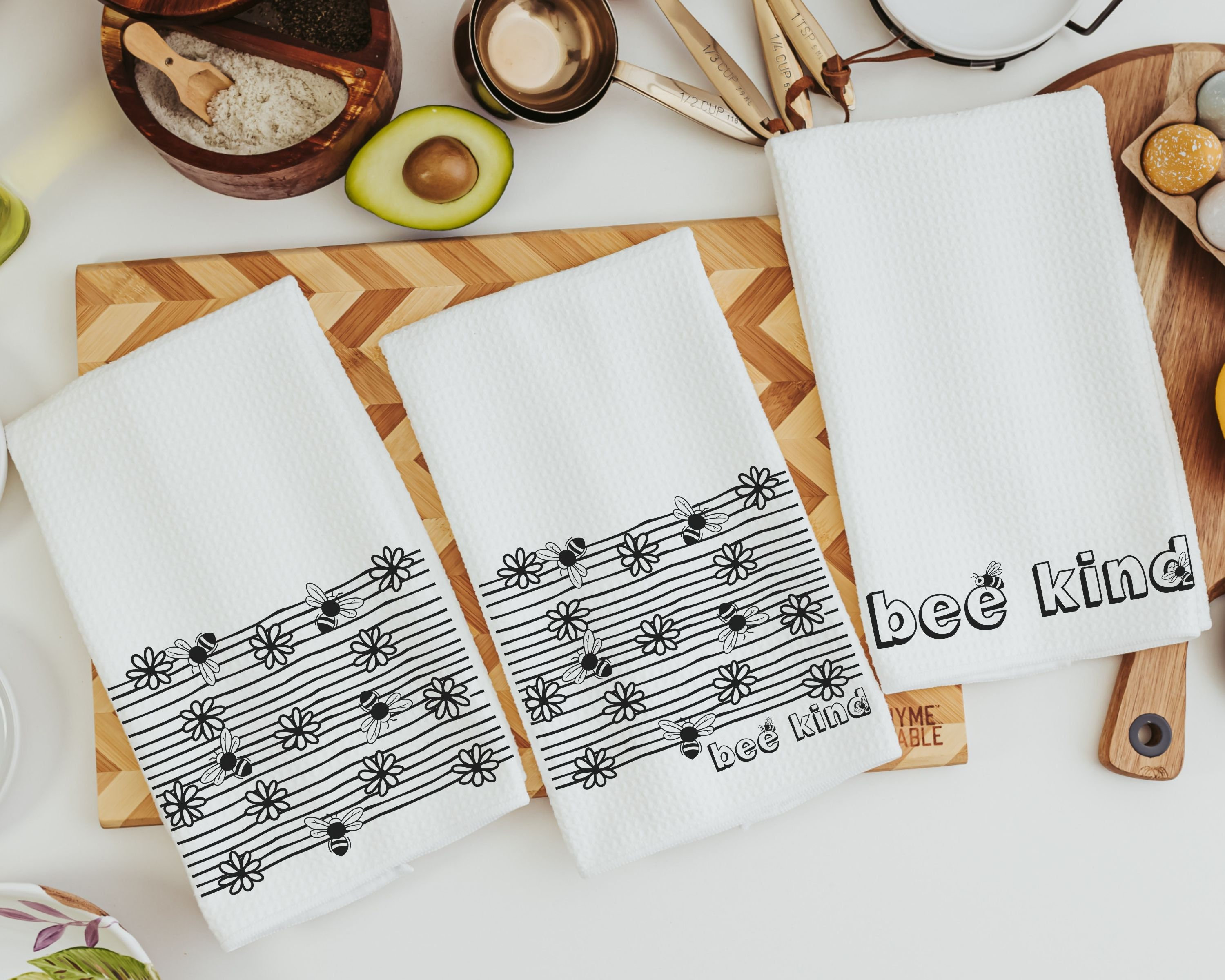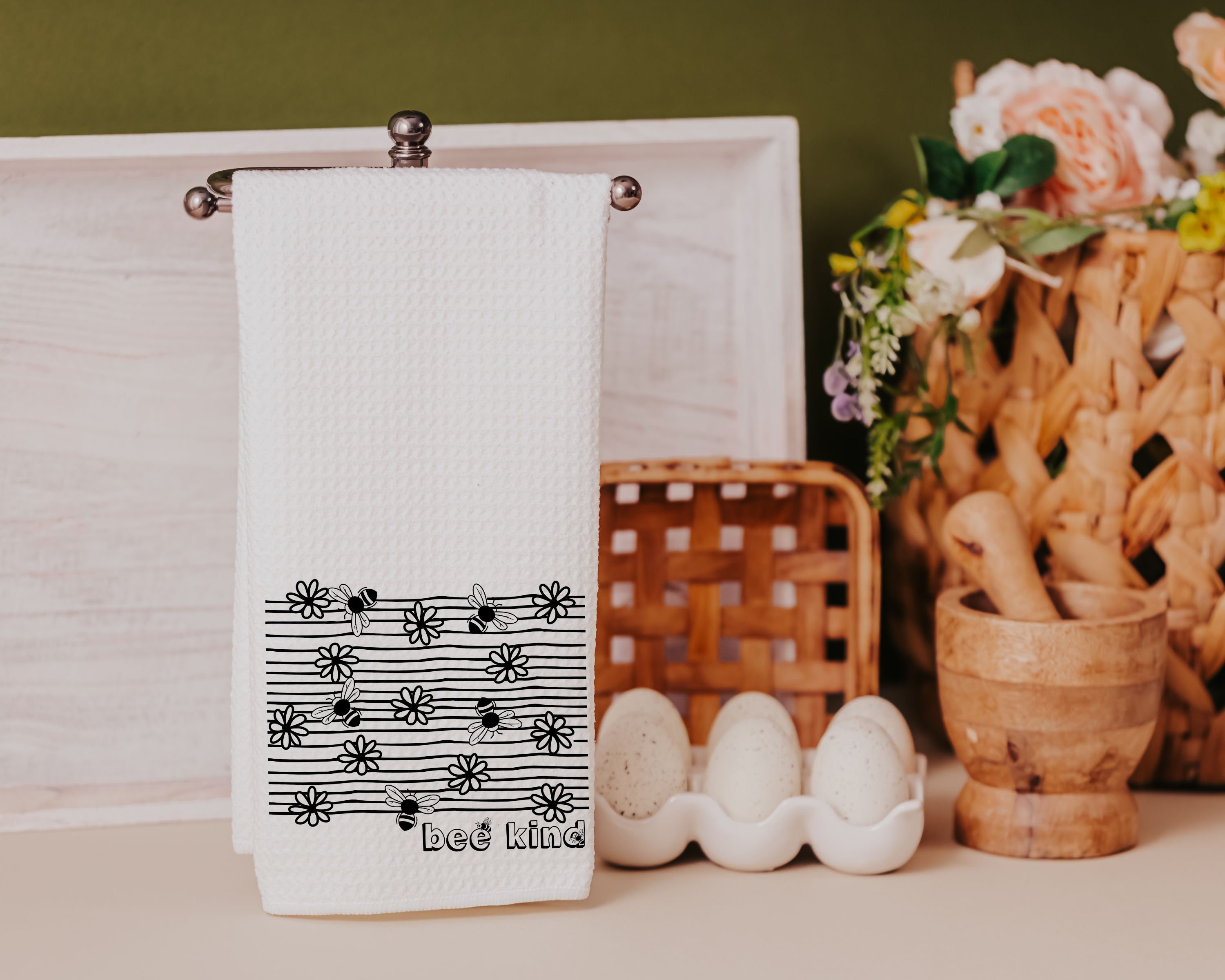 Refresh your kitchen or powder room this spring with our 'Bee Kind' Kitchen Towels. Designed with charming honey bee motifs and black and white daisies, these hand towels are a sweet addition to bumble bee kitchen decor. They make perfect Easter gifts for adults, especially women who appreciate thoughtful touches in their home. Ideal for adding a buzz of spring cheer, these towels are among the best gifts for anyone who loves a blend of functionality and style in their kitchen or powder room decor.