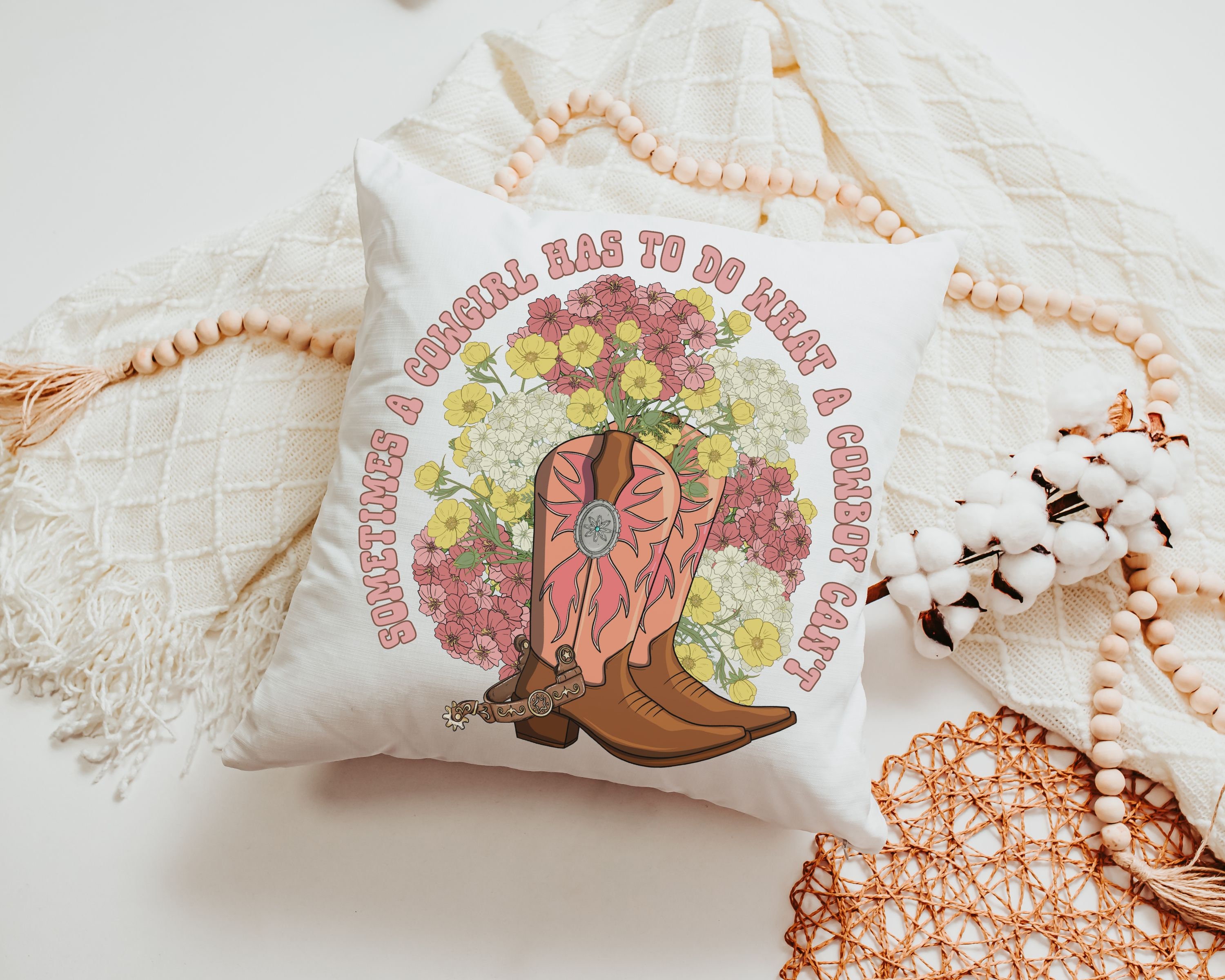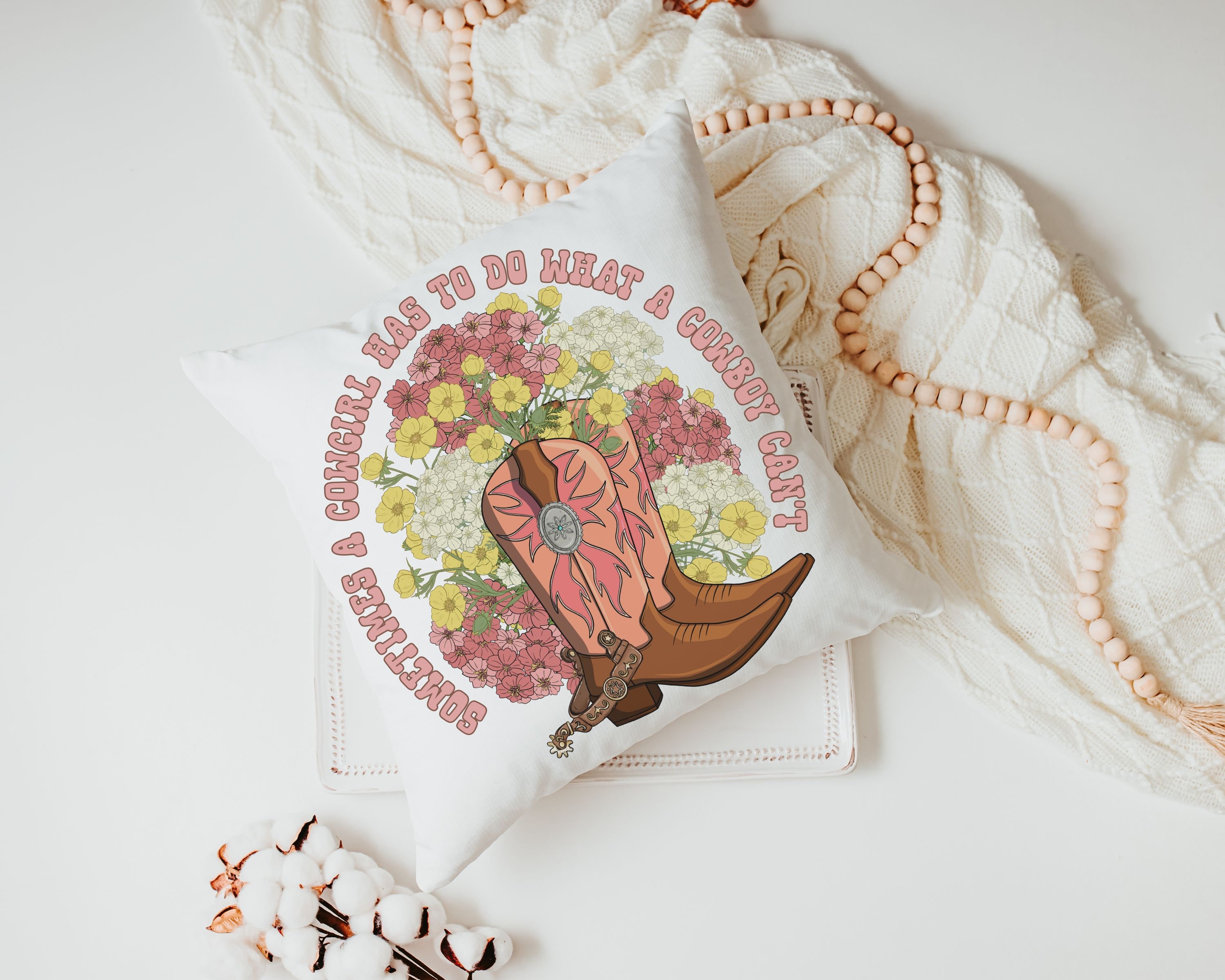 cowgirl throw pillow for couch, girl power gifts, country western nursery decor girl, female empowerment reading nook pillow, country girl