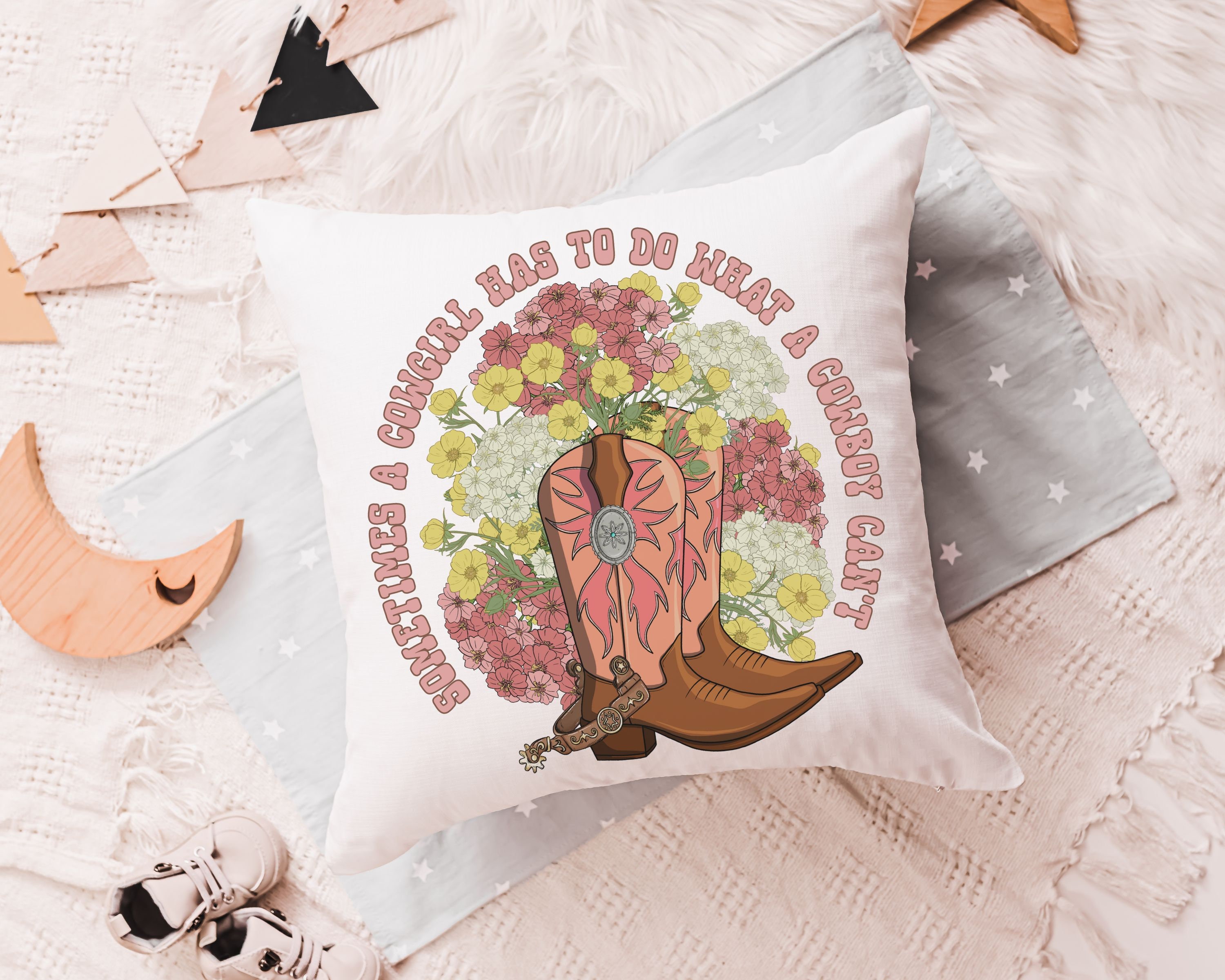 A cute western touch for a couch, reading nook, or girl’s room, blending cowgirl style with a confident, empowering feel. A fun gift for country girls, new nurseries, or anyone who loves girl-power decor. Works just as well as a cozy accent pillow as it does a statement piece for everyday spaces.