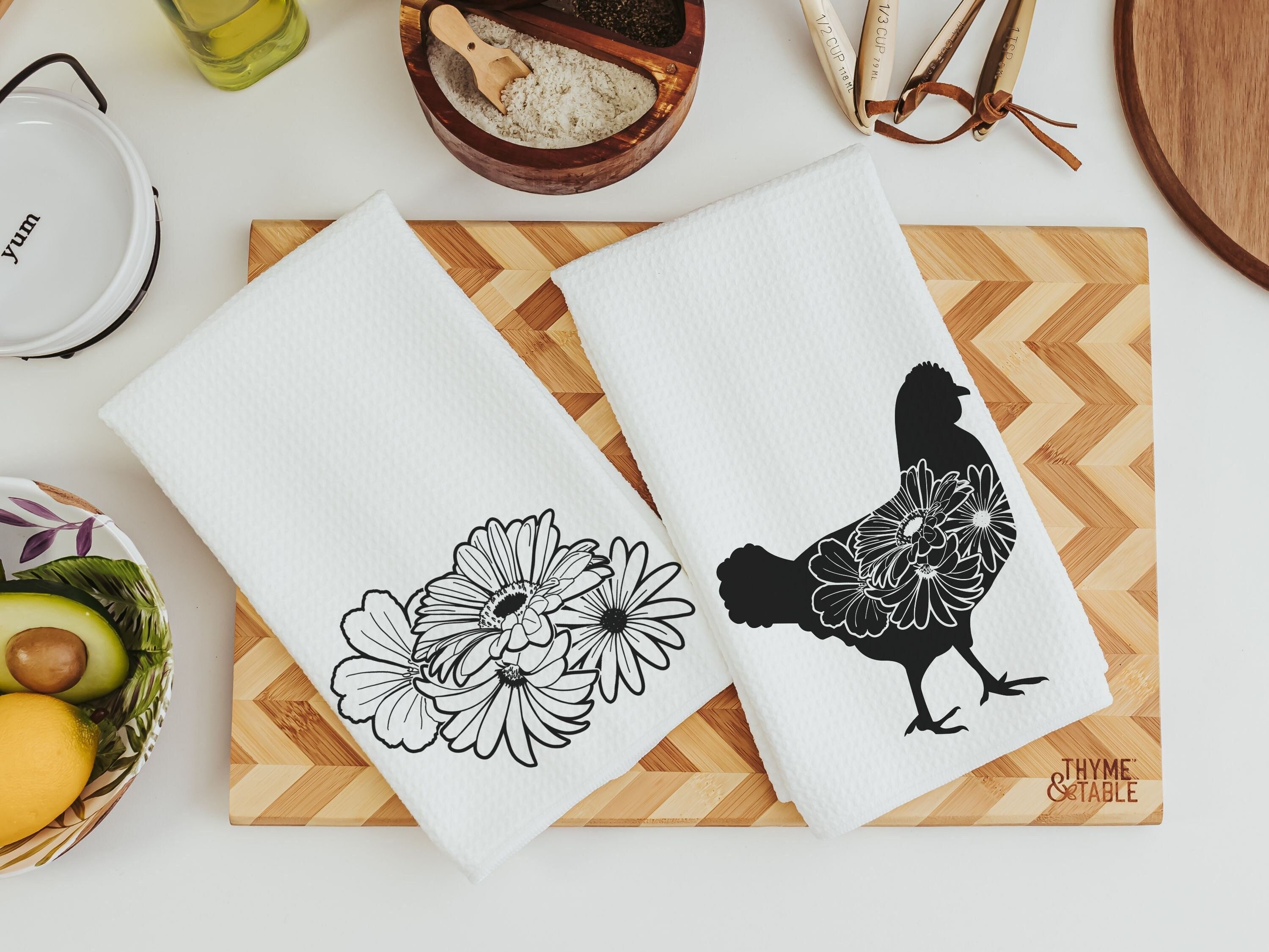 Decorate your kitchen this Spring with our Floral Chicken Kitchen Towels. These towels designed with a cute floral chicken and florals are a chic addition to any farmhouse kitchen decor. They're not just limited to the kitchen – these towels are perfect for the bathroom, too. Ideal for 'chicken moms' or any woman who appreciates cute chicken gifts.