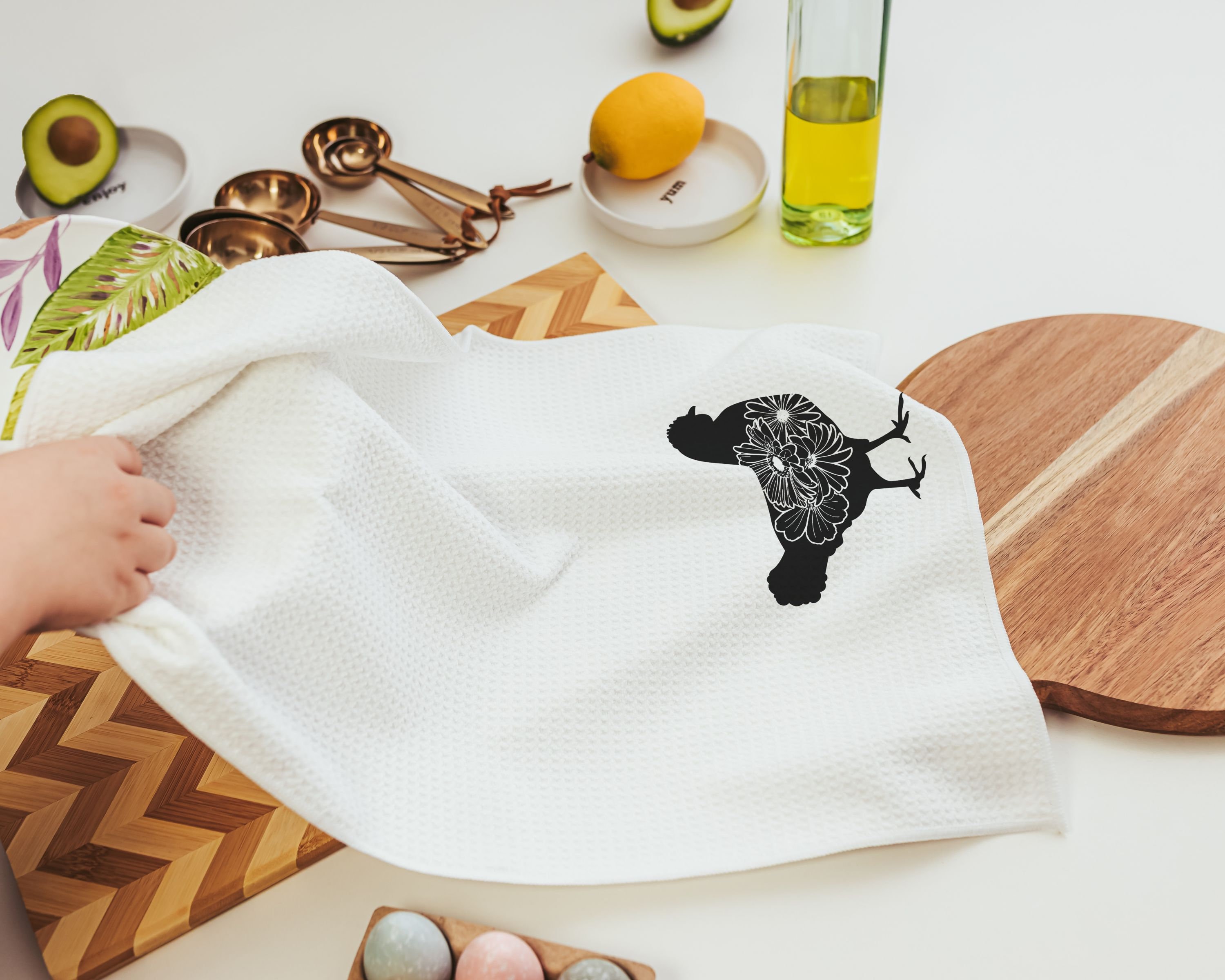Spruce up your kitchen this Spring with our Floral Chicken Kitchen Towels. These black and white towels, designed with cute chicken and florals are a chic addition to any farmhouse kitchen decor. They're not just limited to the kitchen – these versatile hand towels are perfect for the bathroom, too. Ideal for 'chicken moms' or any woman who appreciates charming chicken gifts, these towels blend functionality with style. A beautiful way to celebrate Spring!