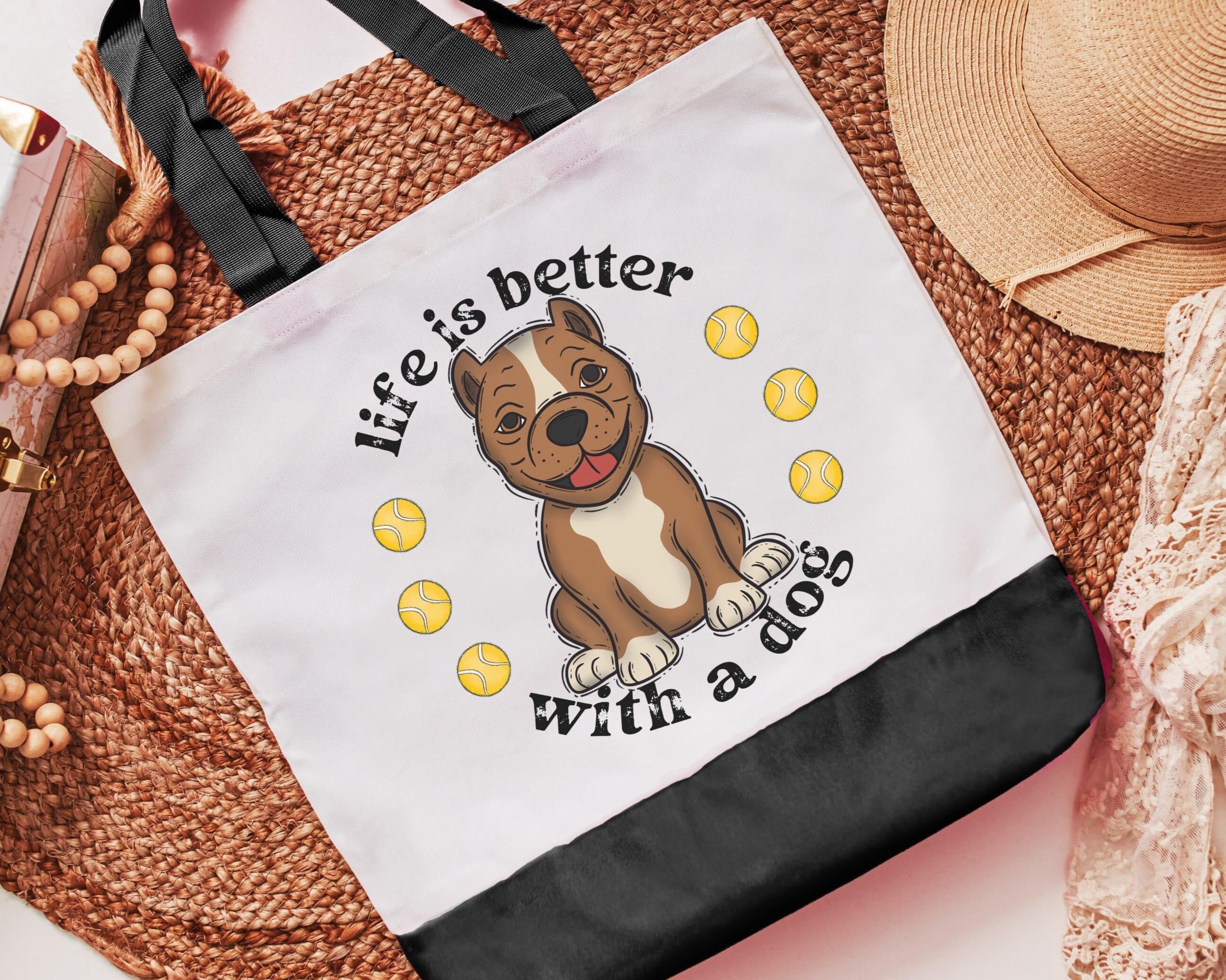 Life is Better With Dogs says it all for this American pit bull terrier tote. A handy bag for errands, shopping, or everyday use and a great Mothers Day gift from the dog. A fun pick for pitbull mamas and Staffordshire bull terrier lovers who want a practical, reusable bag.