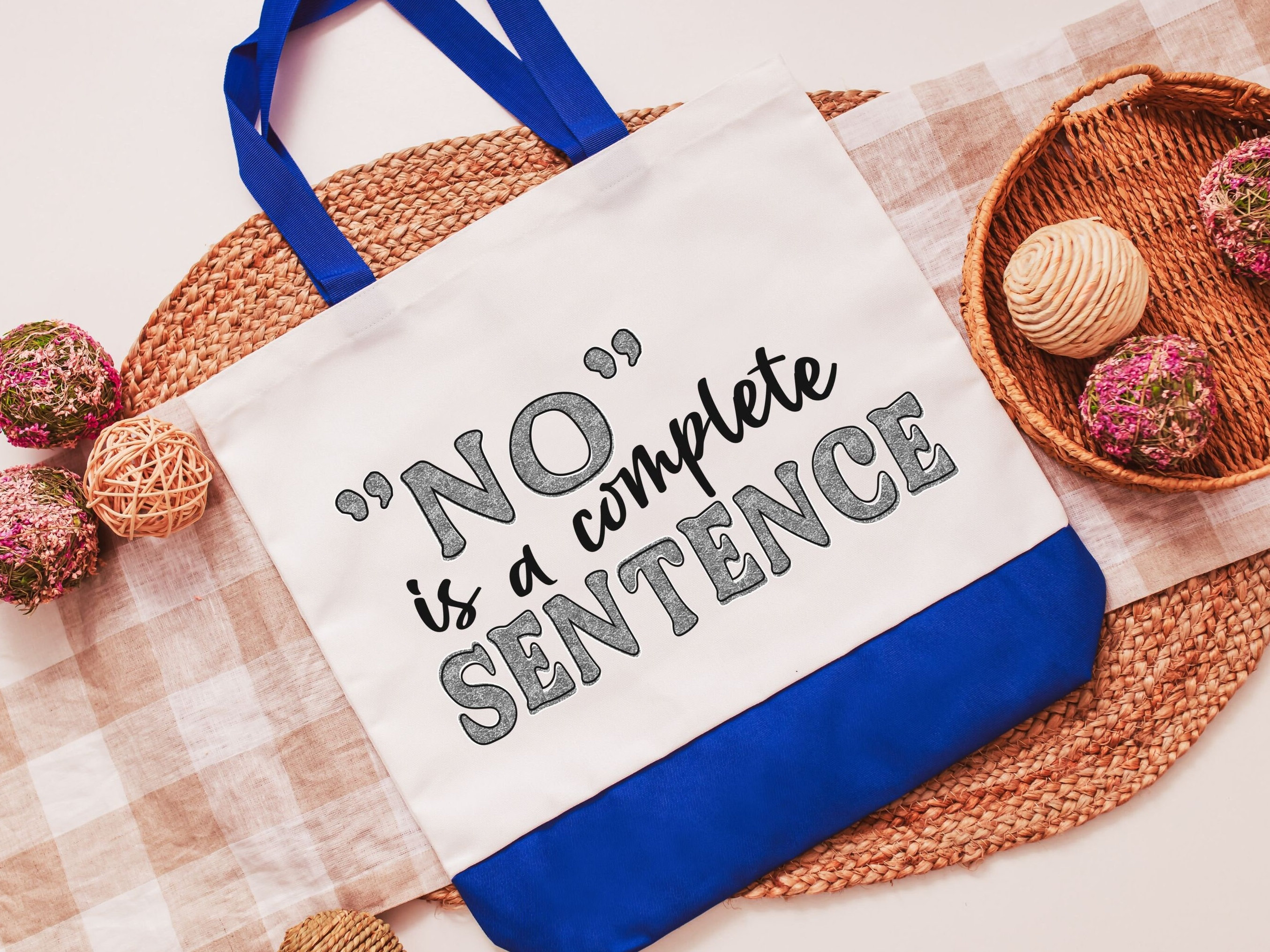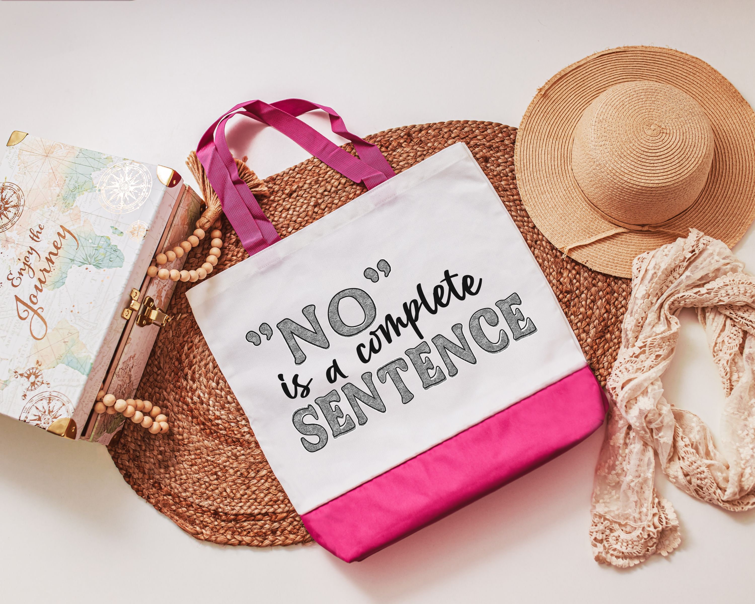 Make a statement with this bold 'No is a Complete Sentence' tote bag, perfect for books, errands, or everyday essentials. A great gift for strong women, best friends, or anyone who believes in empowerment. Durable, reusable, and designed to inspire, this girl power gift is both practical and meaningful.