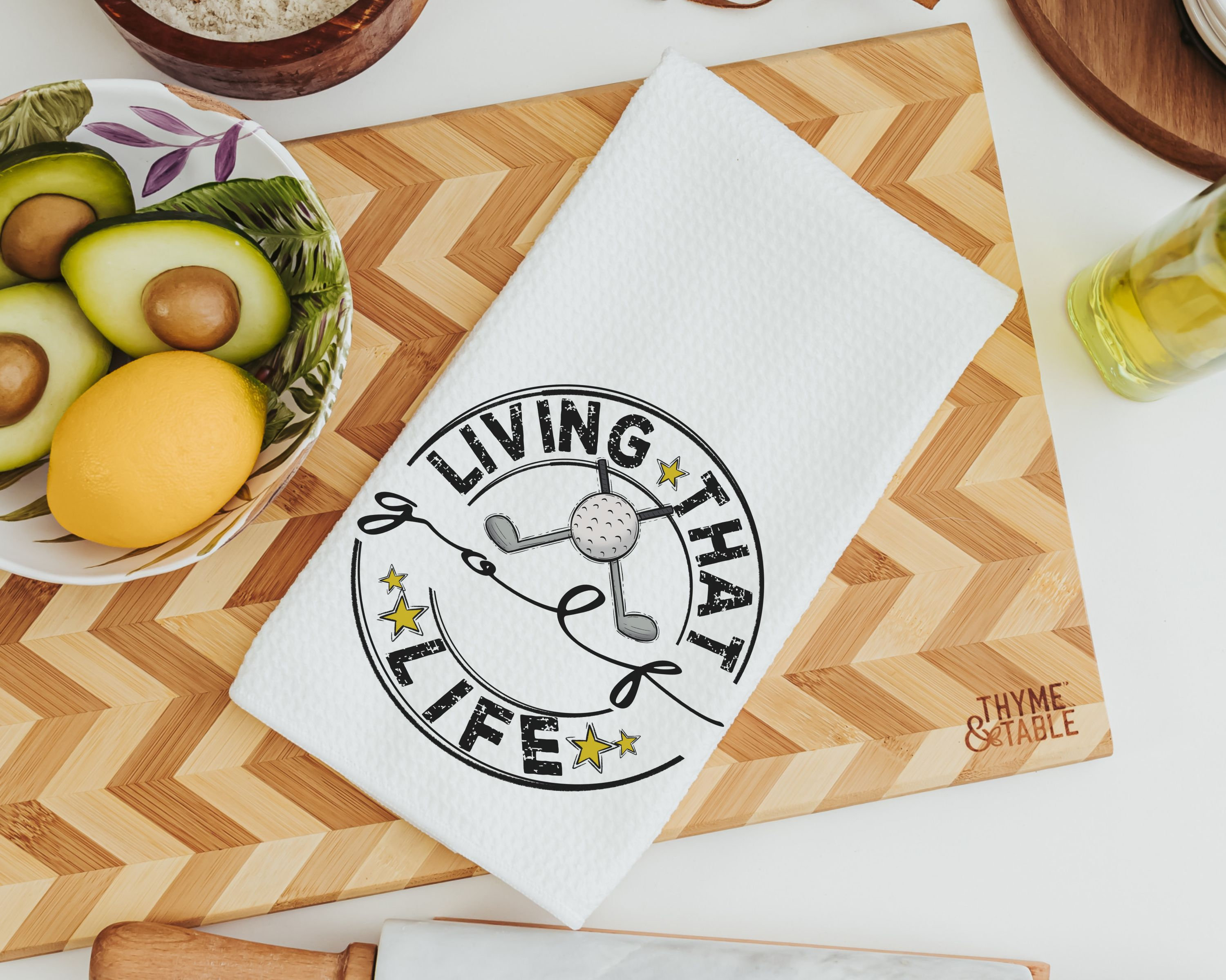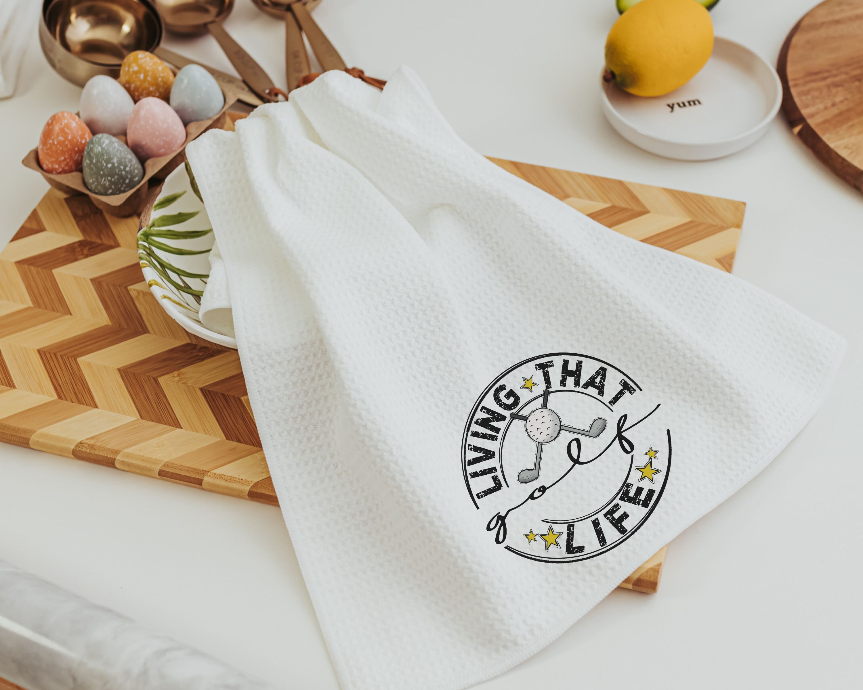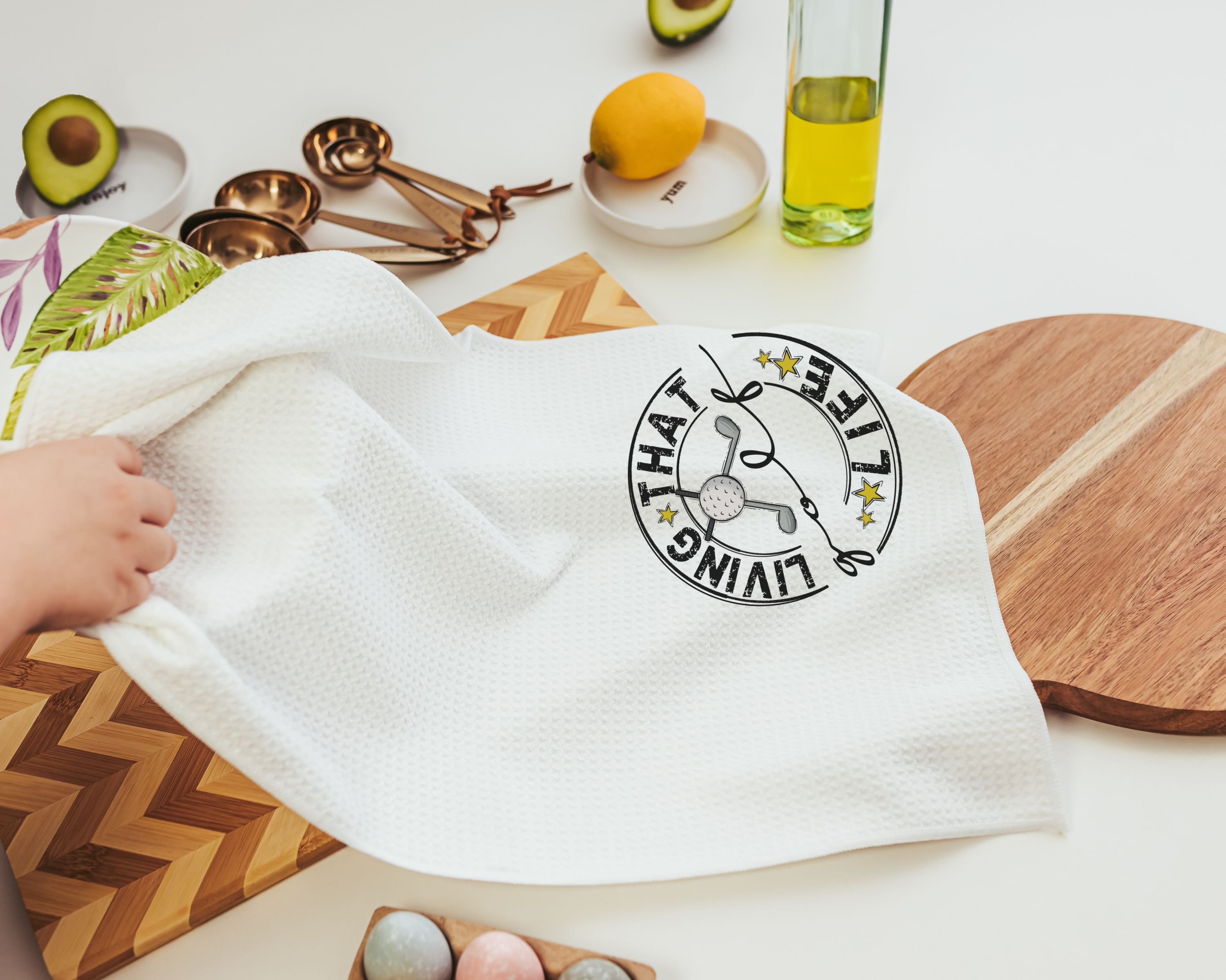 Celebrate the golf enthusiast in your life with our 'Living That Golf Life' golf towels. Perfect for Dad, father-in-law, or stepdad, these towels make a fantastic Father's Day gift. These funny and practical golf gifts are great for men or women who love the sport. Ideal for vacation home decor, these golfer gifts add a touch of humor and functionality to their golfing routine.