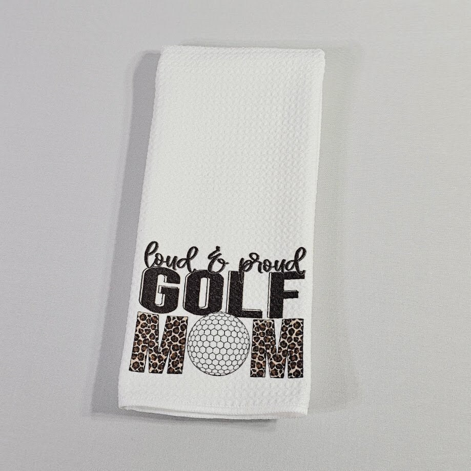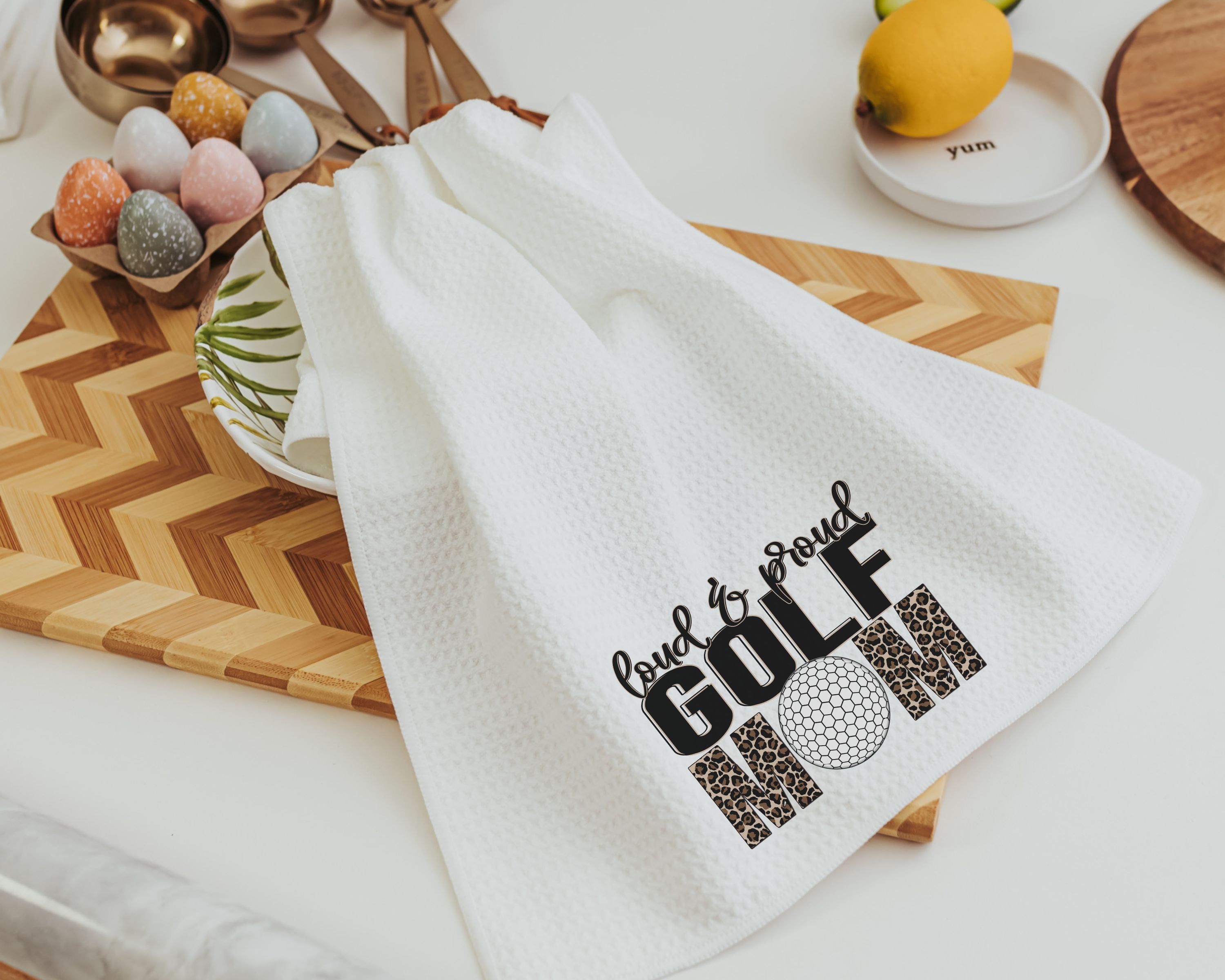 loud and proud golf kitchen towels, golf mom gift, leopard print golf towels for women, step mom Mothers day gift from son, golf hand towel