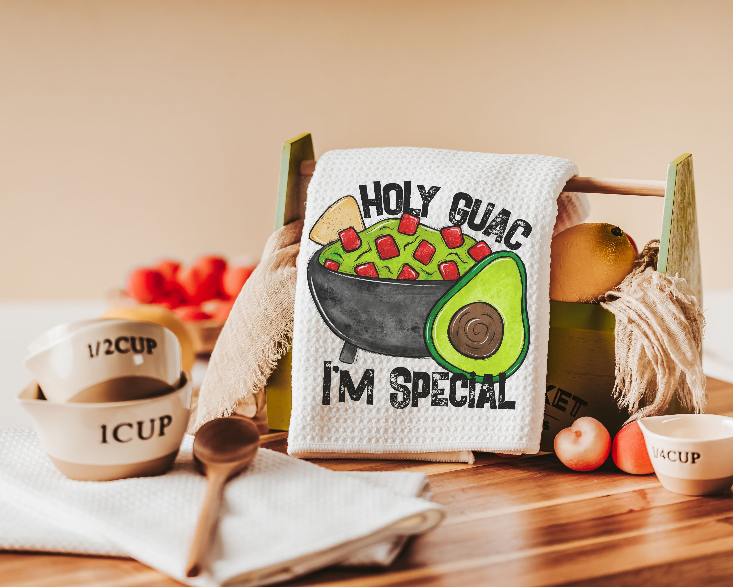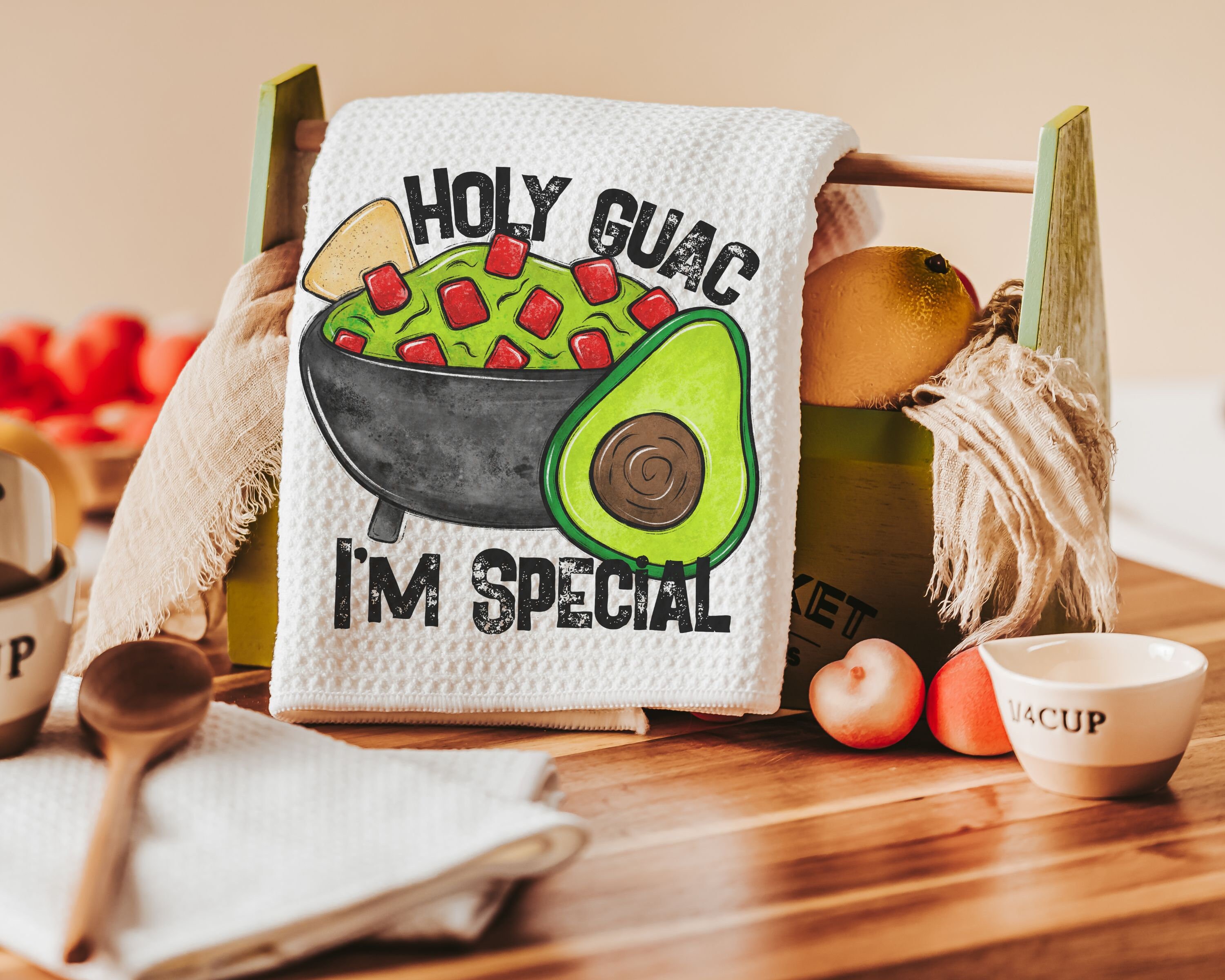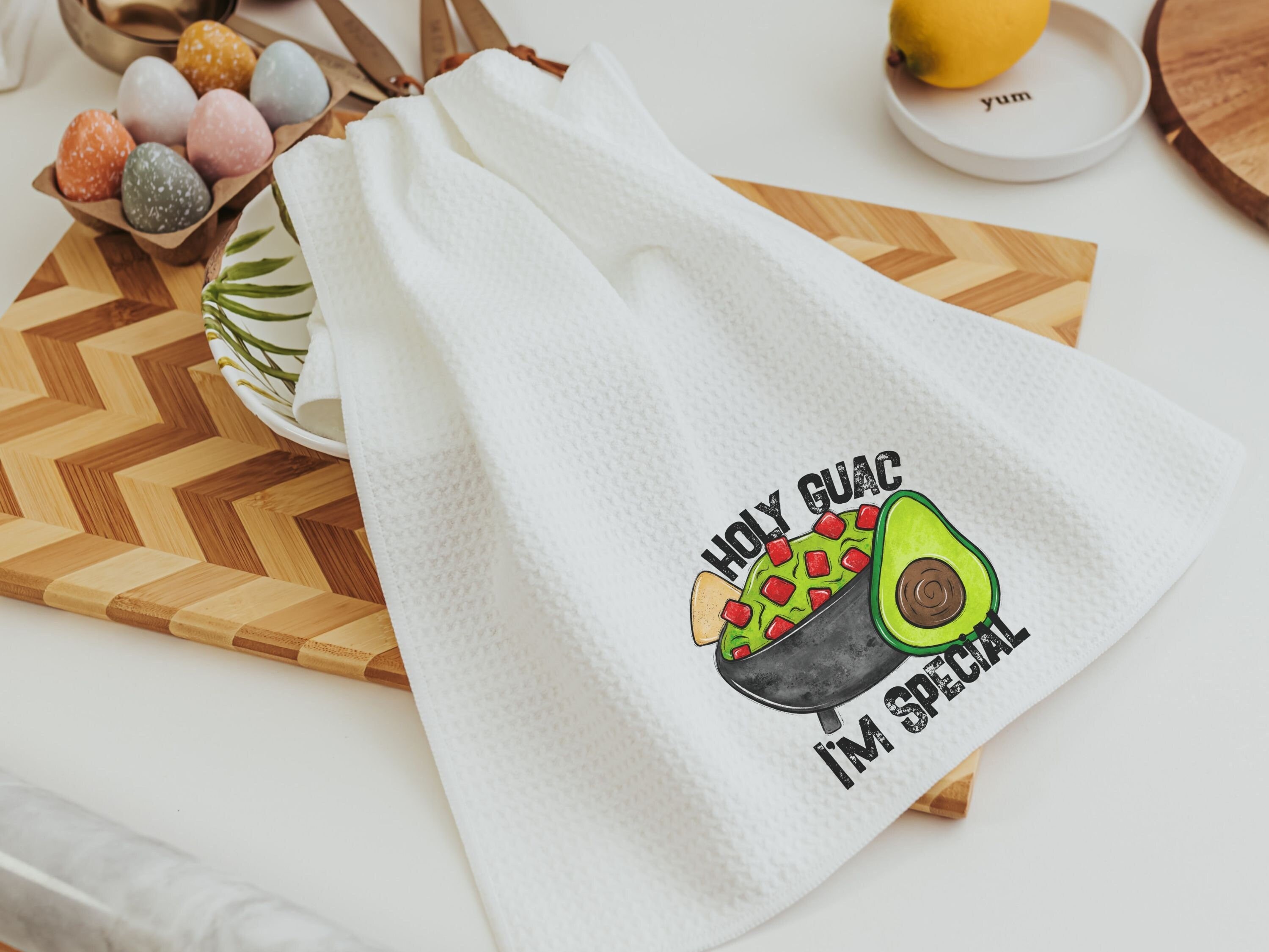 Spice up the kitchen with a little humor! These Holy Guacamole I'm Special fiesta kitchen towels add a fun and sassy touch to any space. Perfect for Taco Tuesday, foodie friends, or anyone who loves a good pun, these funny dish towels make a great gift for hosts, taco lovers, or anyone who enjoys a little sarcasm in their decor. Machine washable and designed to handle everyday spills with style!