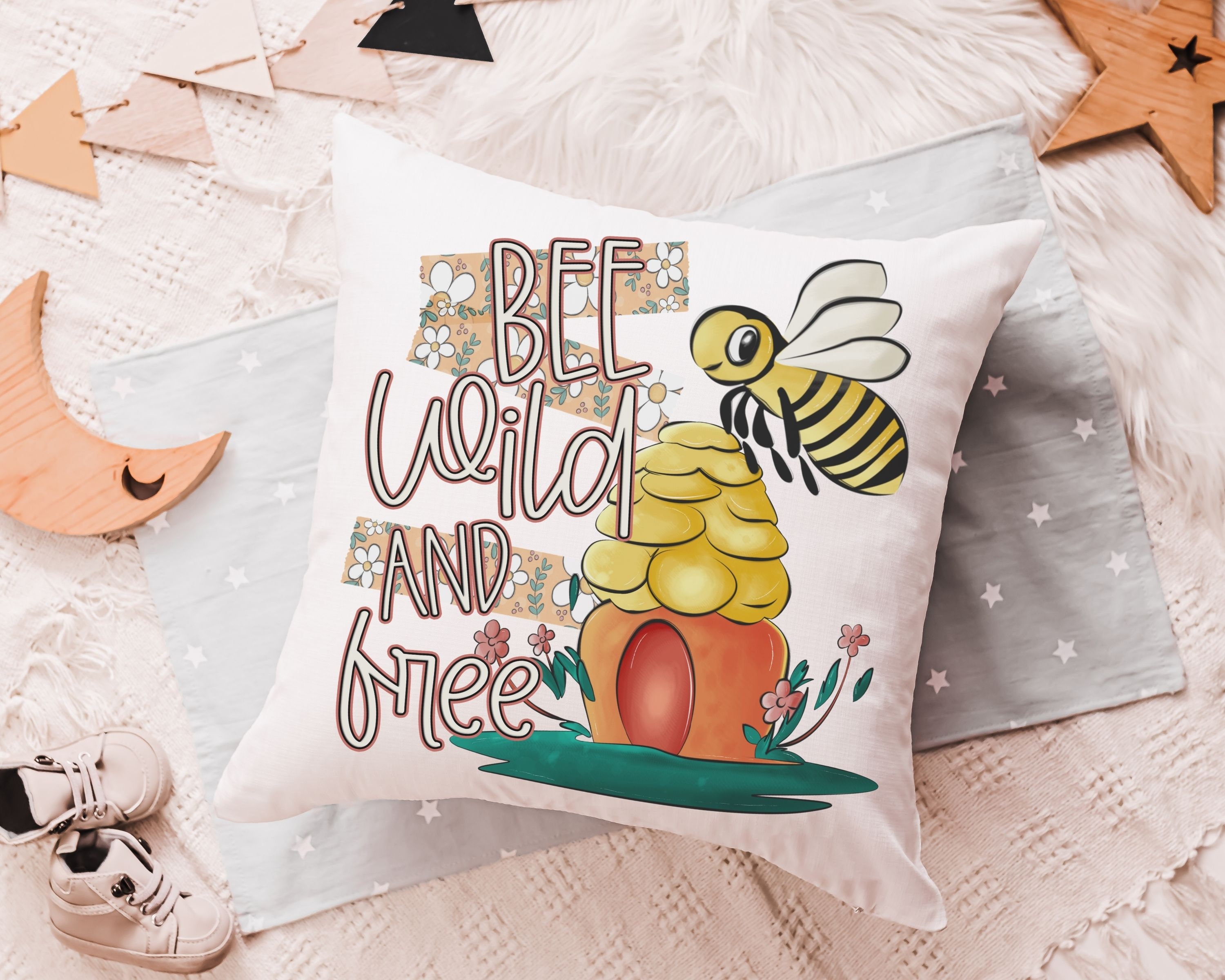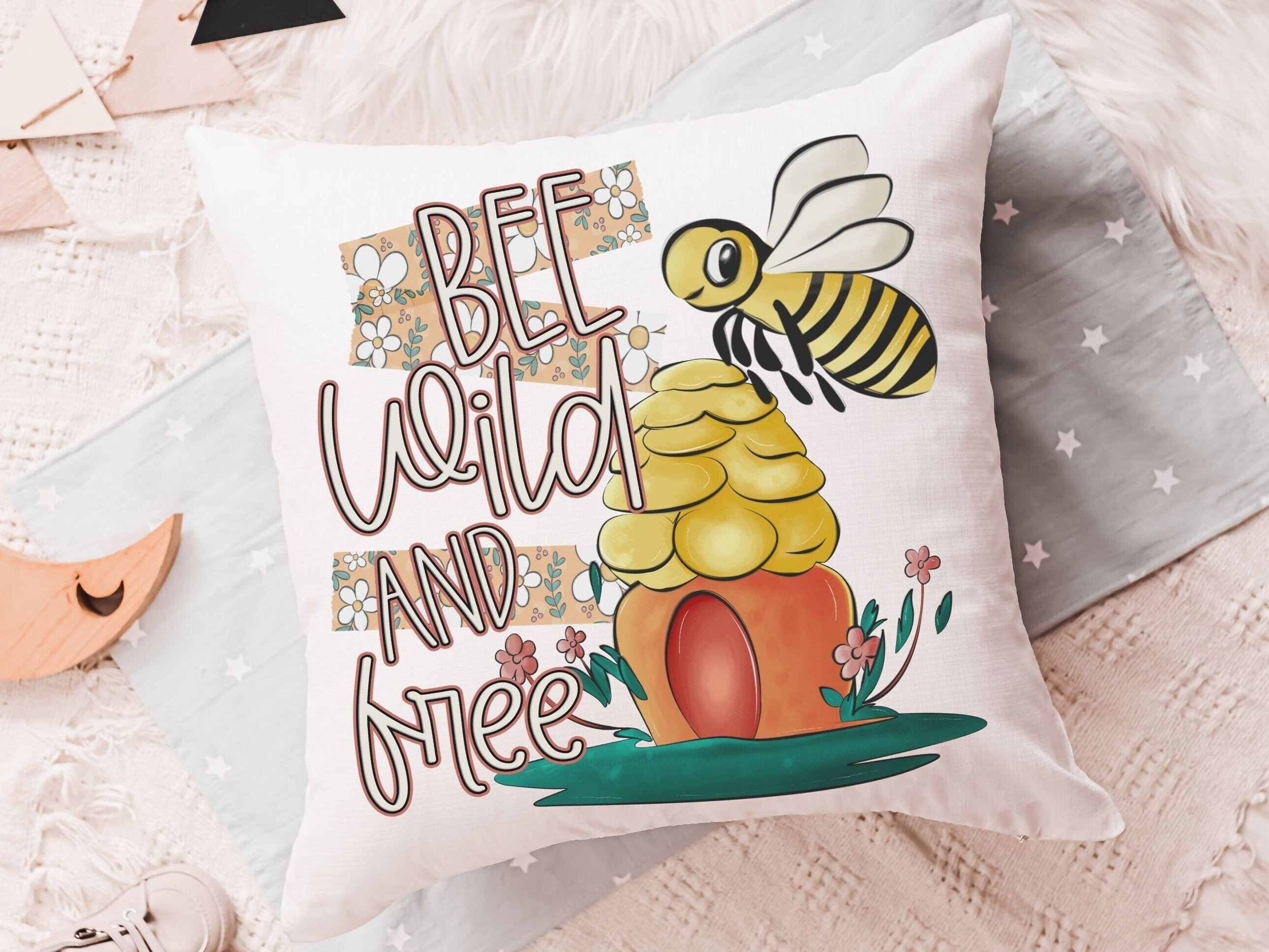 Bring a sweet touch to any space with this “Be Wild and Free” bumble bee throw pillow. Perfect for kids’ reading nooks, classrooms, or nurseries, it makes an inspiring honey bee baby shower gift and doubles as cheerful decor for a child’s room. A cute pick for bee lovers, little dreamers, and anyone who loves inspirational nursery accents.