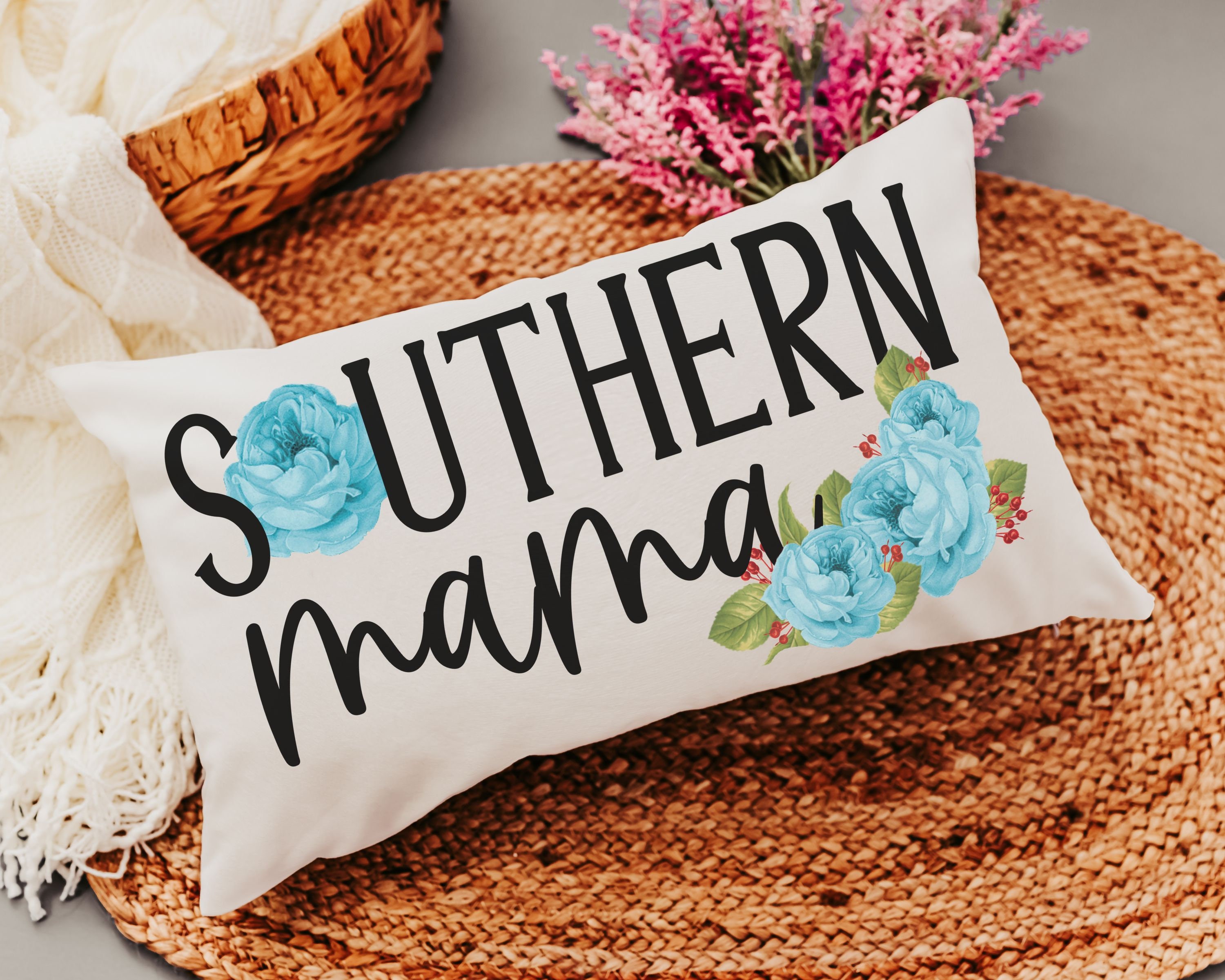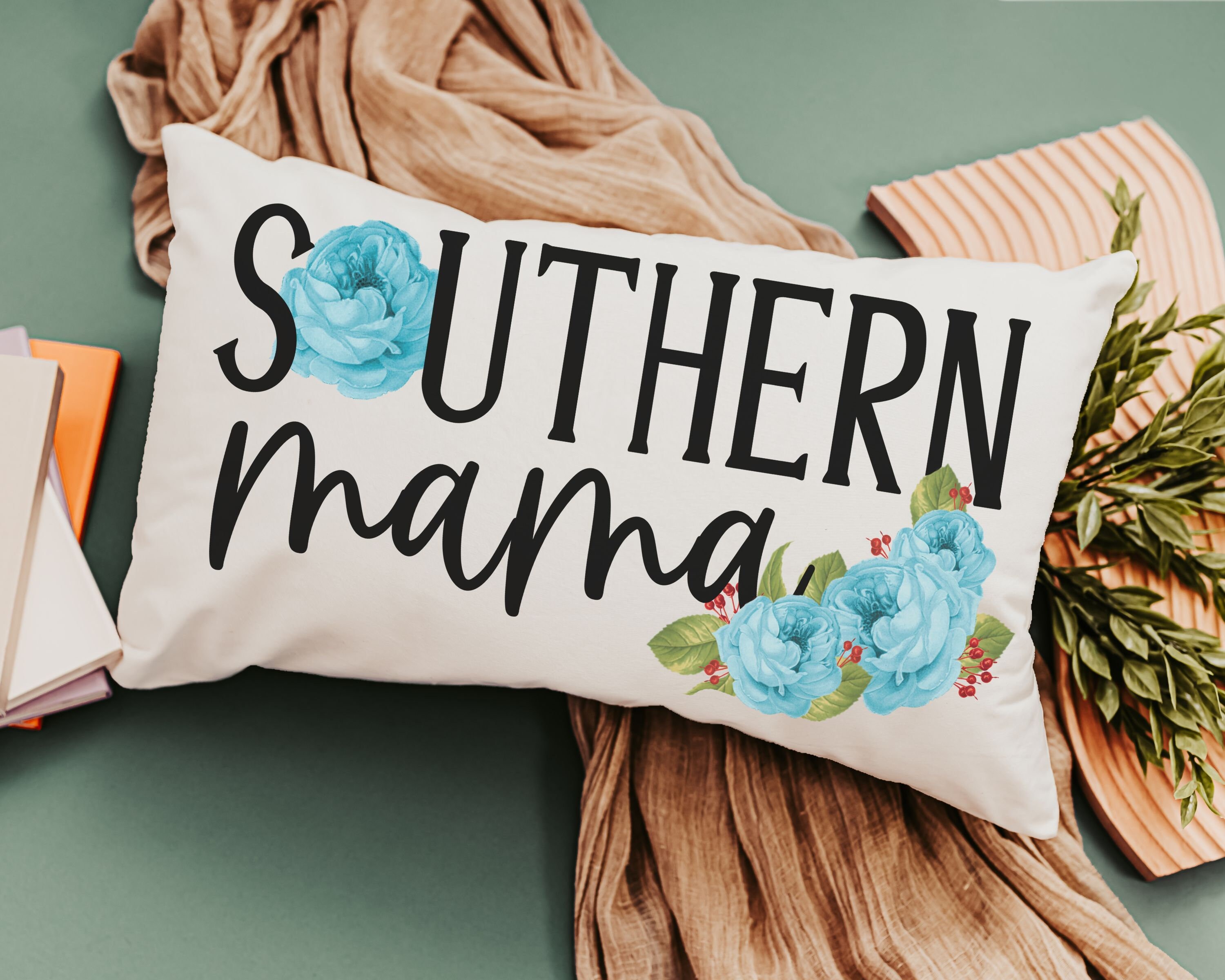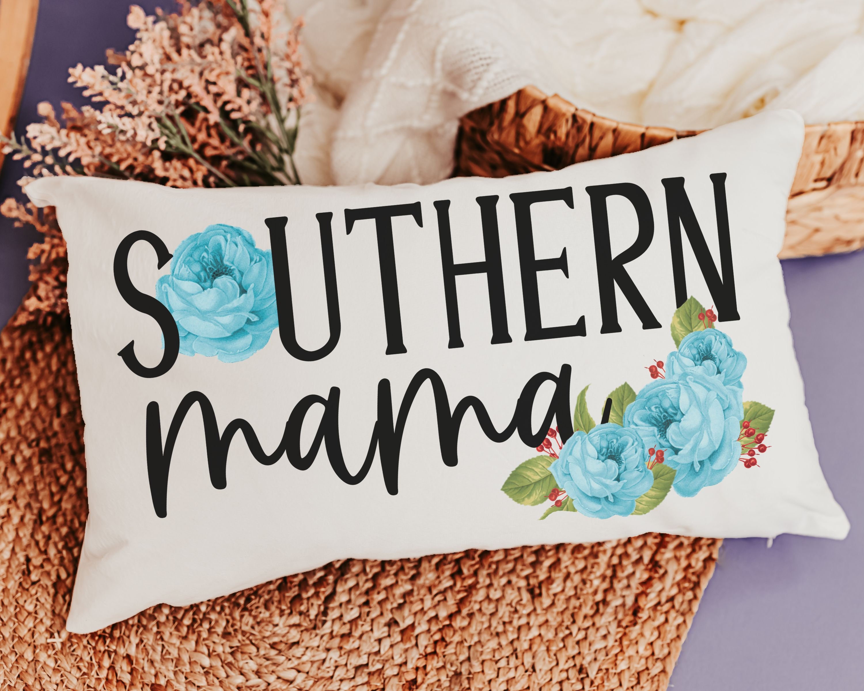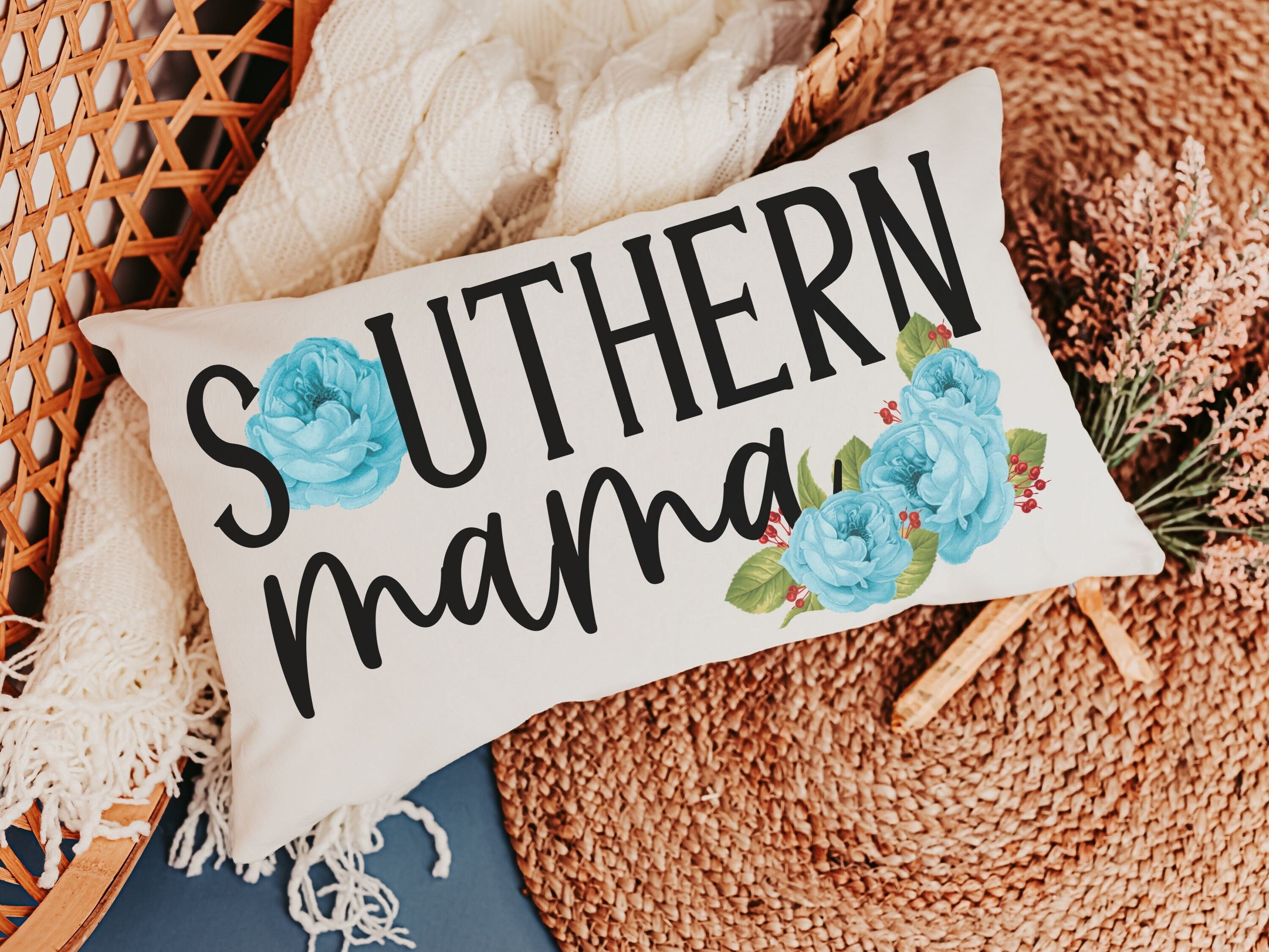 Celebrate any woman with our Southern Mama throw pillows, featuring a beautiful blue peonies design, perfect for the bed or as a an addition to a veranda Adirondack chair. This pillow is an ideal country mom gift. Perfect for adding style to any space, these pillows are among the best gifts for any mom who loves southern charm.