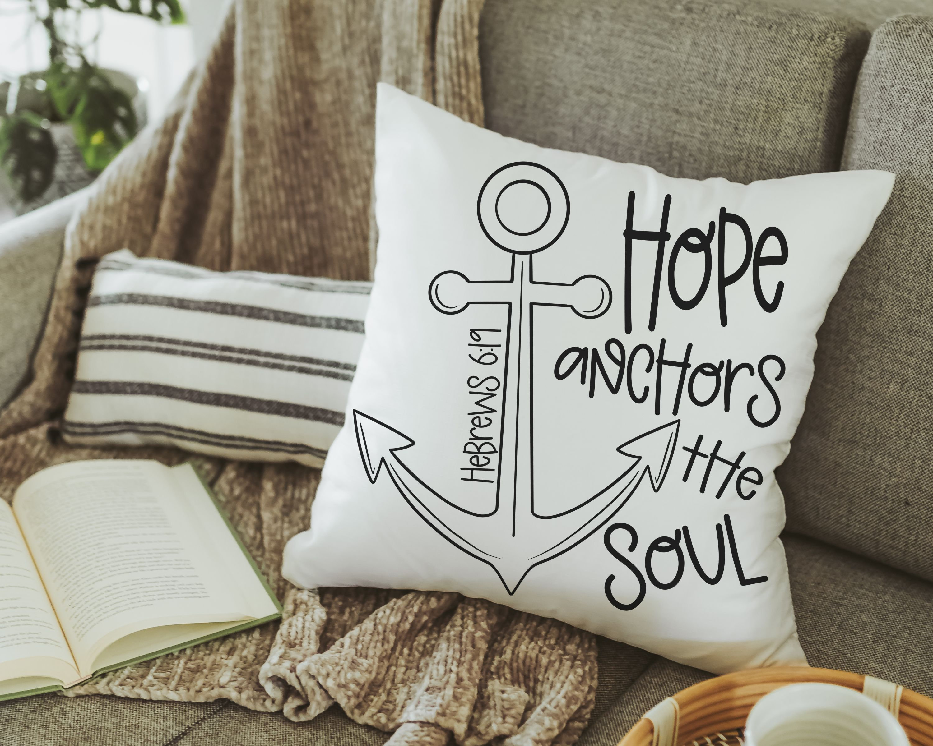 hope anchors the soul Bible verse throw pillows for bed, may the God of hope Romans 15 13 scripture pillow covers 18 x 18, his and hers gift