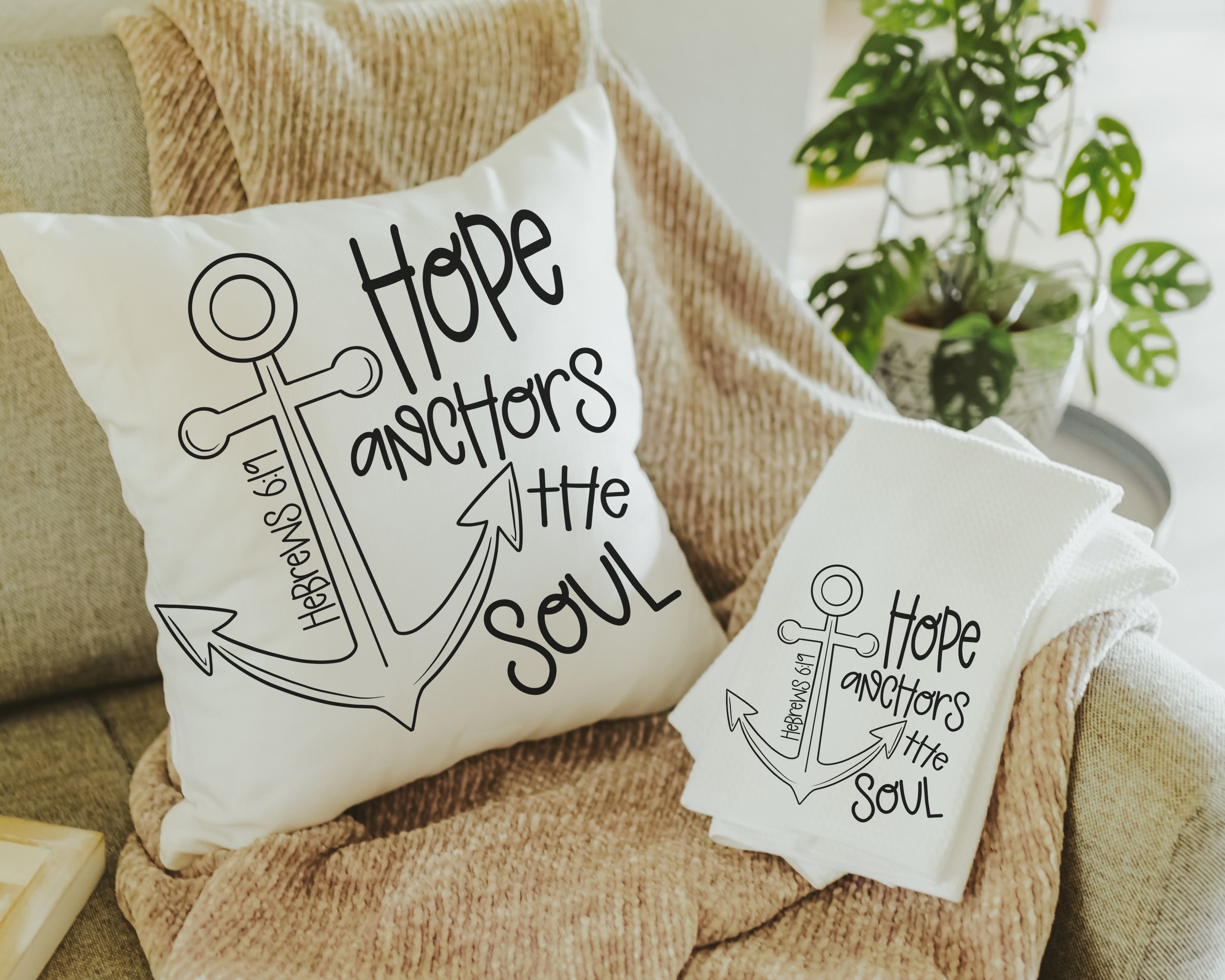 Anchor your home in faith and love with our 'Hope Anchors the Soul -Hebrews 6:19' and 'May the God of Hope - Romans 15:13' throw pillows. These beautifully designed throw pillows, blend inspirational Bible verses with cozy comfort, making them a wonderful gift. Ideal for Christian weddings, they serve as meaningful presents for the bride and groom, offering a daily reminder of hope and faith in their new life together. Whether given as wedding gifts to celebrate any special couple or a gift for yourself, these pillows are a wonderful choice.