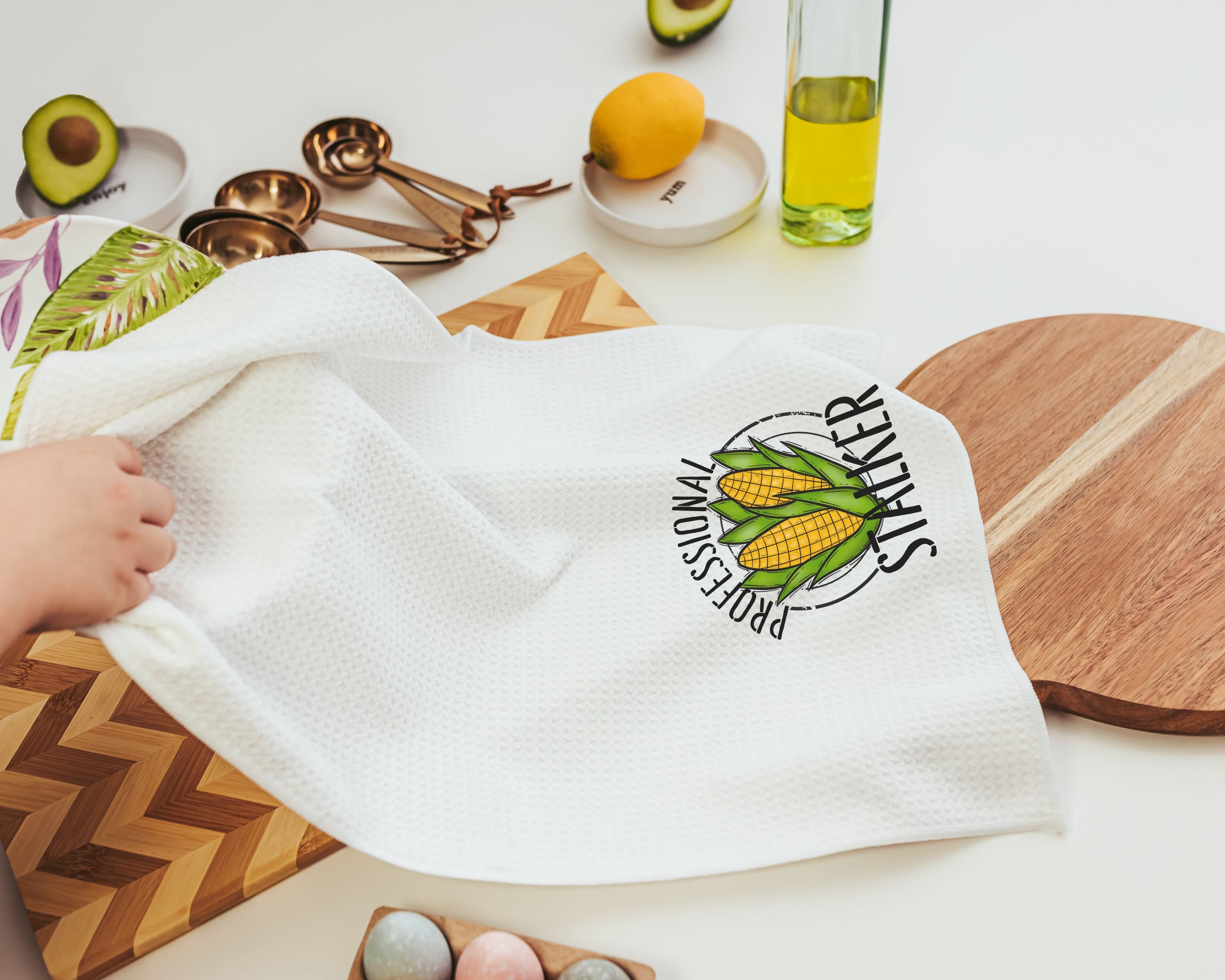 professional stalker funny kitchen towels for mom, corn festival farm kitchen decor, true crime documentary lover hand towels for bathroom