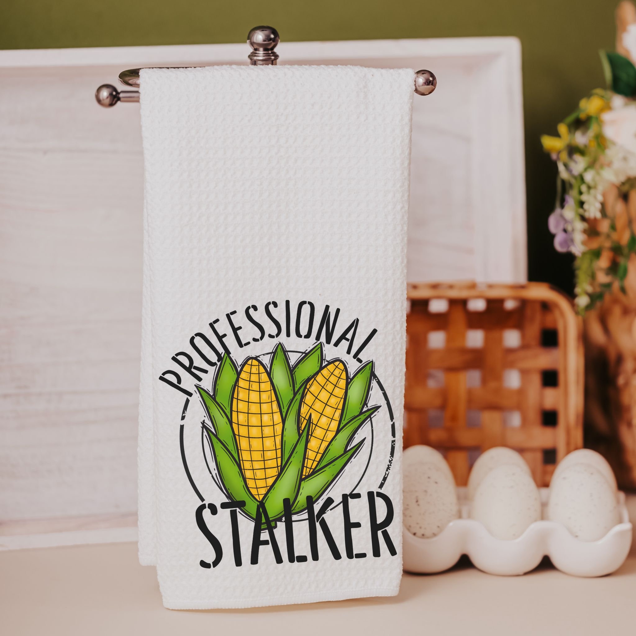 Celebrate a love for true crime and country life with our professional stalker funny kitchen towels. Perfect for anyone who can't get enough documentaries, these hand towels bring a playful touch to corn festivals and farm kitchen decor. Great for the bathroom or kitchen, and sure to get a laugh!