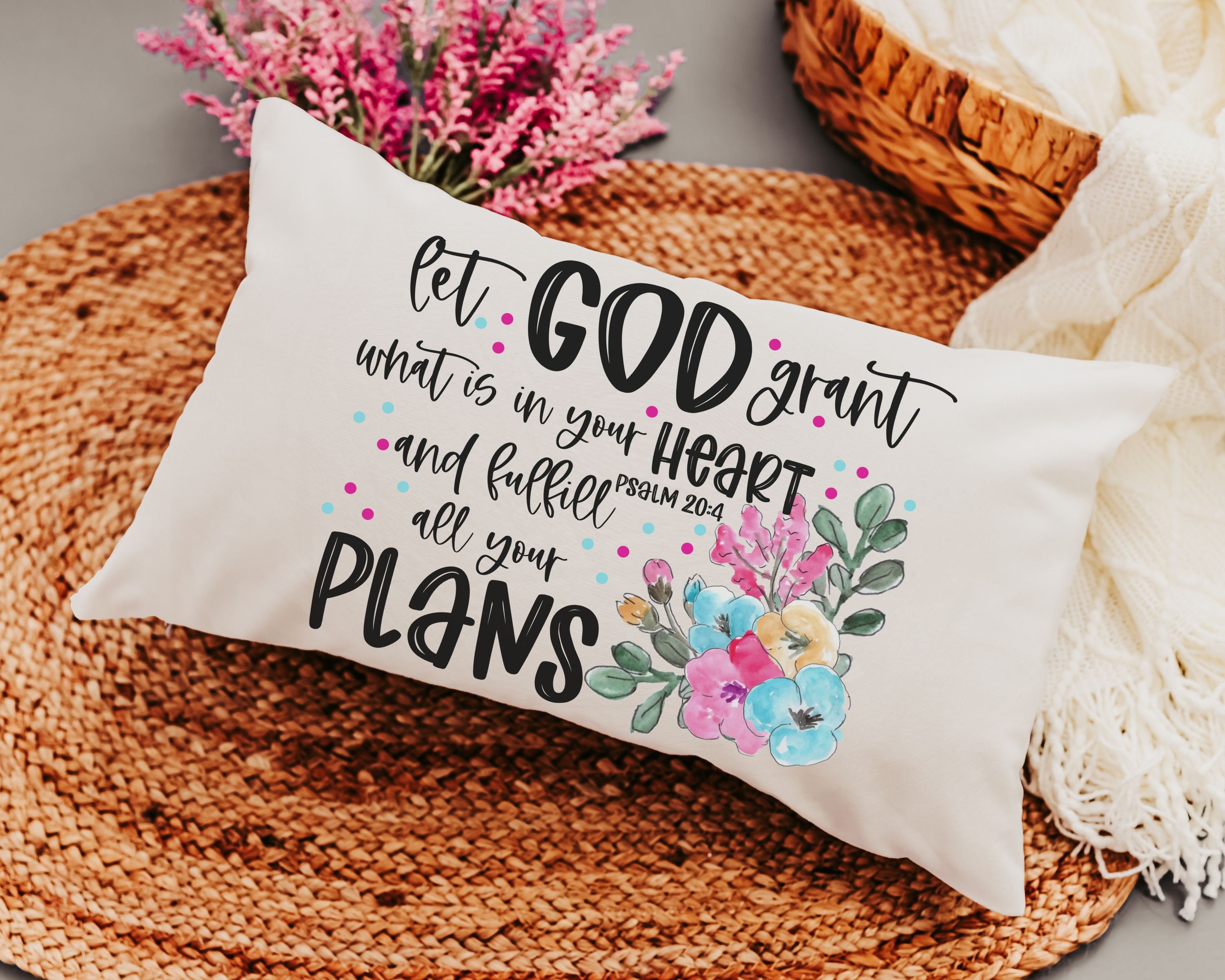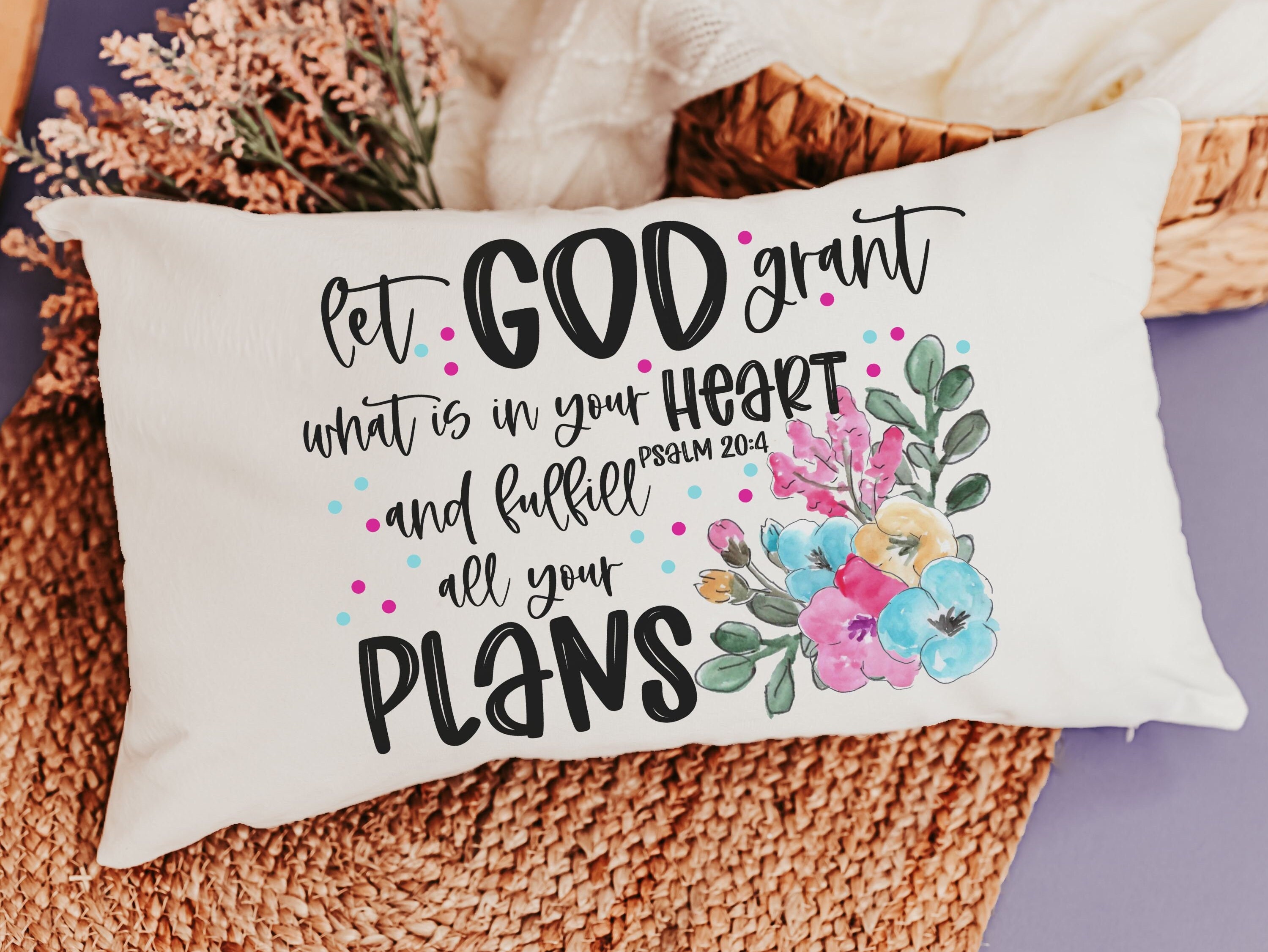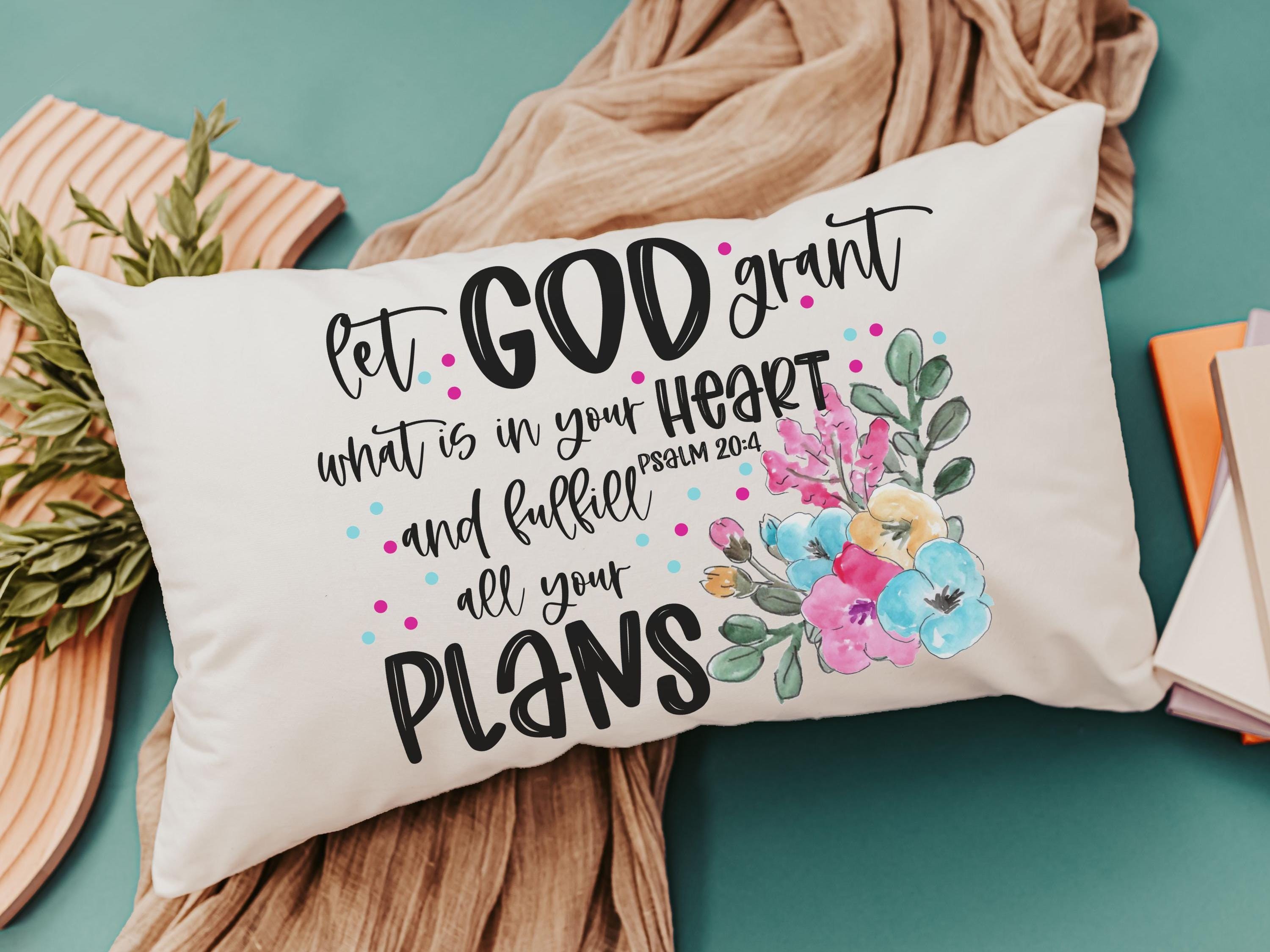 watercolor floral throw pillow for bed, Psalm 20 faith gifts for Mom, cute Christian encouragement gift for women, Bible verse lumbar pillow
