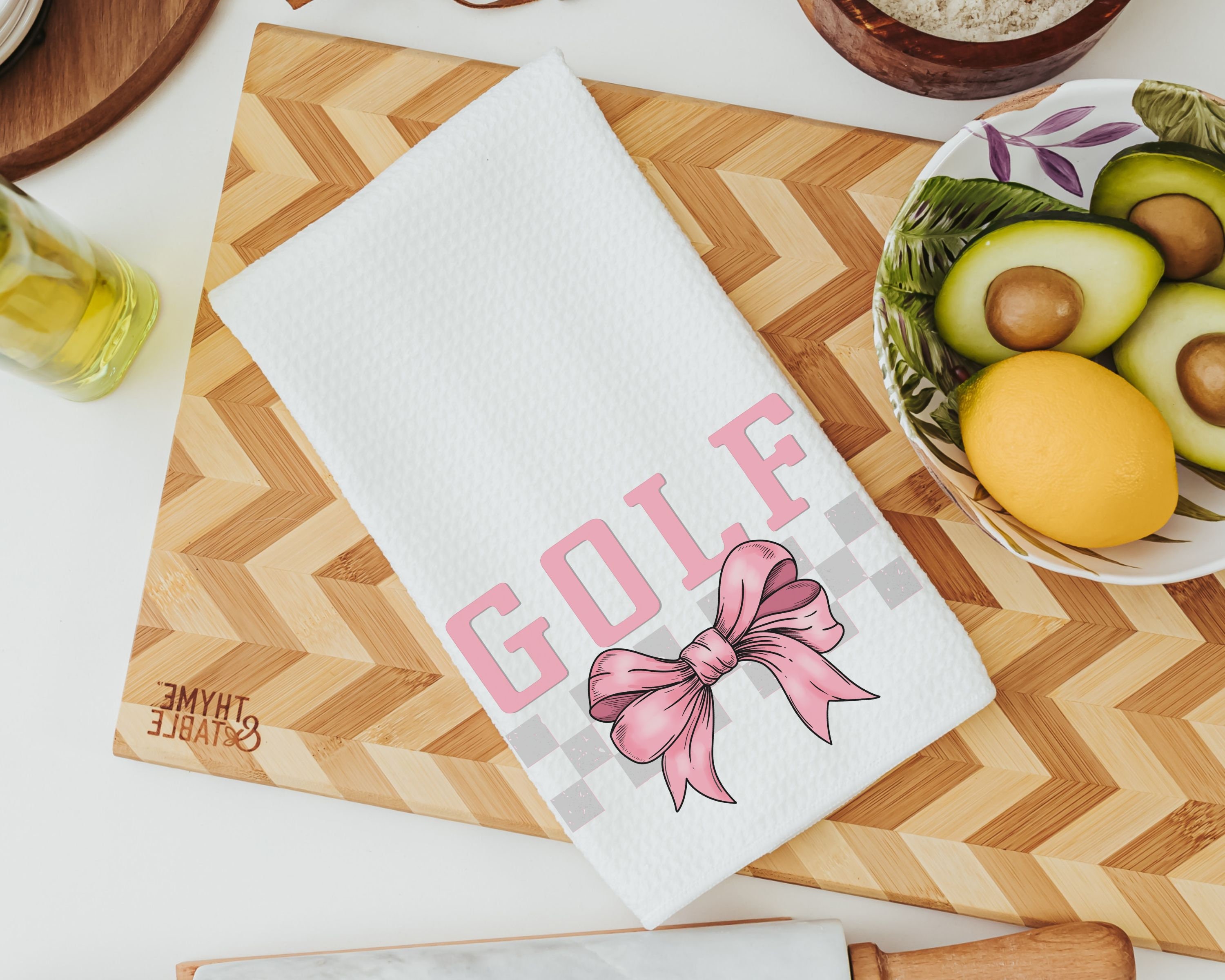 pink bow golf towels for women, golf mom era coquette hand towels for sports, lady golfer towel, golfing gifts for girls, cute golf gifts