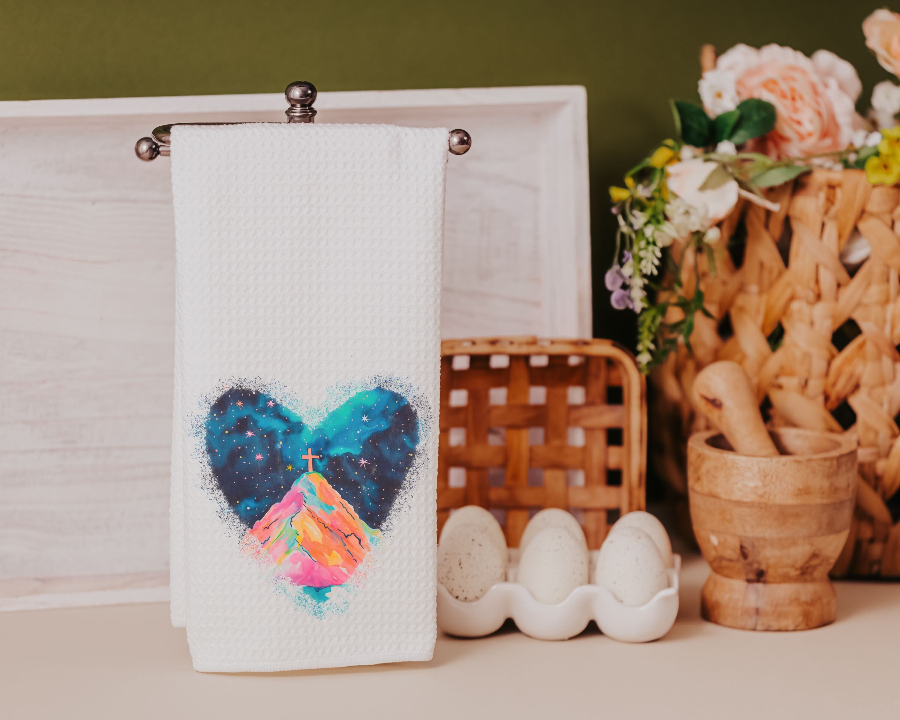watercolor cross Christian throw pillows for bed, cross on the hill Christian kitchen towels for gifts, faith decor, spiritual gifts for her