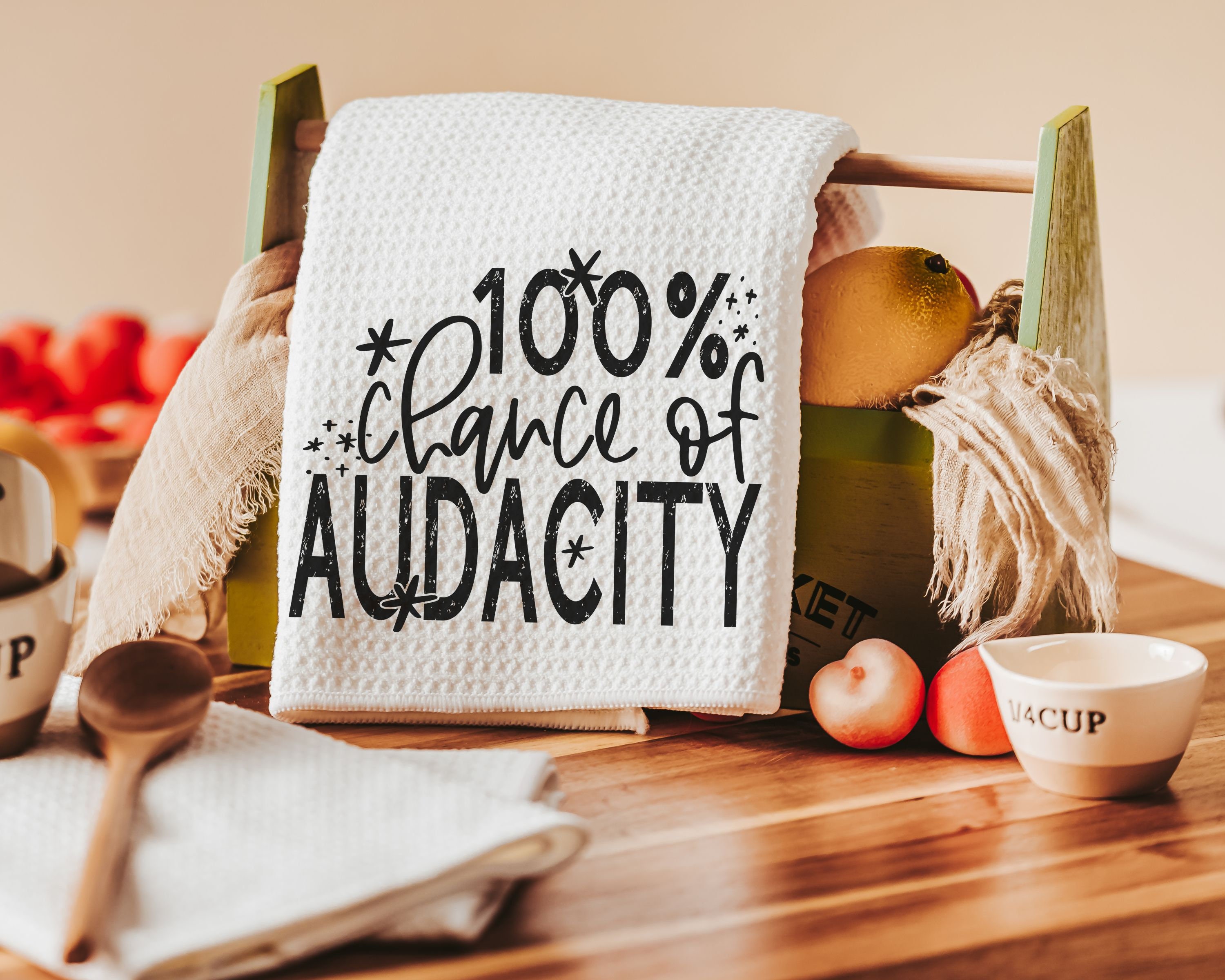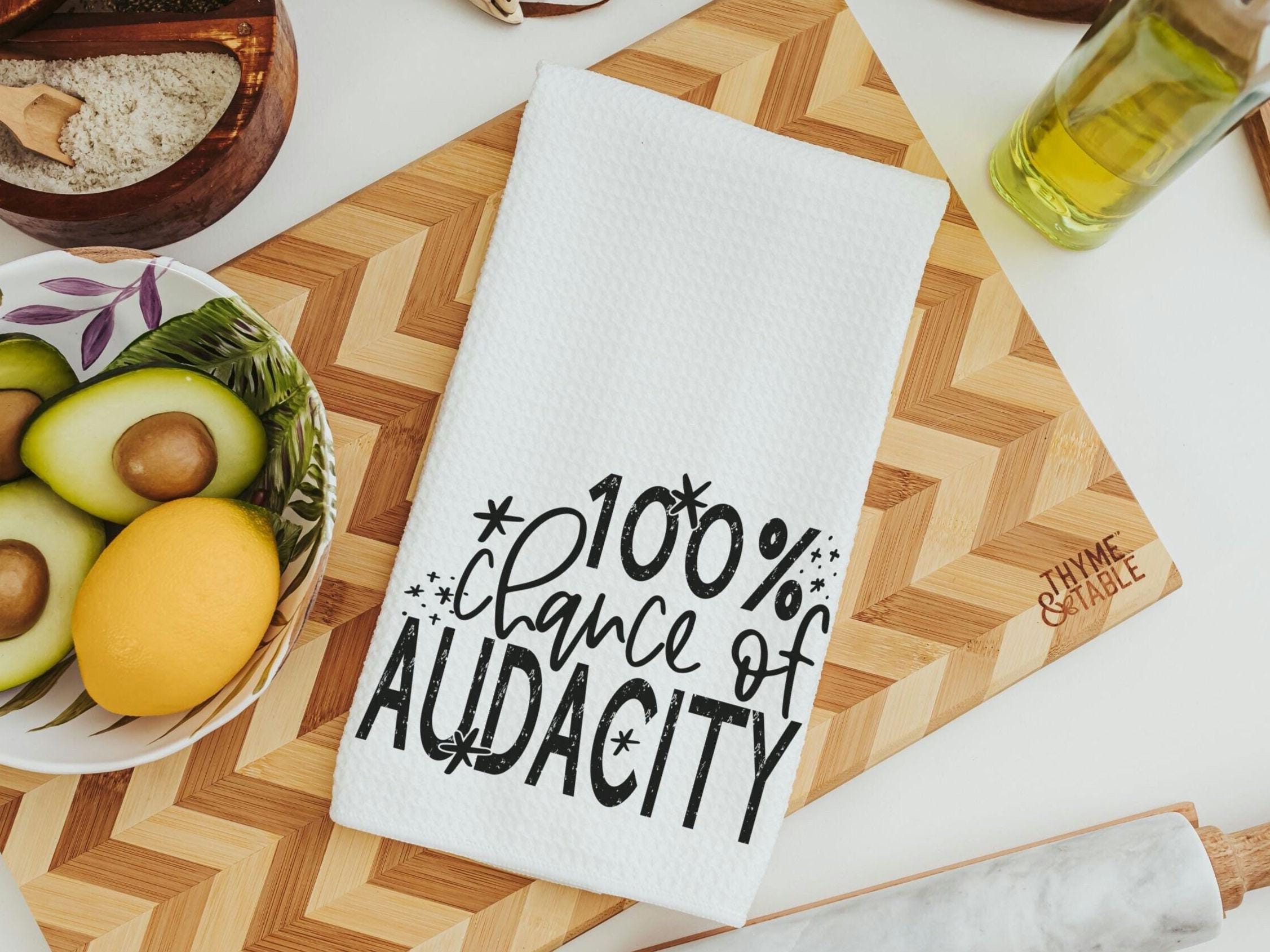 Bring a fun touch to your space with this “100% Chance of Audacity” funny towel. Perfect for women who love a bit of sass, this towel makes a great best friend birthday gift and adds personality to your kitchen, bathroom, or powder room. It's a sarcastic gift that’s both useful and entertaining.