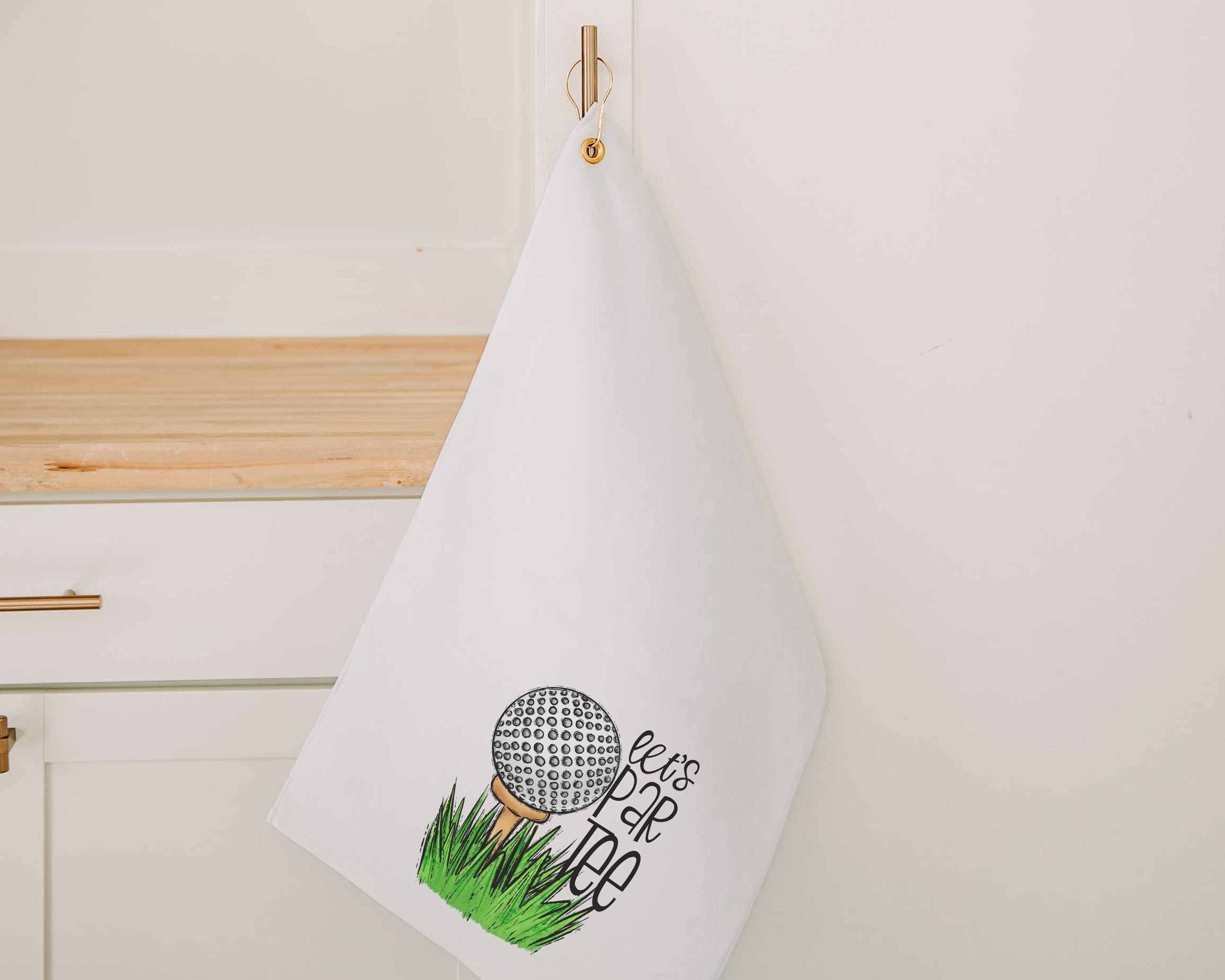 lets par tee funny golf towel with grommet, golf bag towel for women, golf gifts for her, lady golfer ball towel, golf birthday gifts for