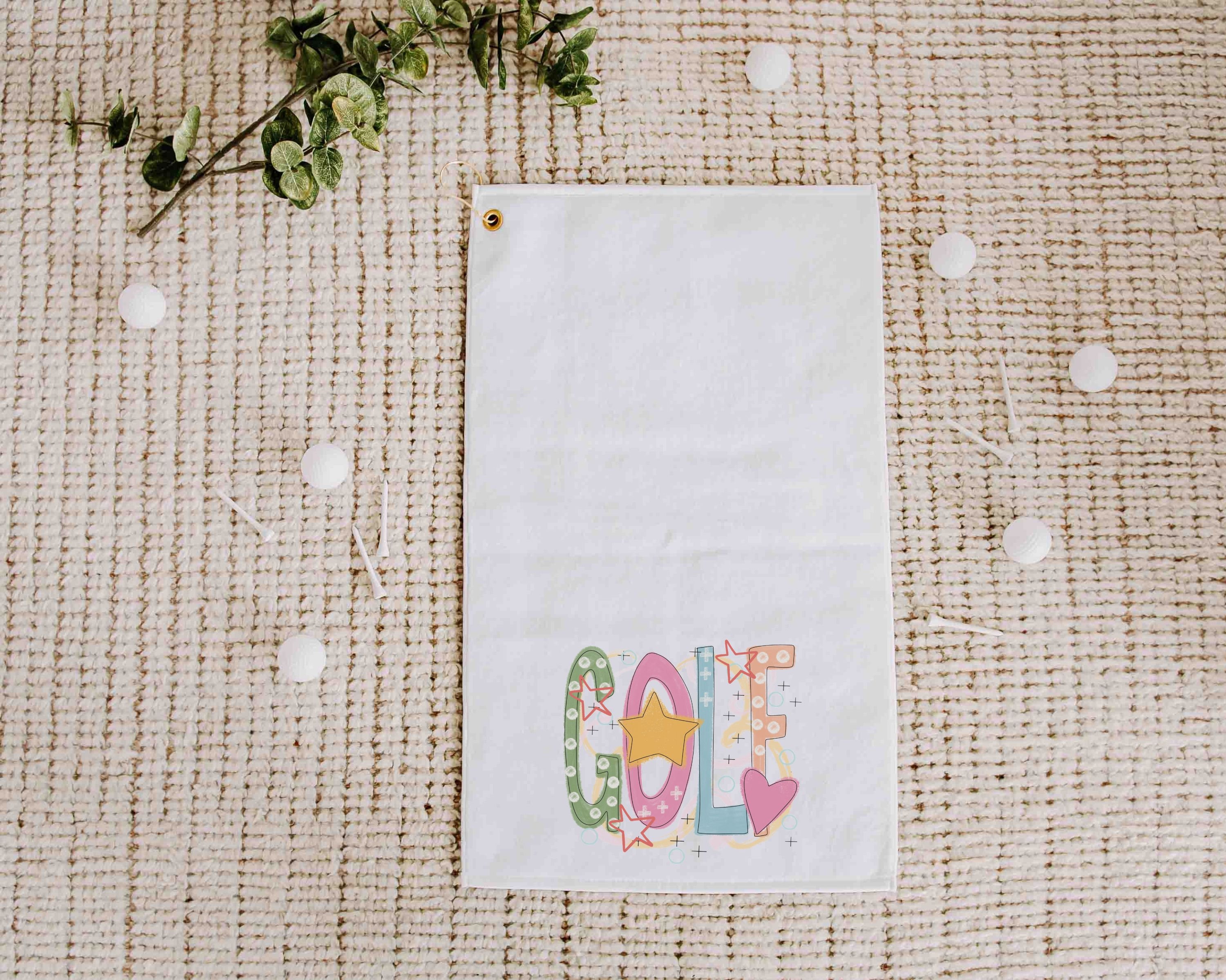 Our cute golf towel with a grommet is perfect for women who love to golf. This golf bag towel makes an excellent gift, whether as a ball towel or a practical addition to her golfing accessories. Each towel measures 16" x 25" and features a gold grommet and hook for easy attachment. The front is made of soft microfiber velour, while the back side has a rough finish for scrubbing and cleaning. Machine washable for convenience, this golfer towel is an ideal gift for lady golfers and moms who enjoy the sport. Perfect for golfing gifts, it adds a touch of style and functionality to any golf bag.