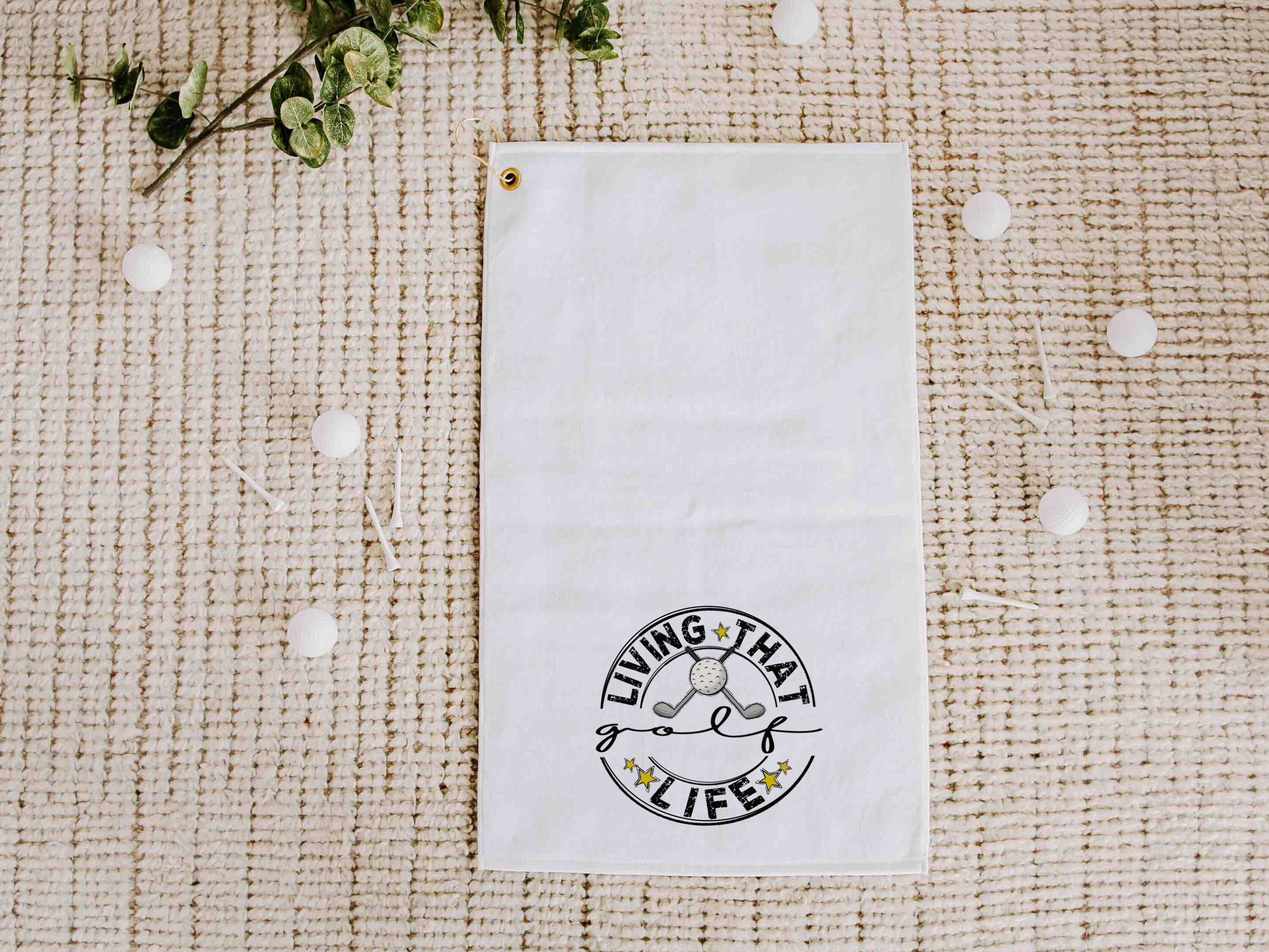 Make every swing count with our Living That Golf Life towels, perfect for the golfer in your life. Whether it’s for Father’s Day, a funny gift for your stepdad, or an anniversary surprise, these towels are both practical and fun. Each 16" x 25" towel includes a grommet and hook for easy bag attachment, with a microfiber velour front and a scrub-friendly back for quick cleaning. Durable, machine washable, and ideal for golf bag accessories, they’re a great gift for dads, boyfriends, or any golfer with a sense of humor.