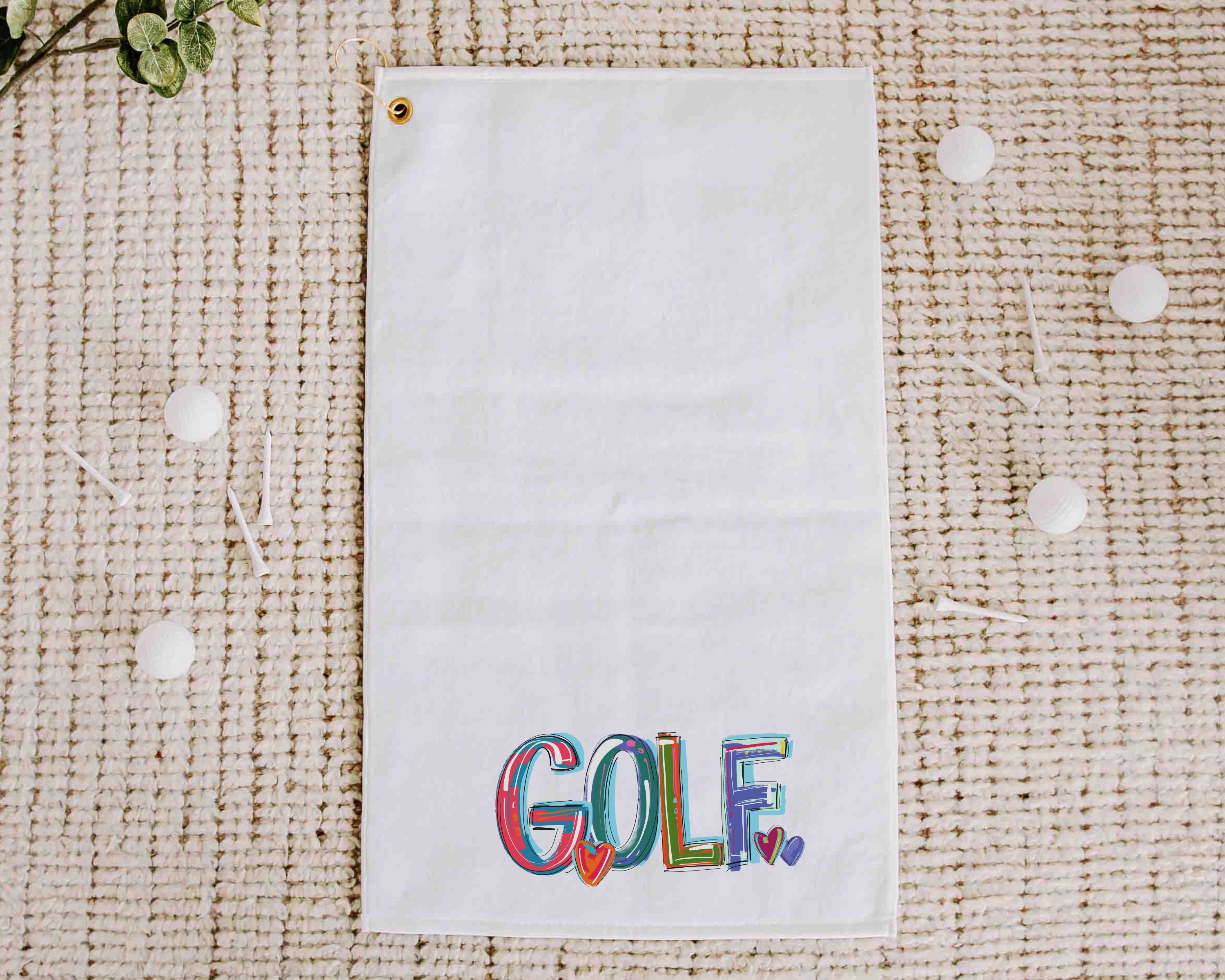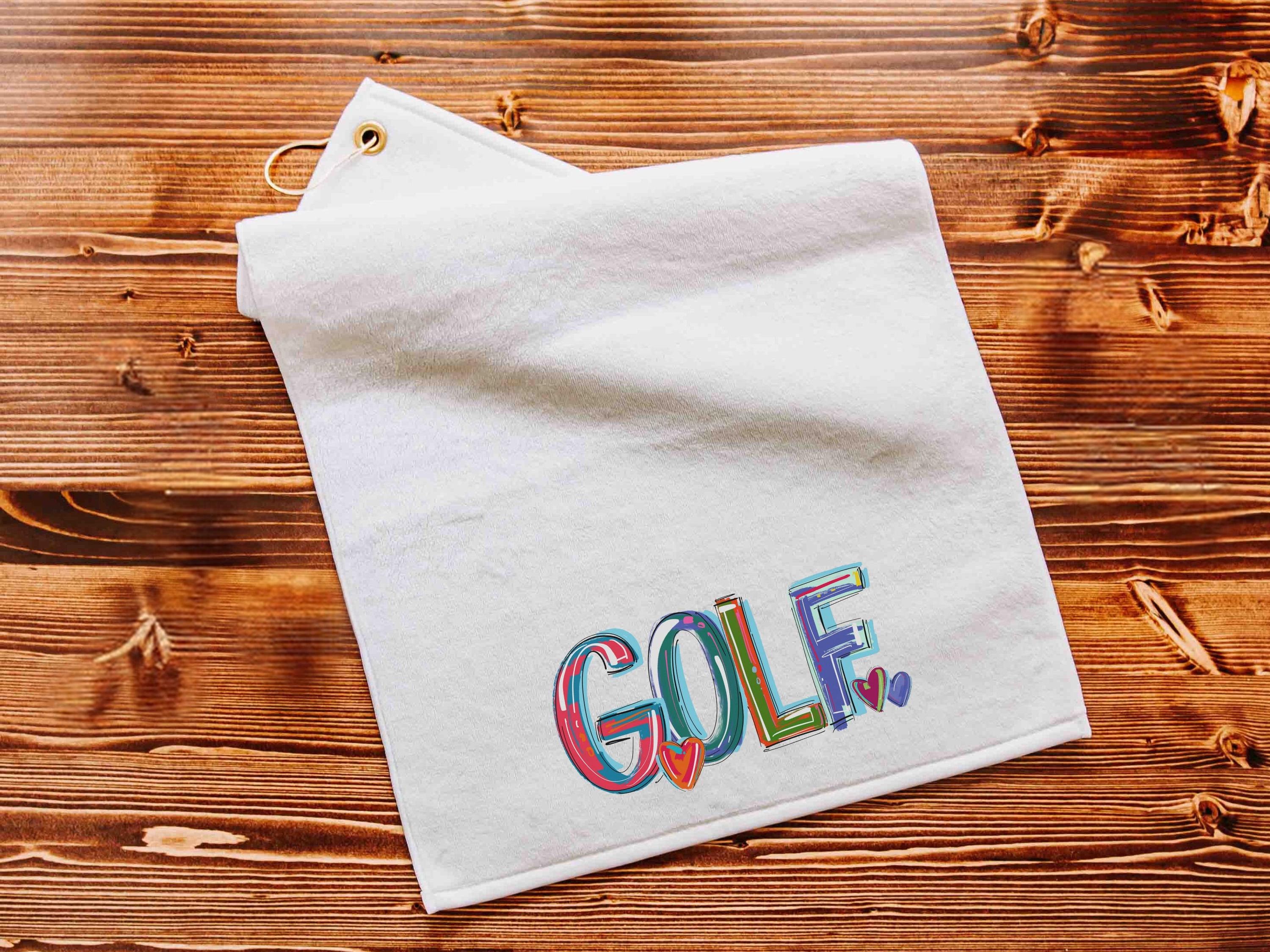 Brighten up her golf bag with this Girly Golf Towel with a Grommet featuring a cheery "golf" word in colorful colors. Perfect as a lady golf gift or golf accessory, this towel makes an ideal golfer gift. Made with a microfiber velour front and a textured back for easy scrubbing, it’s both practical and stylish. Measures 16" x 25", includes a gold grommet and hook, and is machine washable—a fun and functional addition to any golfer's bag!