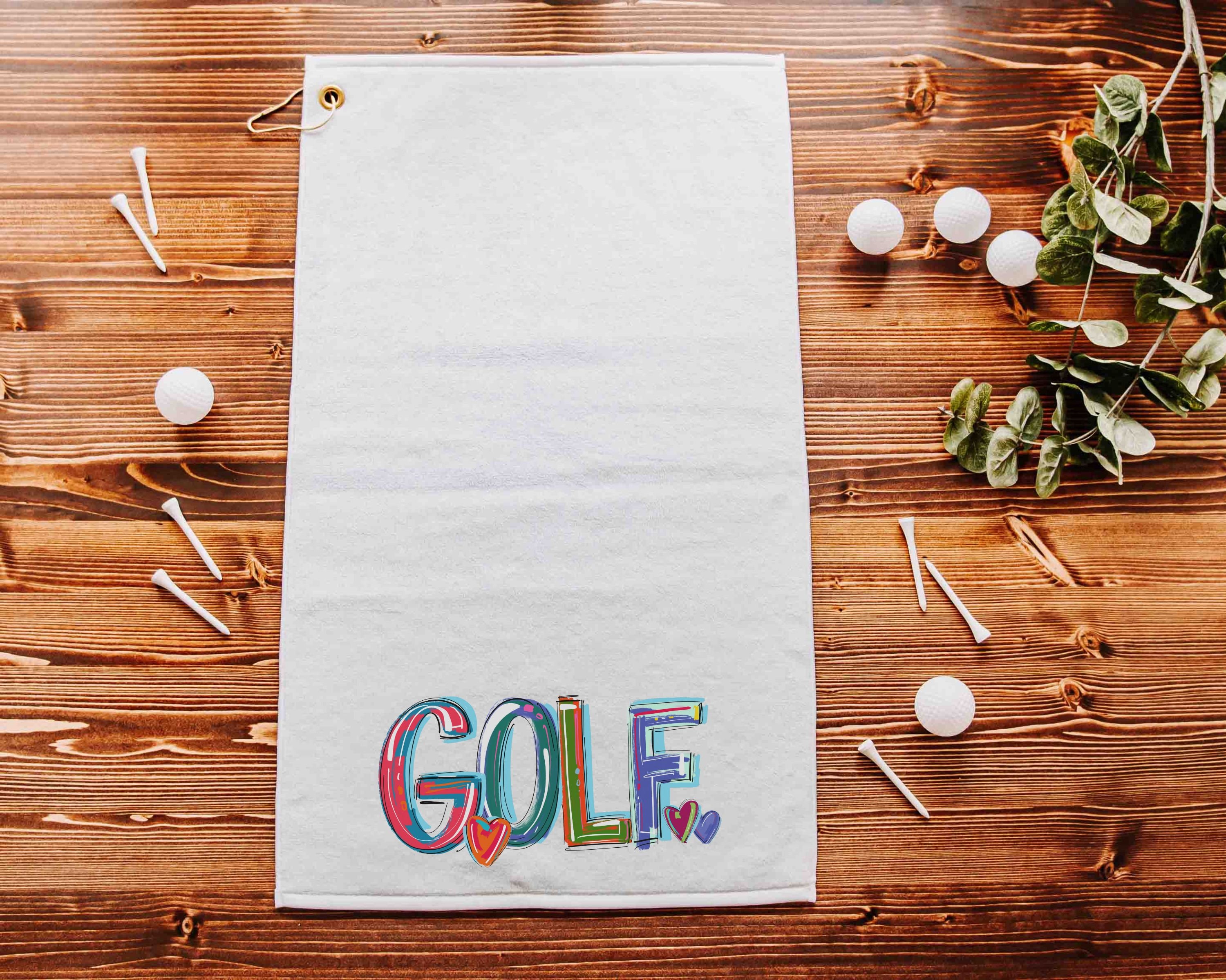 girly golf towel with grommet, colorful golf ball towel, cheery words cute golf bag accessories, lady golf gifts for her, golfer gifts for