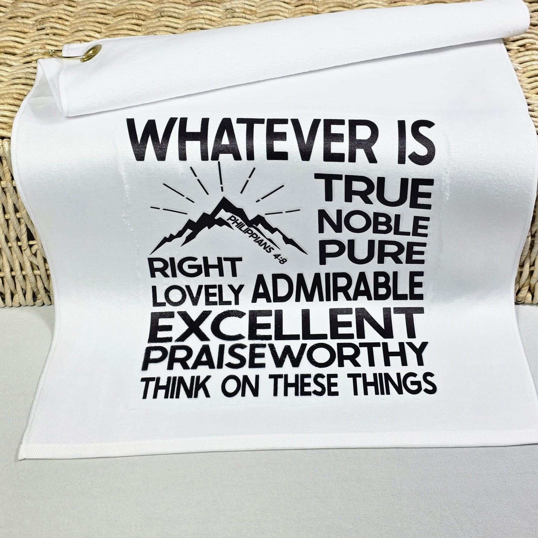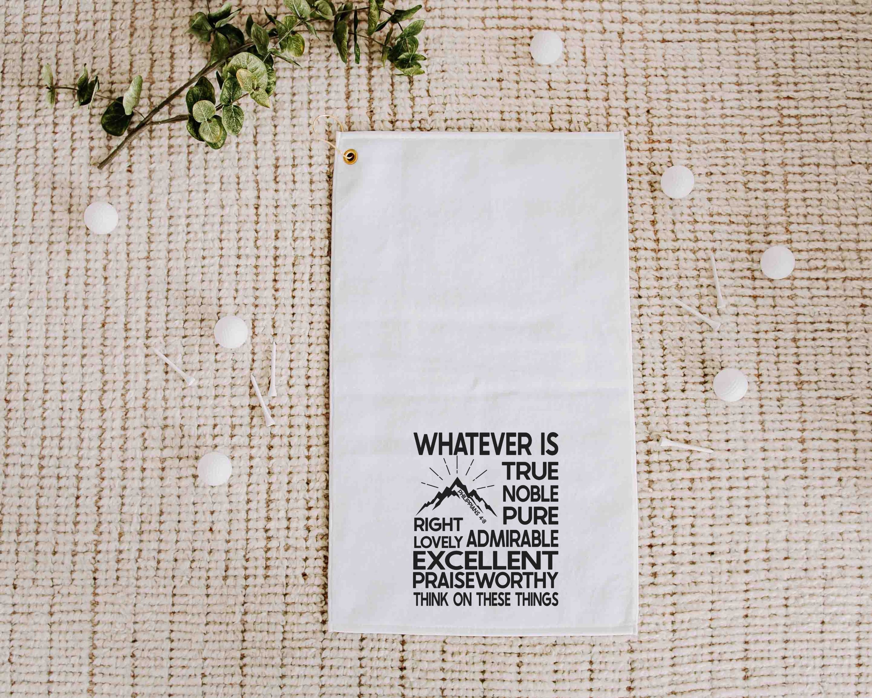 Christian golf towel for golf bags, whatever is true scripture gifts for men, Philippians 4:8 Bible verse golf gifts for son in law, ball