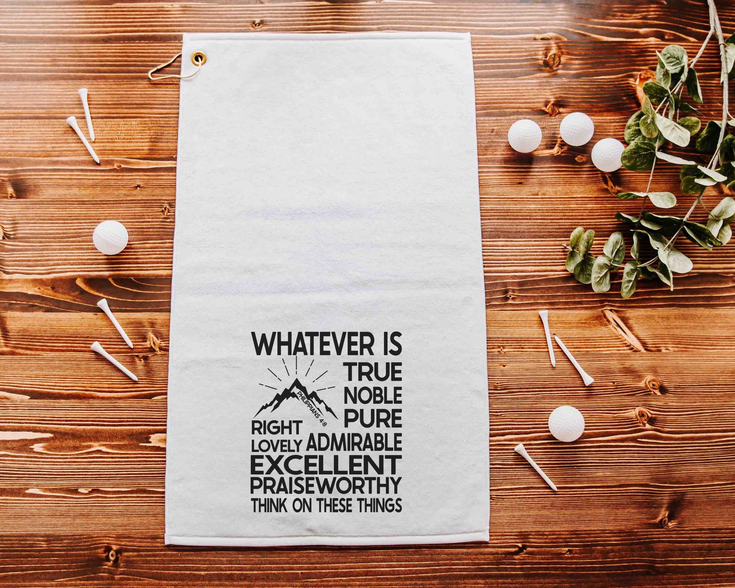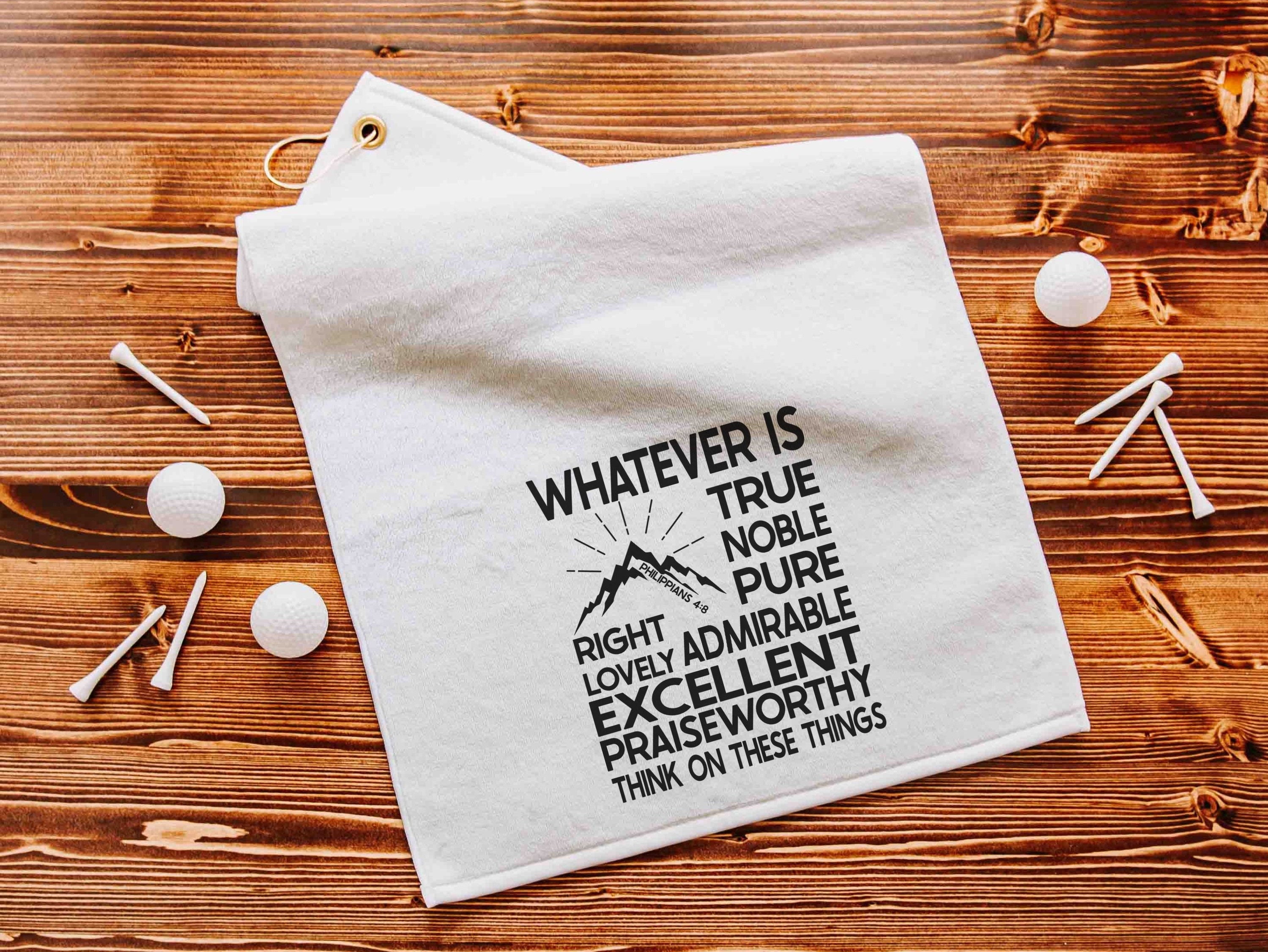 The Whatever is True Philippians 4:8 design makes this Christian golf towel a meaningful accessory for golf bags. A unique ball towel and scripture gift for men, it’s a great choice for golf gifts for a son-in-law, Christmas stocking stuffers, or everyday encouragement on the course.