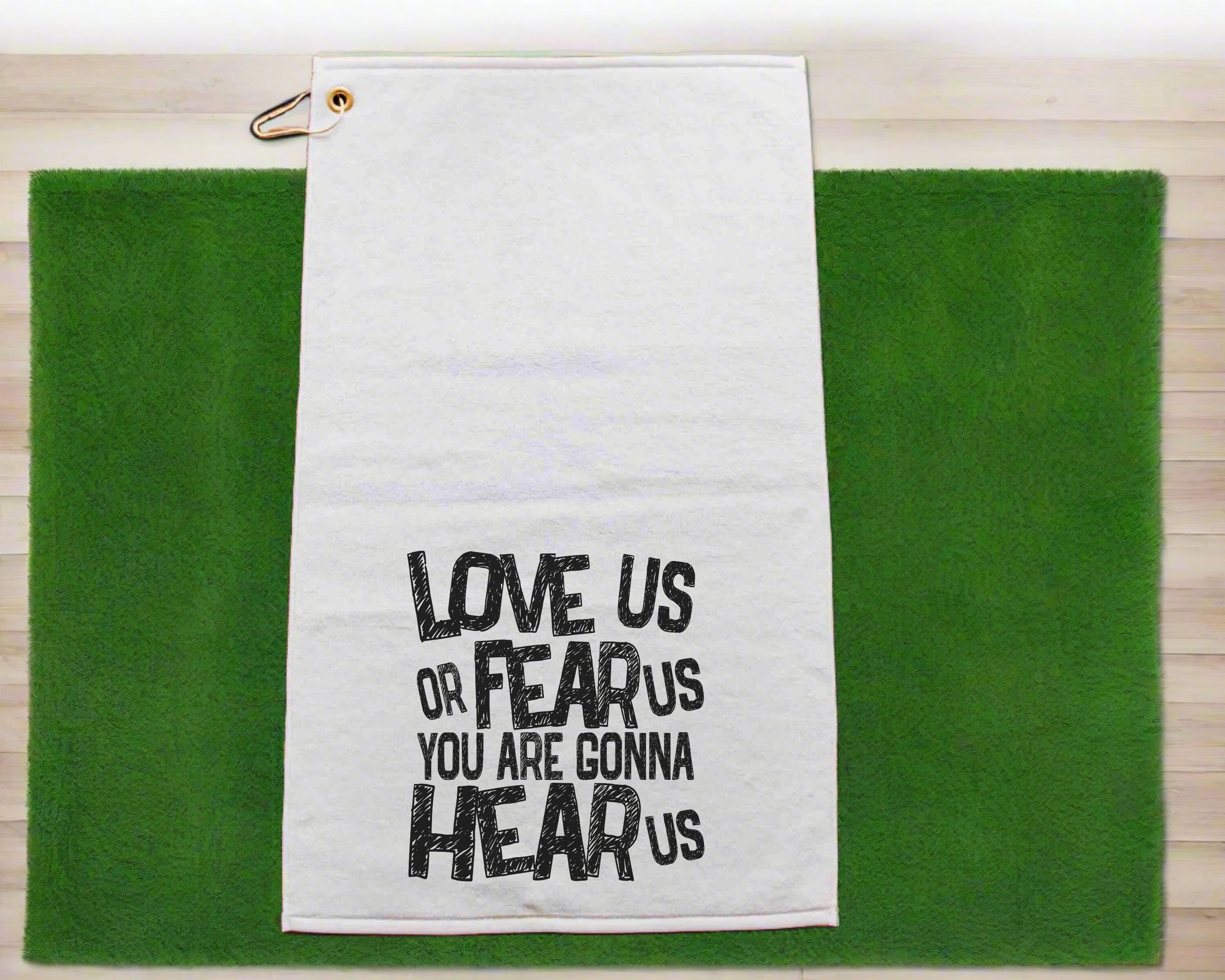 love us or fear us rally towel baseball mom gifts, game day football dad gift, sports duffle bag accessories, golf towel with grommet, coach