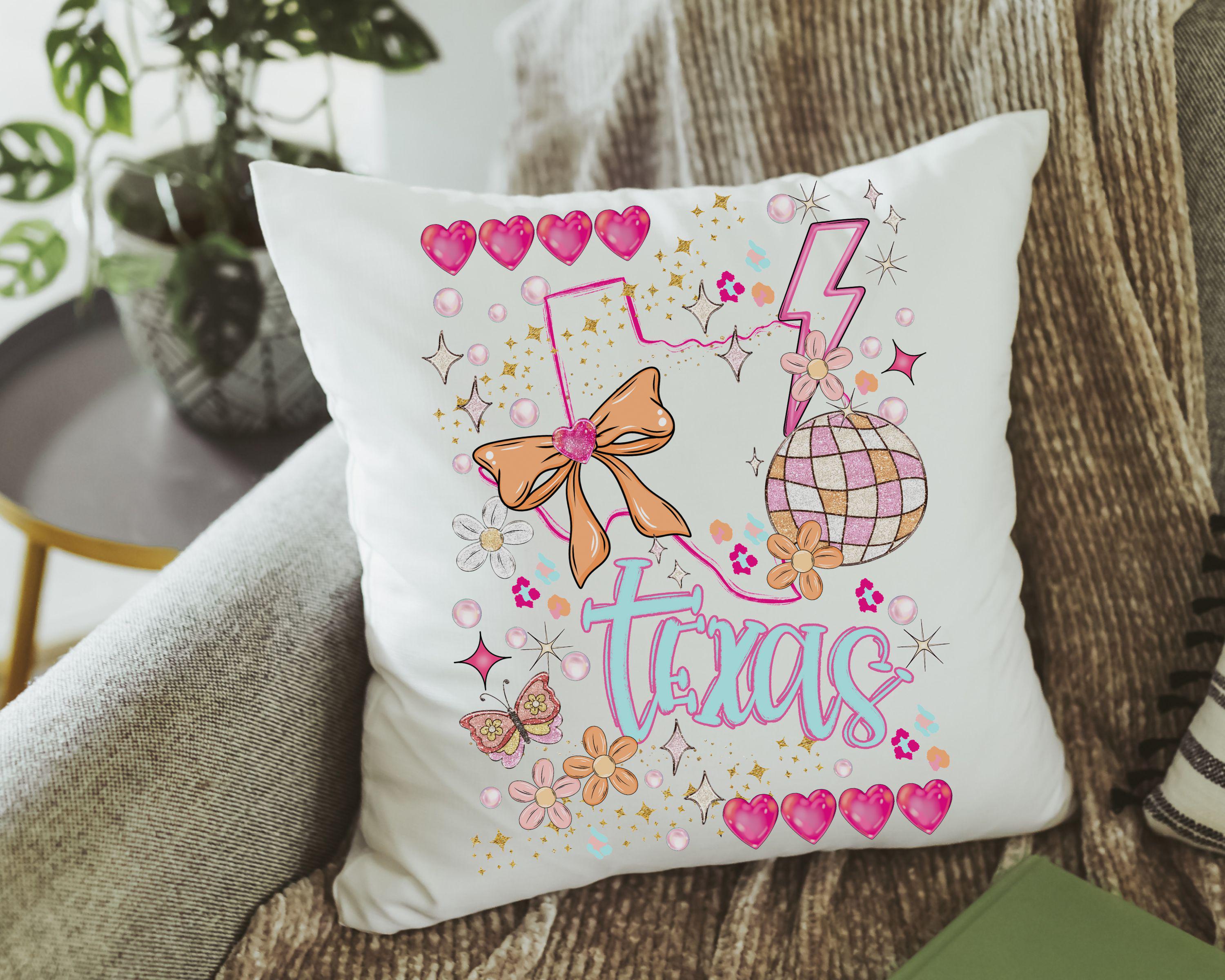 Add a personal touch to any room with our custom state throw pillow for the bed. Perfect as Indiana gifts, this pink preppy pillow is ideal for teens and coquette room decor. It's a wonderful college dorm gift for girls, adding a stylish and personal flair to their space. Celebrate state pride with this charming decor piece. Purchase the pillow cover, pillow with insert, towel, or as a pillow and towel set for a complete look.