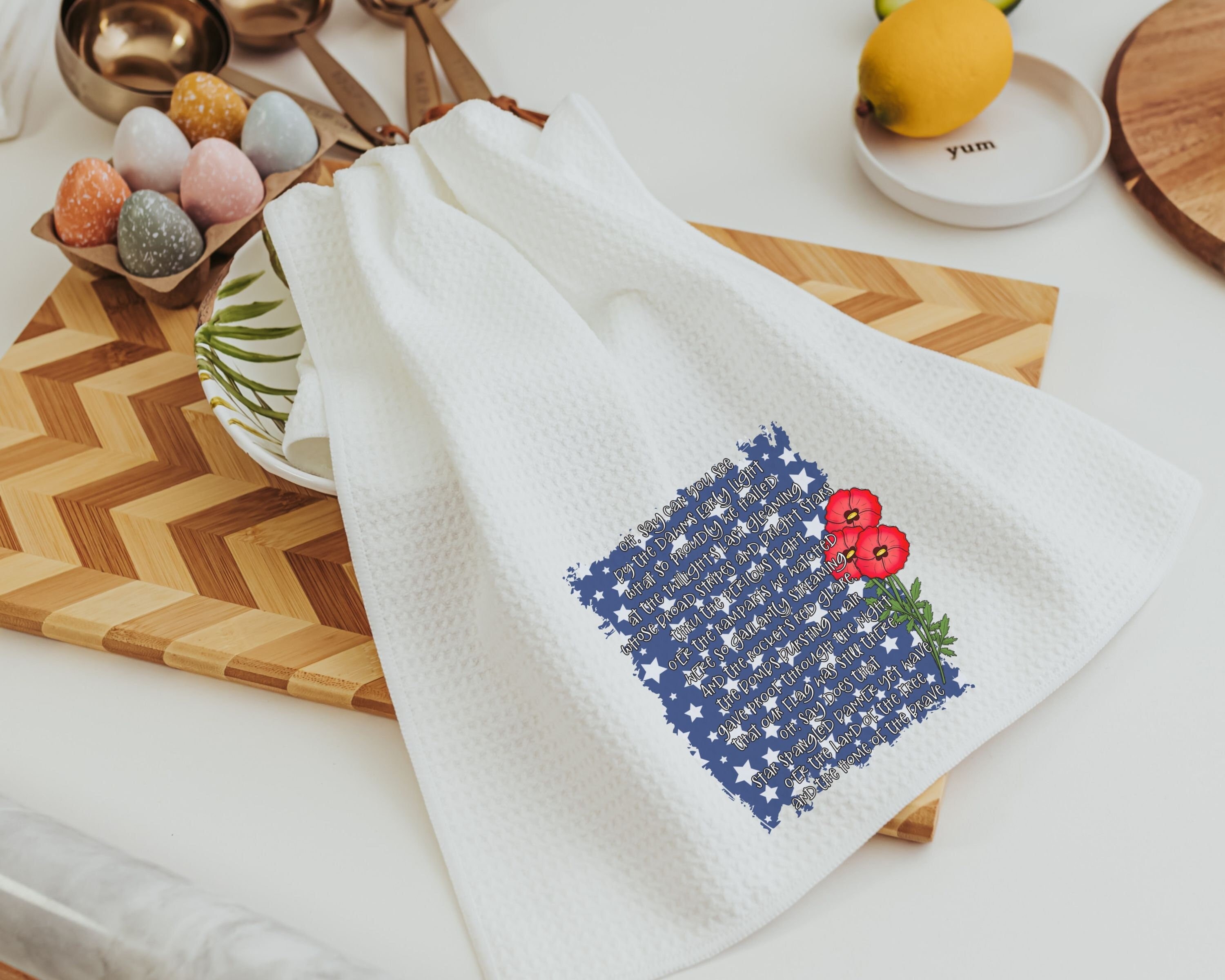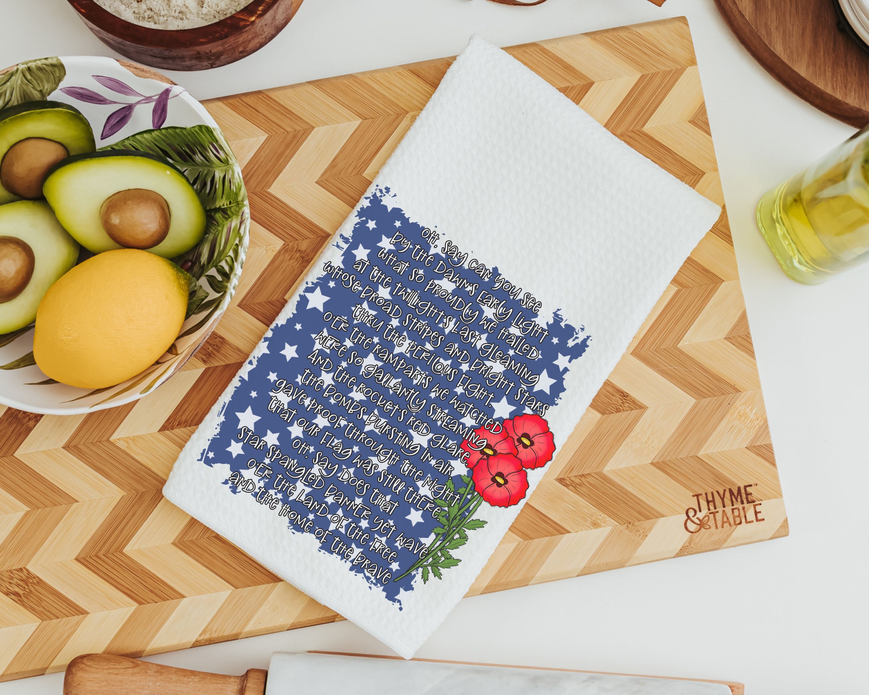 The Star-Spangled Banner meets blooming beauty in this red poppy patriotic kitchen towel—perfect for adding an Americana touch to your summer kitchen. It's a beautiful 4th of July accent or thoughtful gift for the women who love a pop of floral with their red, white, and blue.