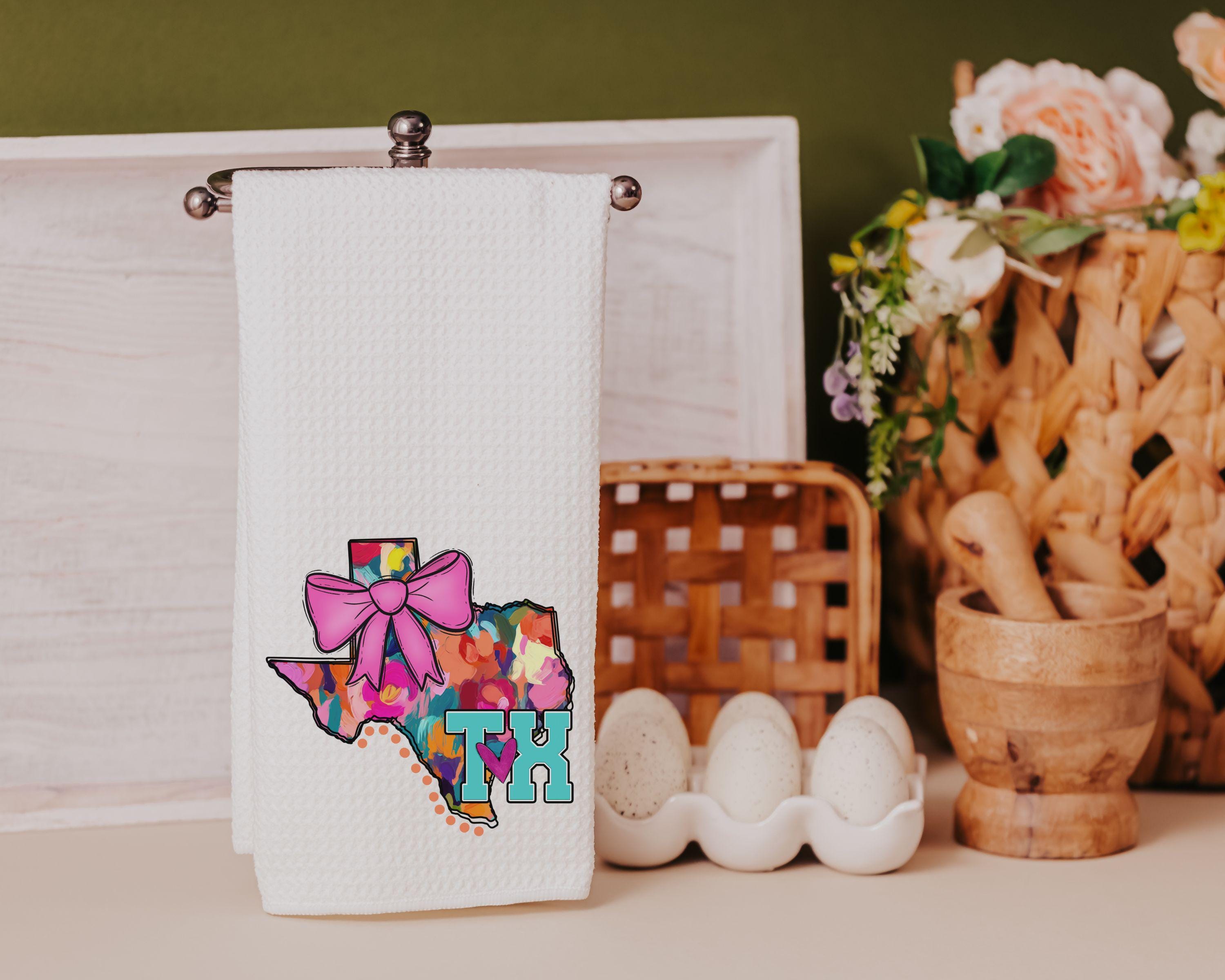 Add Southern charm to your space with our Watercolor Texas Throw Pillow and matching Coquette Kitchen Towel Set. Featuring a watercolor Texas design and a pink bow accent, this set is perfect for gifting or decorating. Ideal for a college care package or as a stylish Texas-themed gift, each item can be purchased separately or as a set.