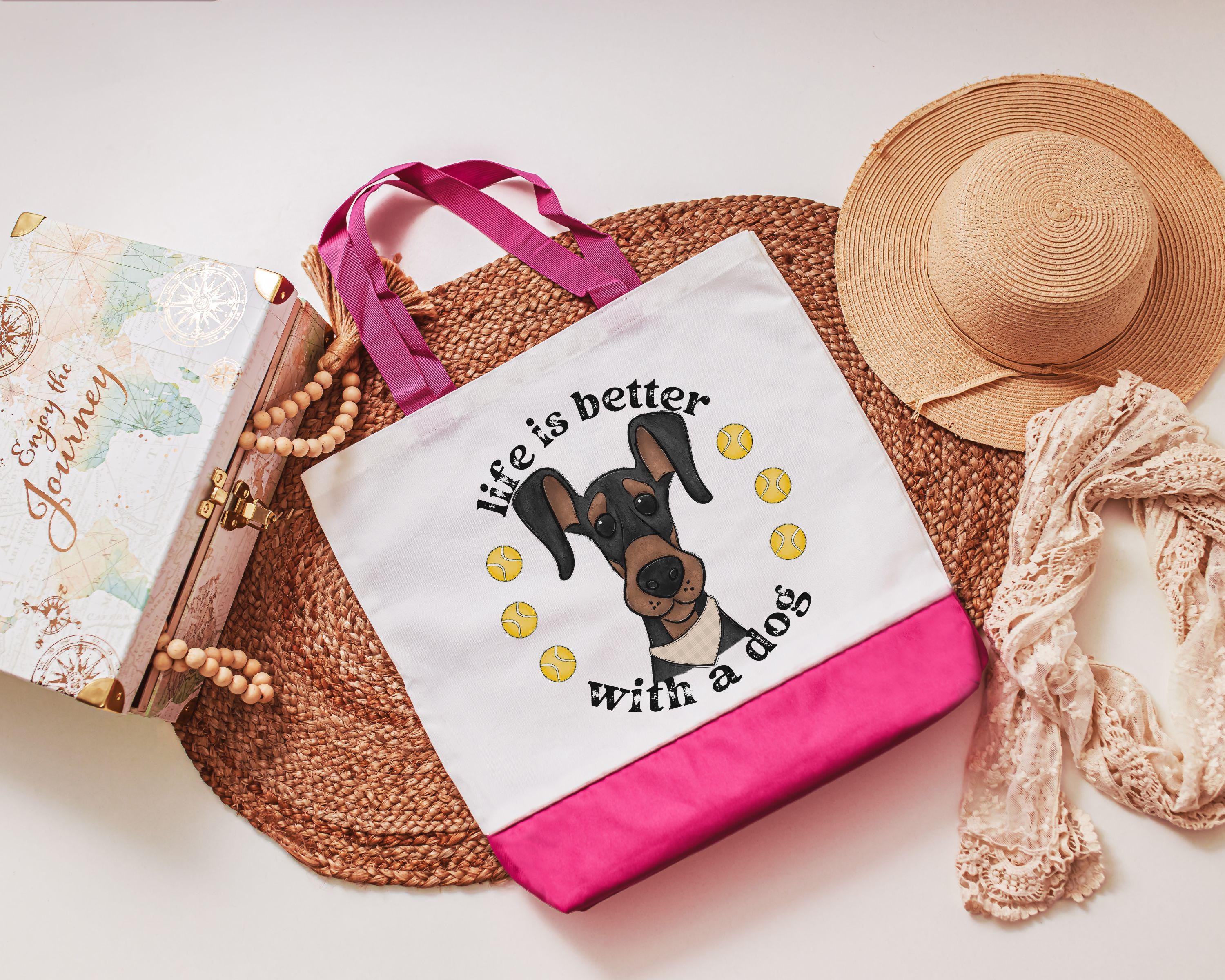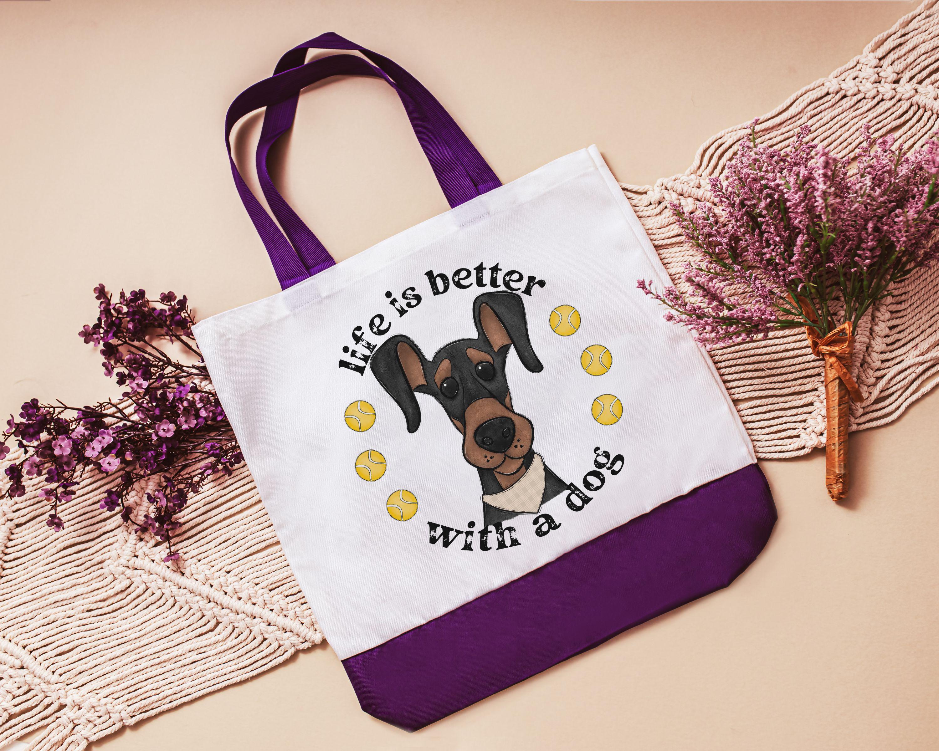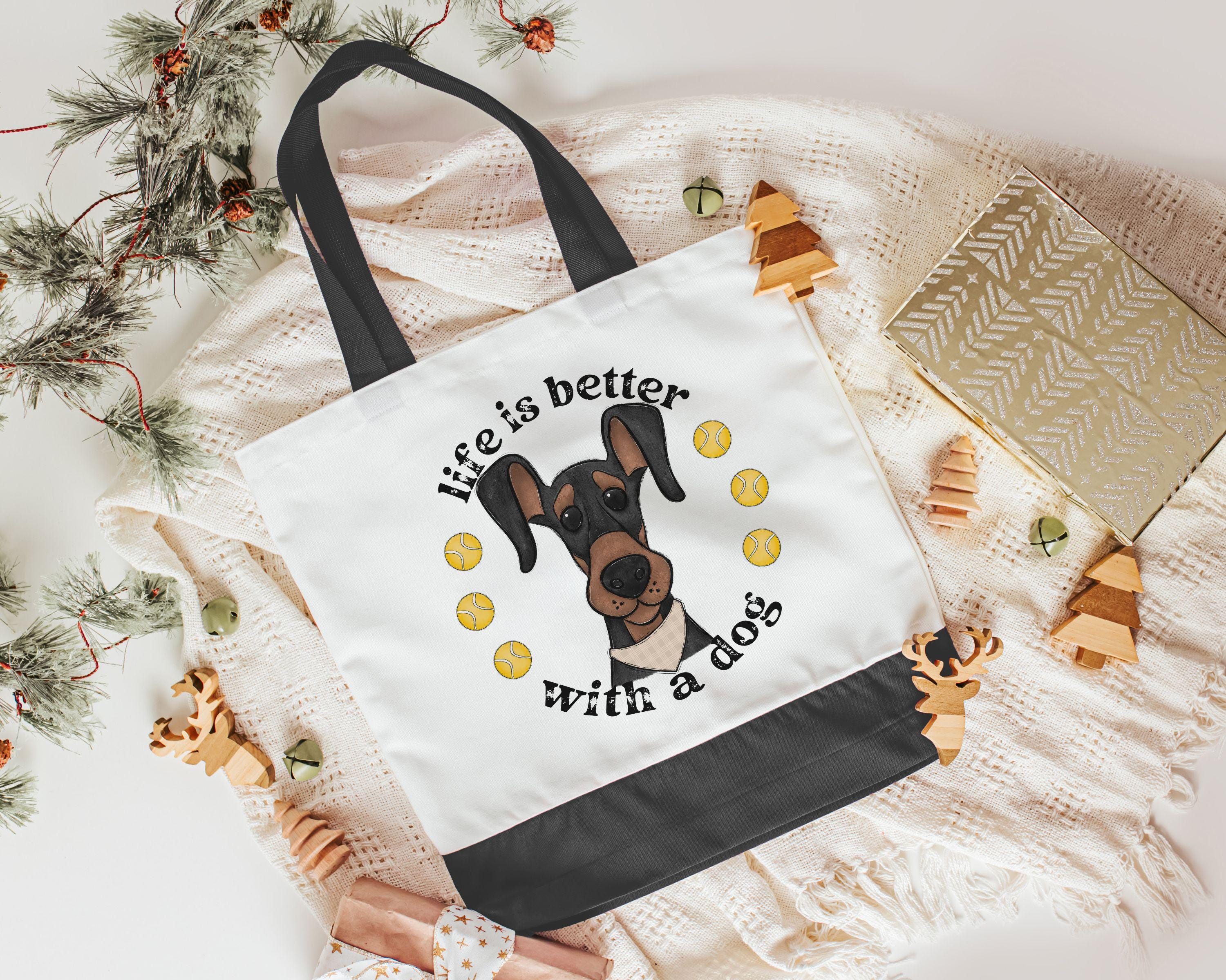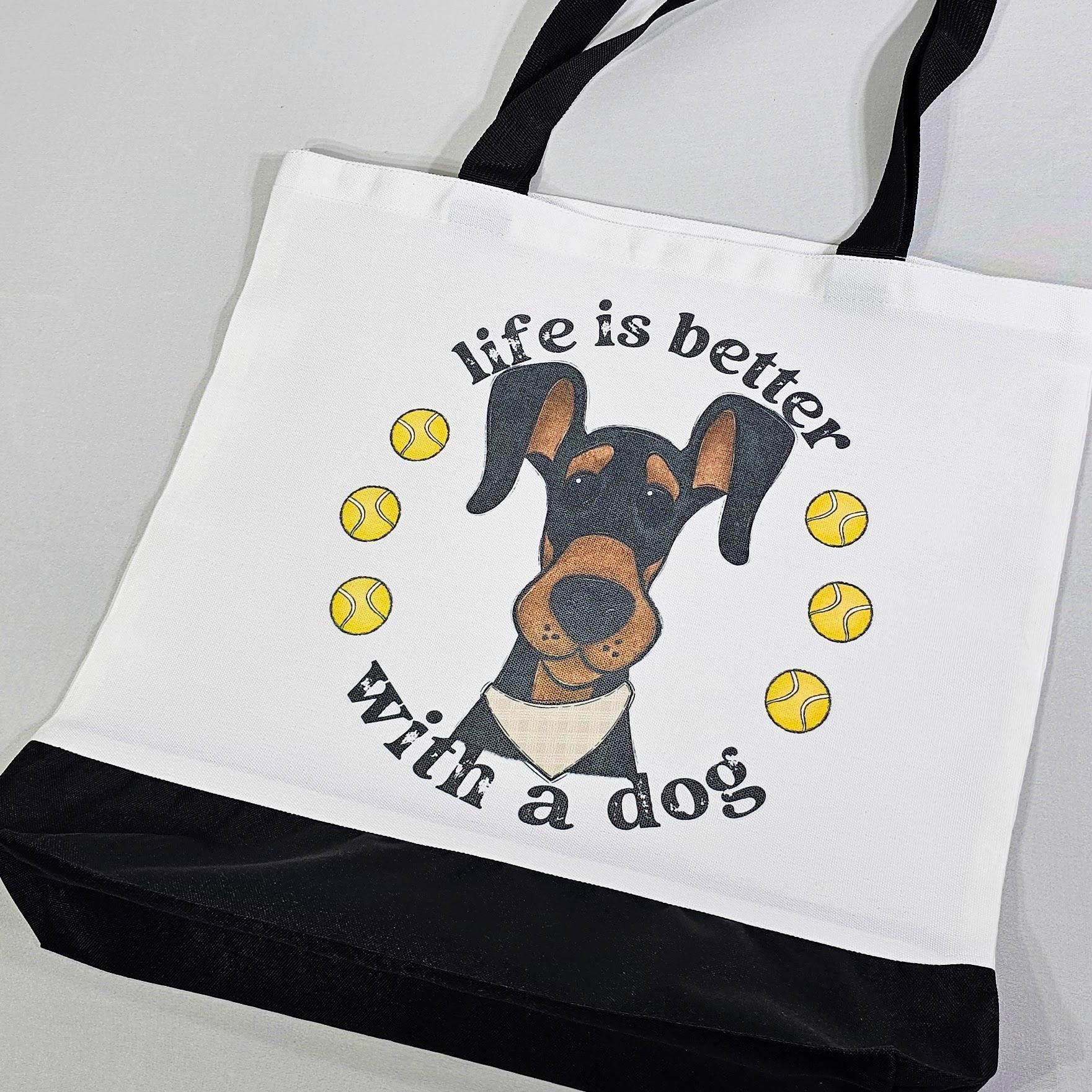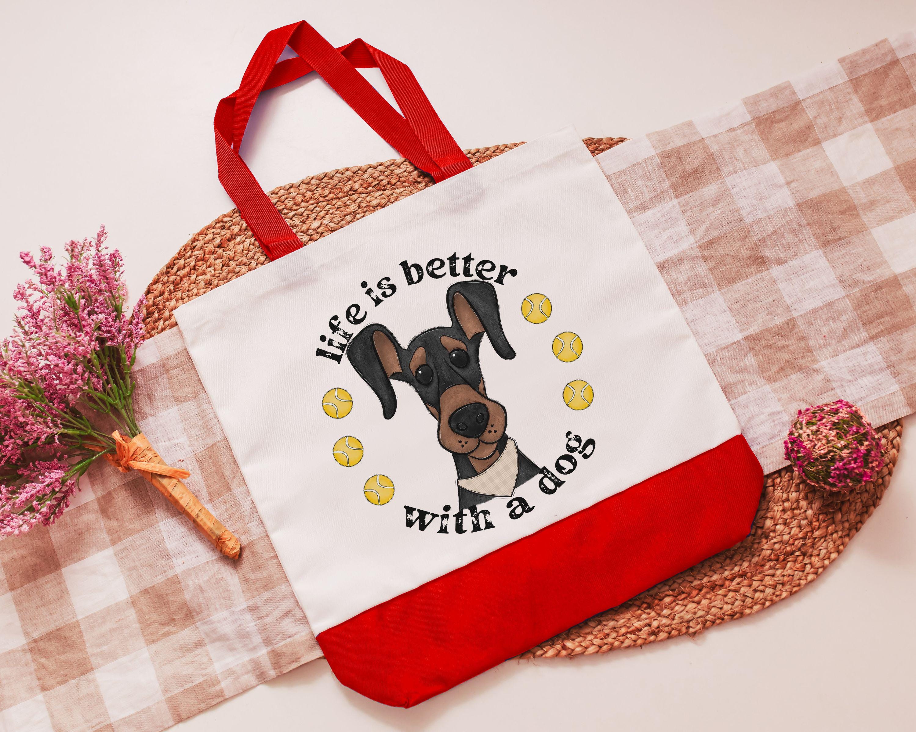 life is better with dogs Doberman pinscher dog lover tote bag for women, dobie mom Doberman gifts, reusable shopping bag, cute dog gifts for
