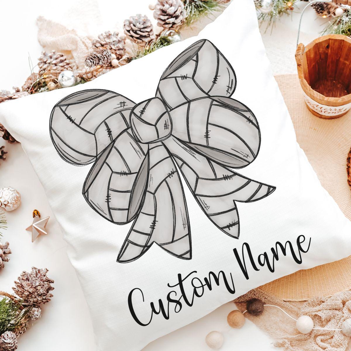 personalized volleyball coquette bow throw pillow with name, cute volleyball gifts for teenage girls, volleyball senior gifts for girls