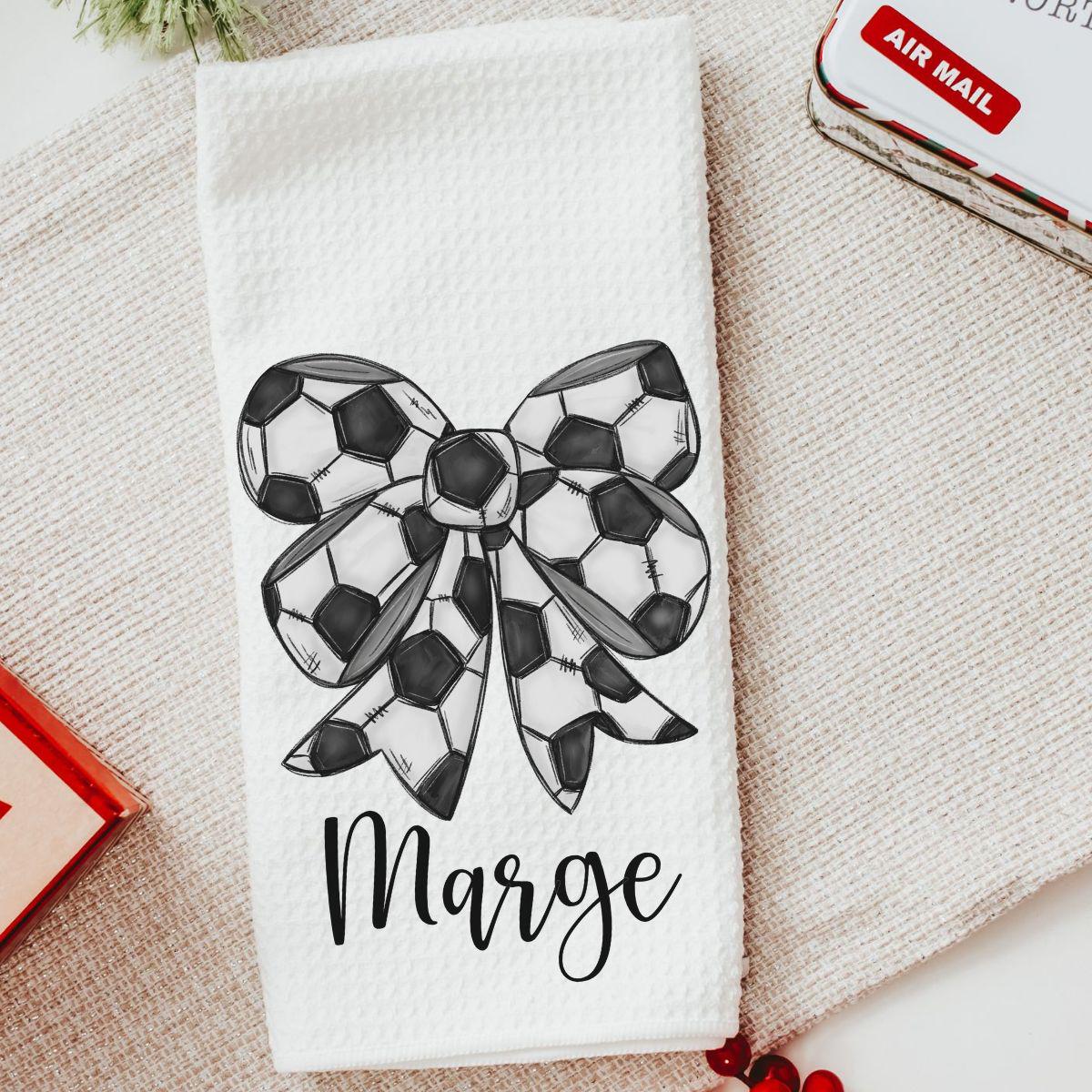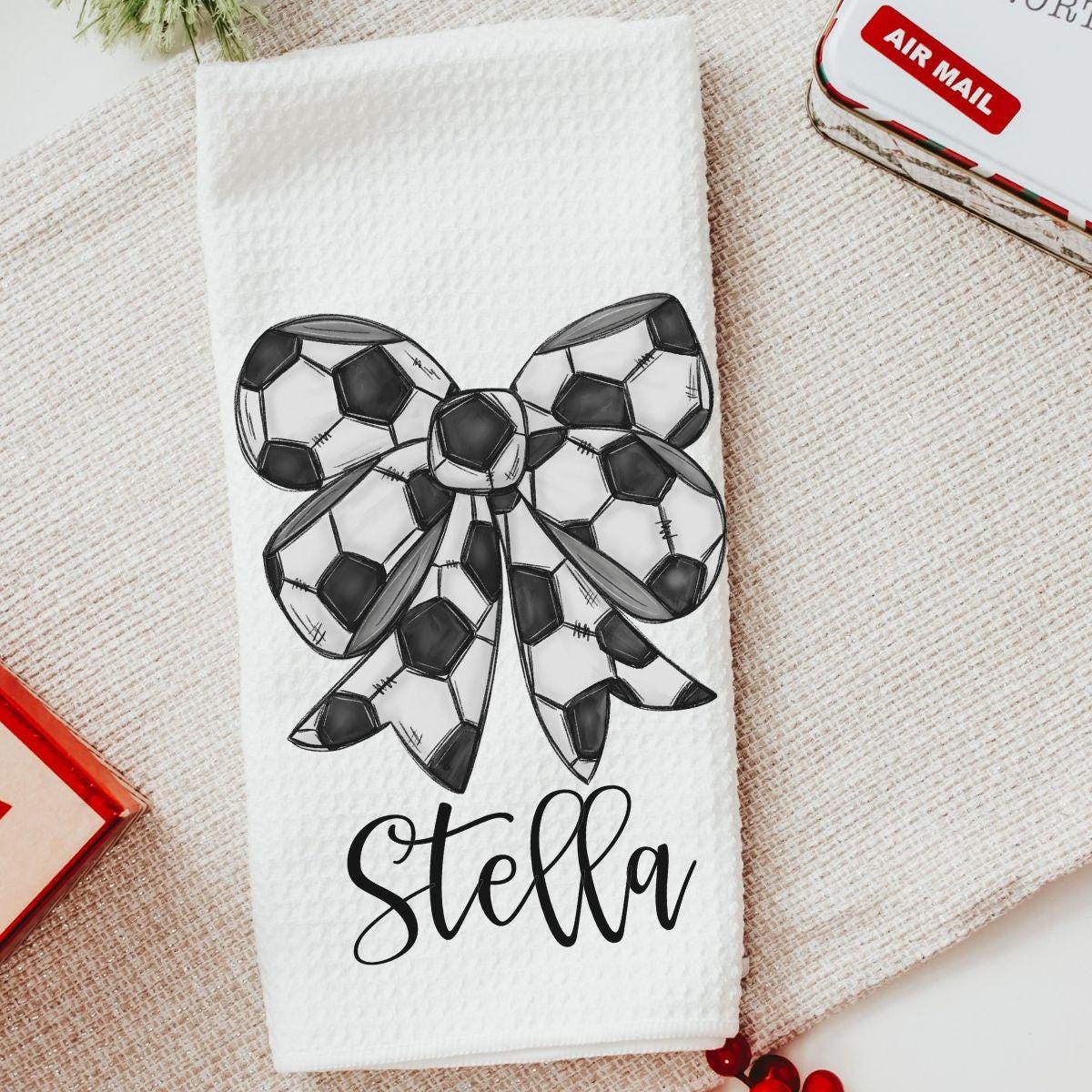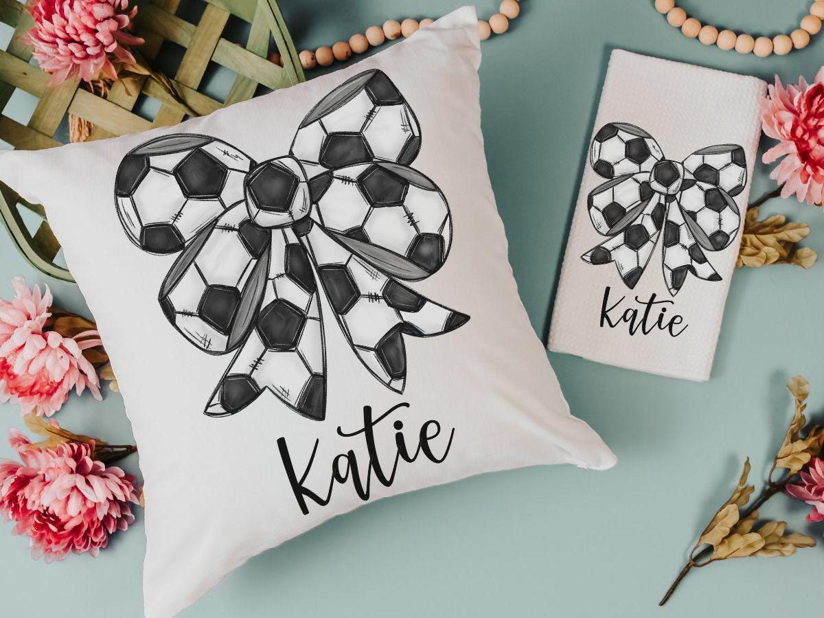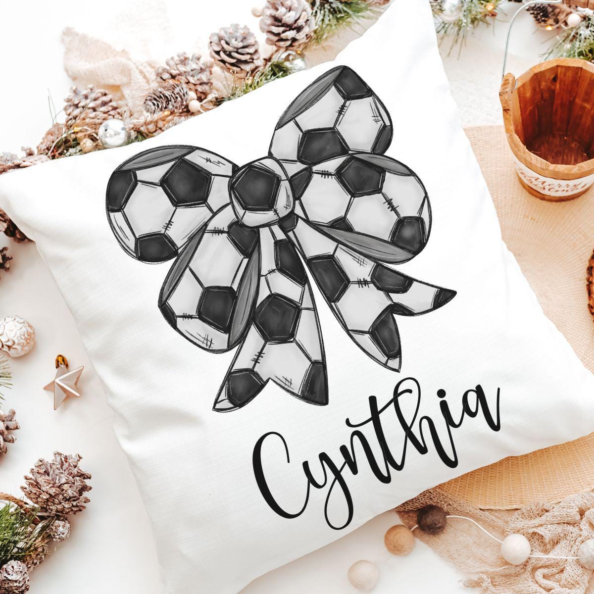 personalized soccer coquette throw pillows for bed cute soccer coach gift from team, soccer bow rally towel, soccer team gifts for girls