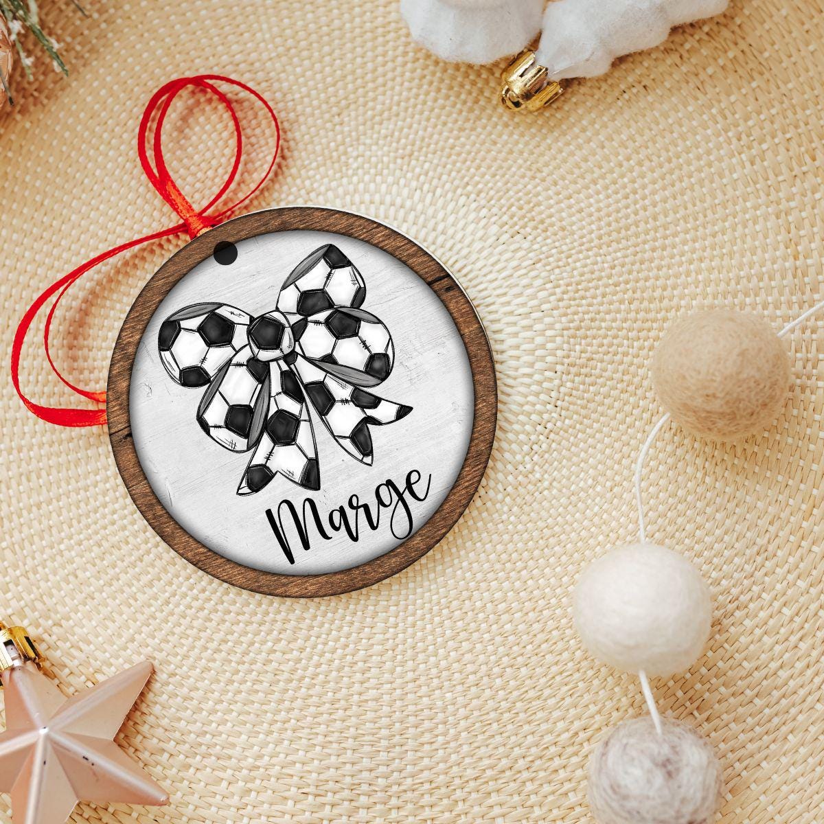 Surprise your coach or soccer enthusiast with our Personalized Soccer Coquette Throw Pillow, perfect for the bed and a cute gift from the team. Paired with a soccer bow rally towel and coordinating ornament, this set makes thoughtful soccer team gifts or soccer senior gifts. Each item is designed to add a playful touch to any space. The gift set, which includes the throw pillow, towel, and ornament, can be purchased separately or as a complete set for a memorable and personalized soccer decor gift.