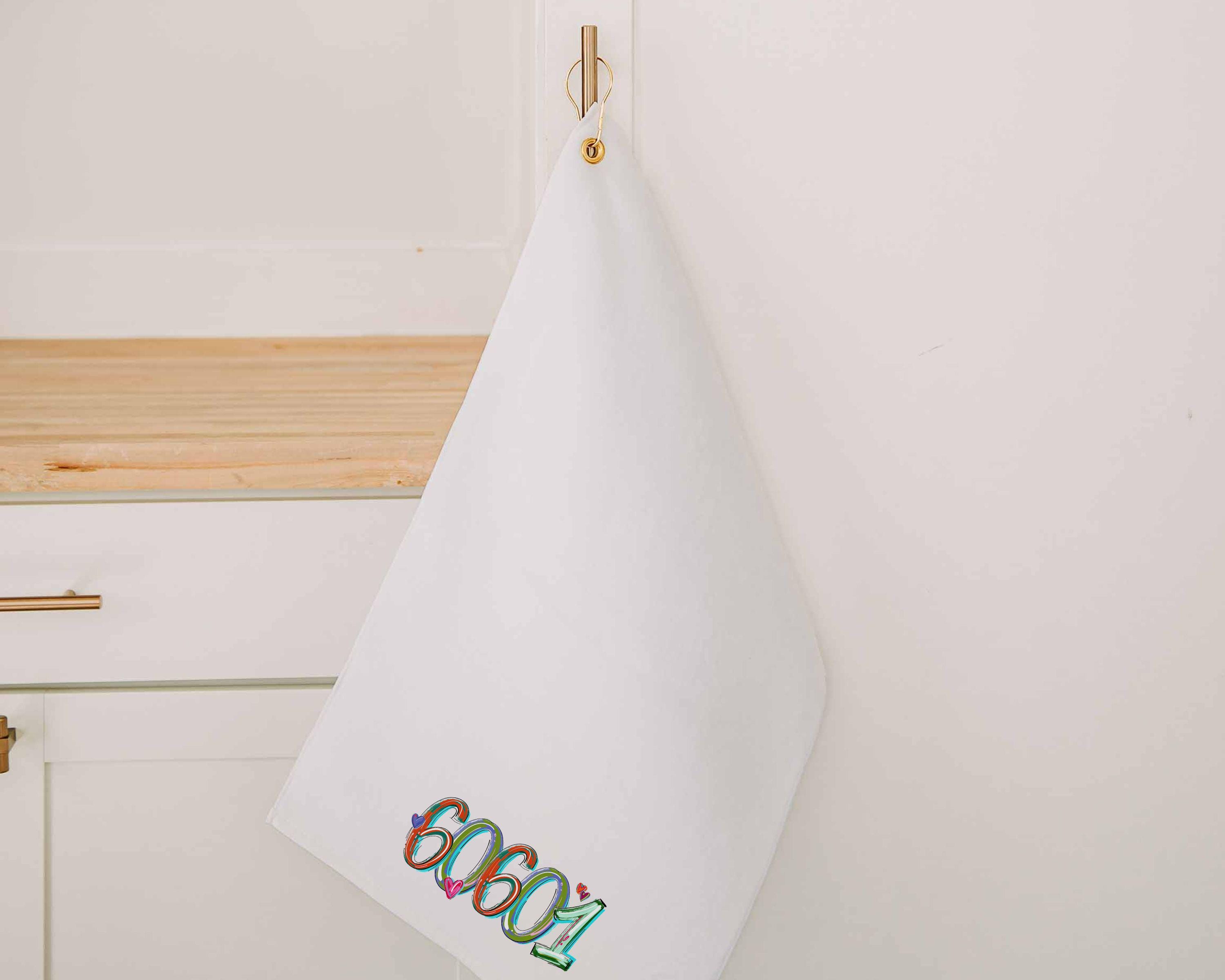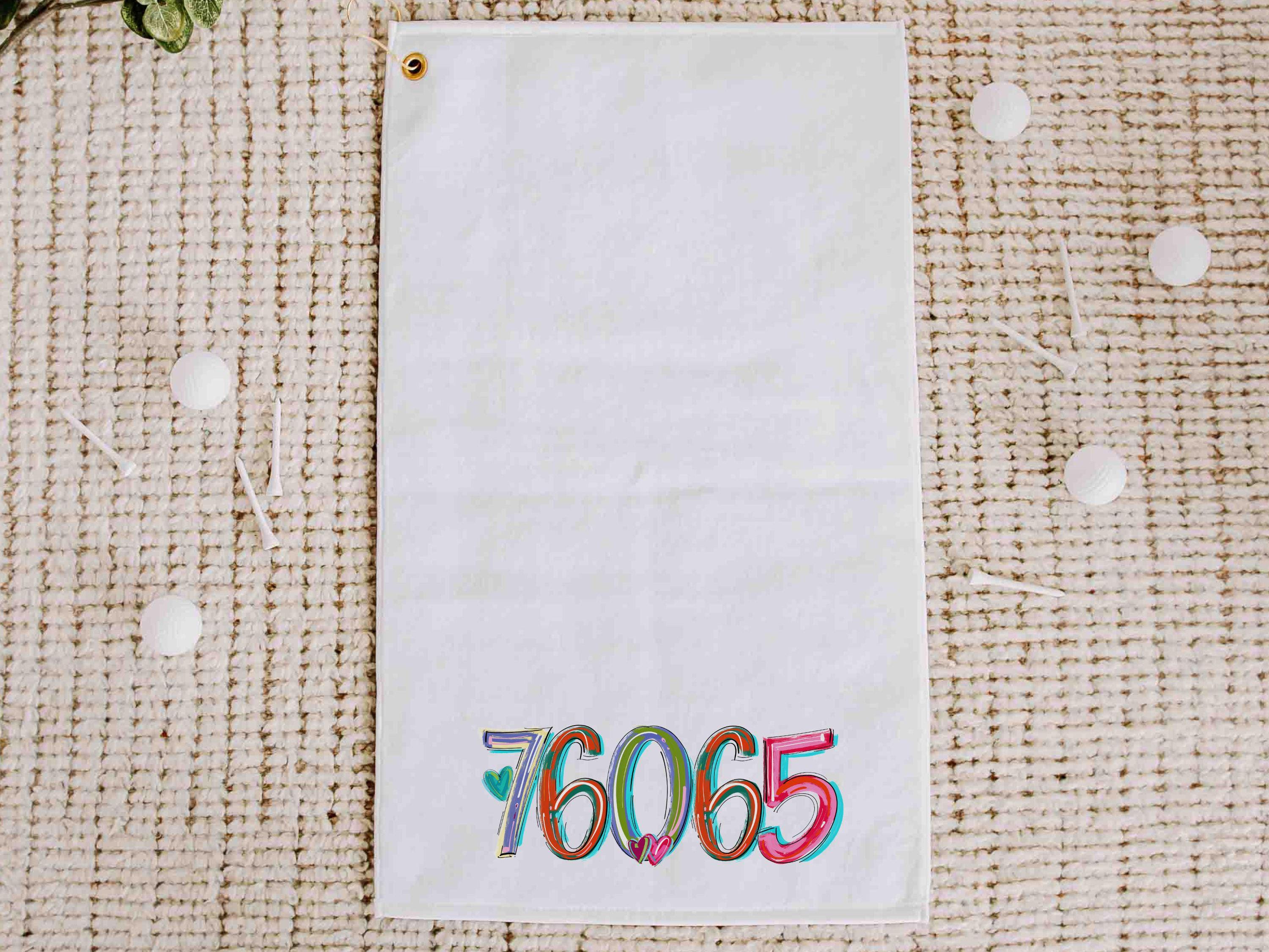 This personalized golf towel with grommet features a custom zip code, making it a fun and functional accessory for any golf bag. A cute gift for women who love to golf—perfect for retirement, birthdays, or just because. Practical, personal, and easy to clip right to her gear.