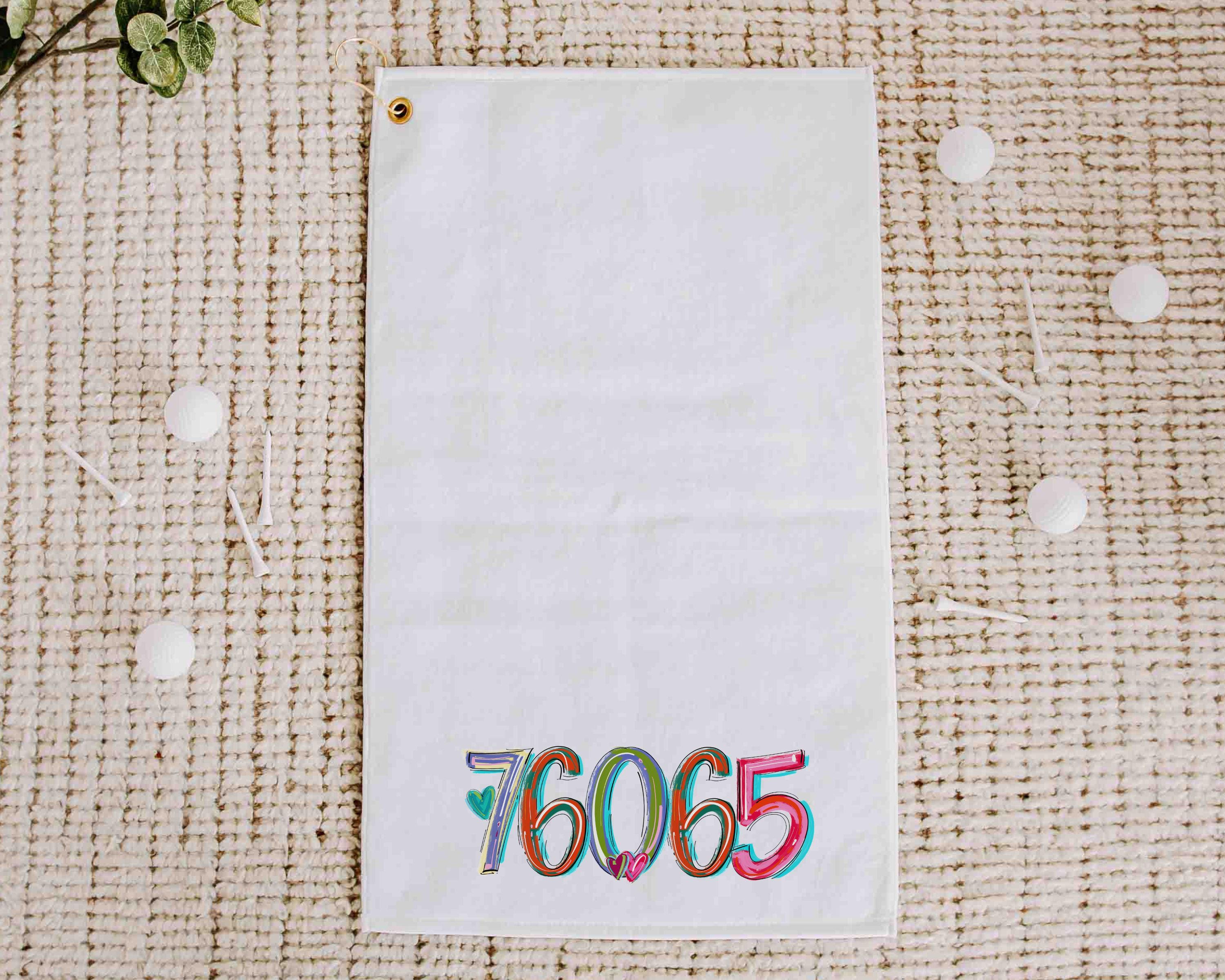 personalized golf towel with grommet, custom zip code towels golf accessories, golfing gifts for women, cute golf retirement gifts for her