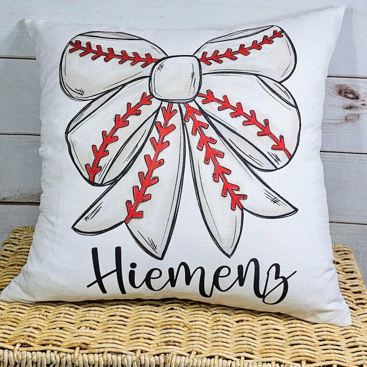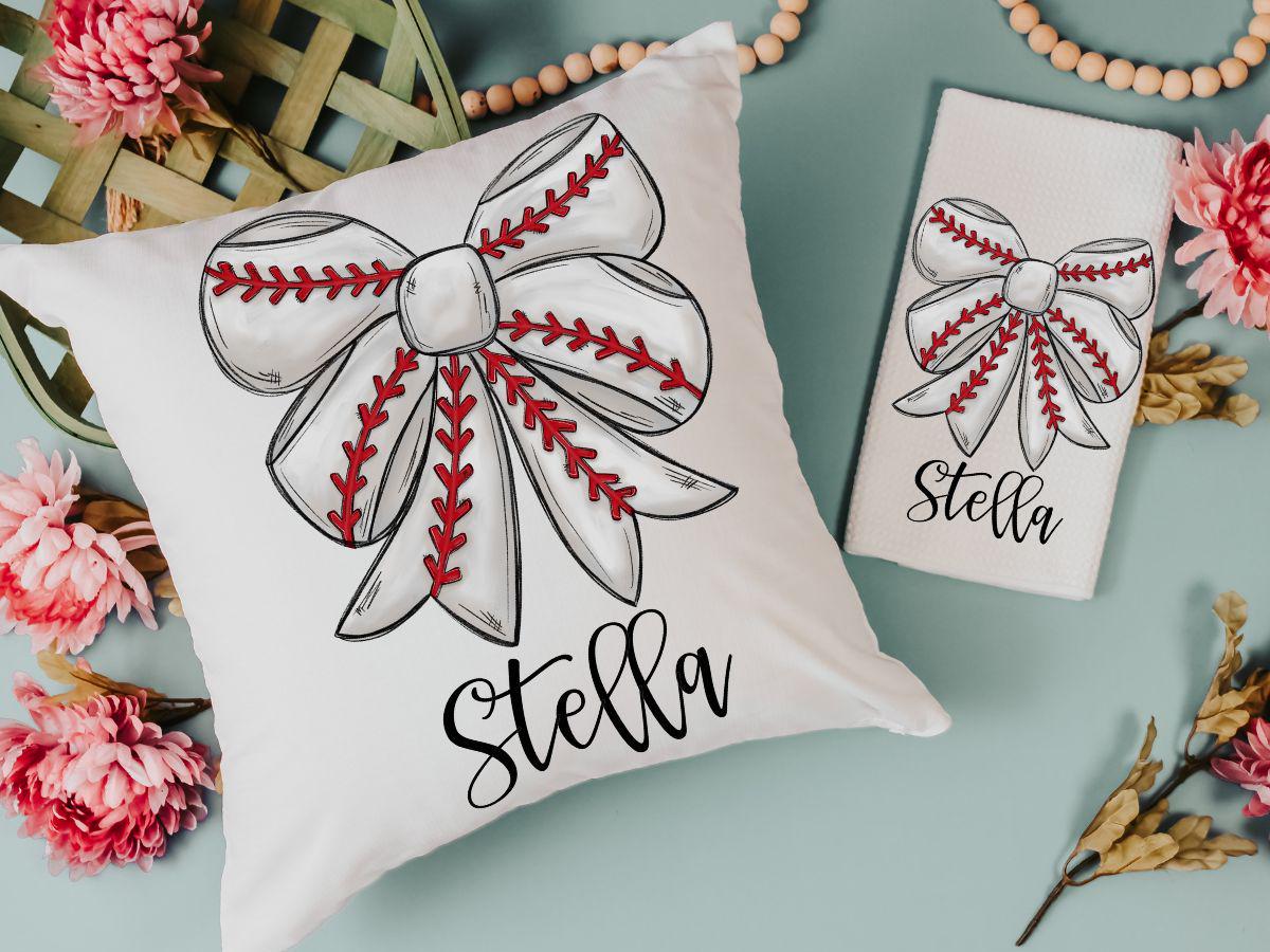 personalized girly baseball throw pillow cover 18x18, baseball coquette kitchen towels with name, cute baseball mom gifts, rally towel, best