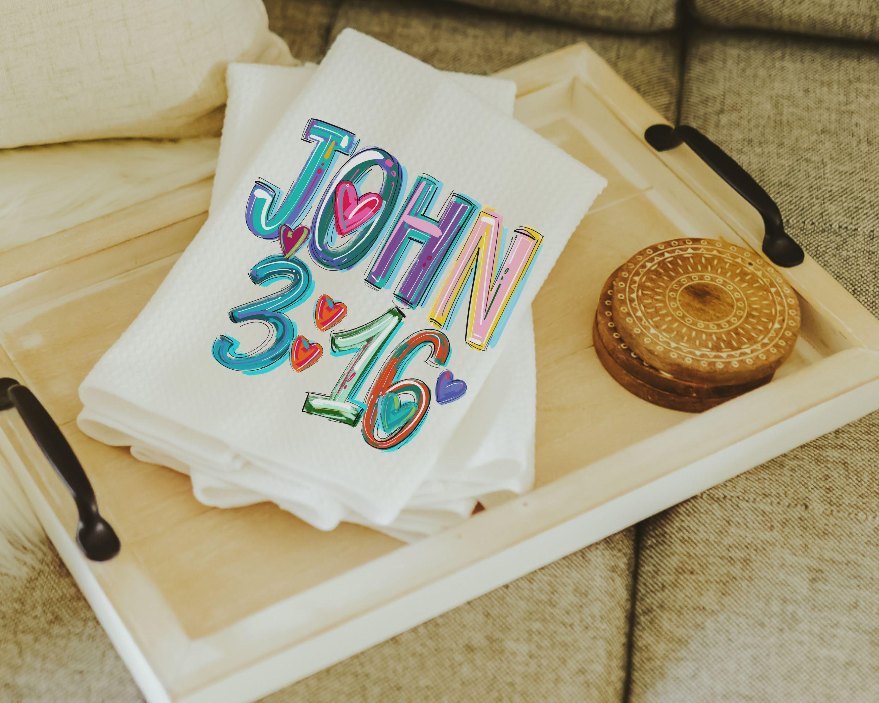 for God so loved the world colorful scripture throw pillows best sellers, John 3:16 Bible verse kitchen towel, Christian Christmas gifts for