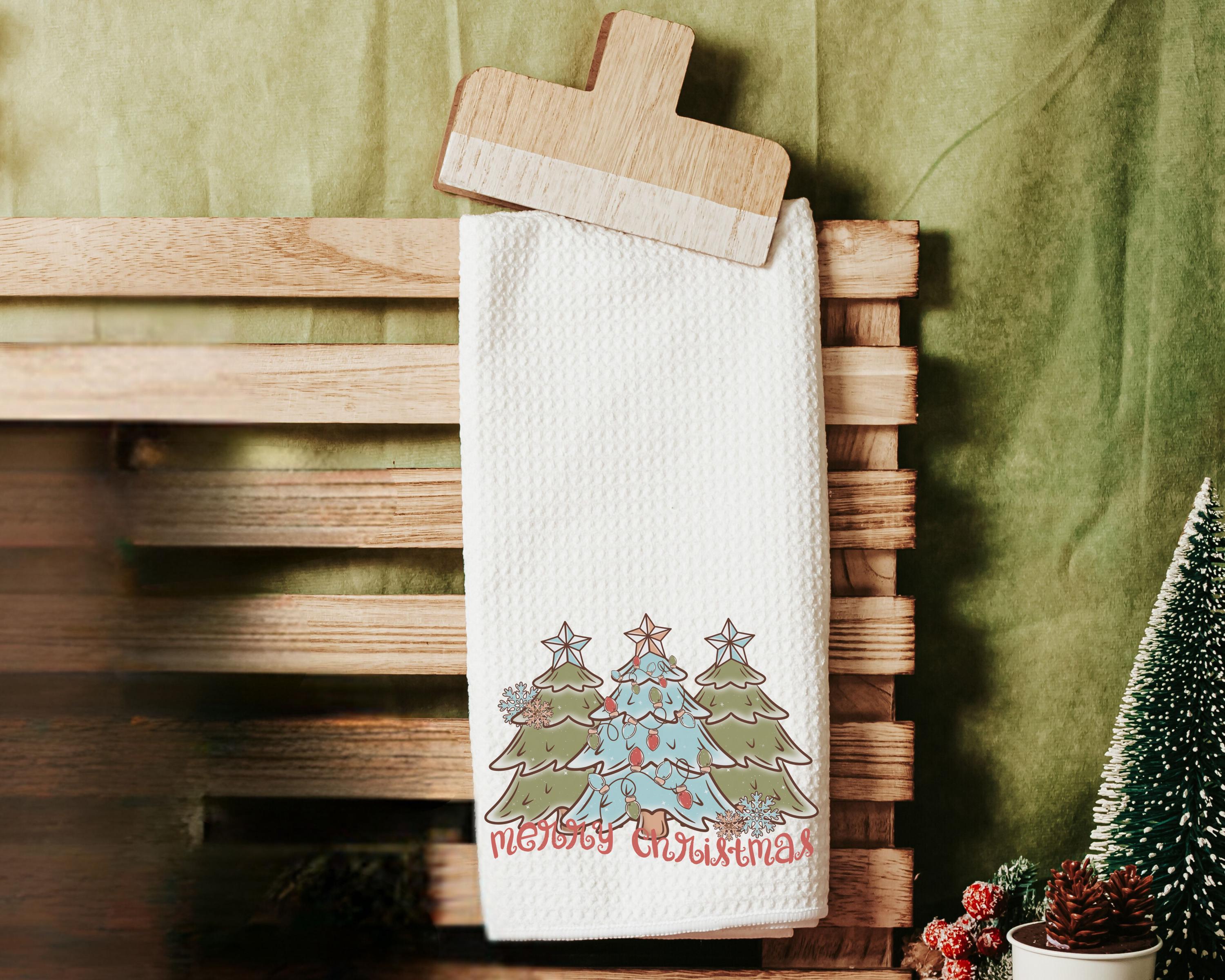 Create a warm boho Christmas feel with our "Merry Christmas" throw pillows, with moss green Christmas trees—ideal for adding charm to a new home or as thoughtful gifts for neighbors and coworkers. Pair with a matching towel and coordinating ornament, each available separately or as a set for a complete festive look.