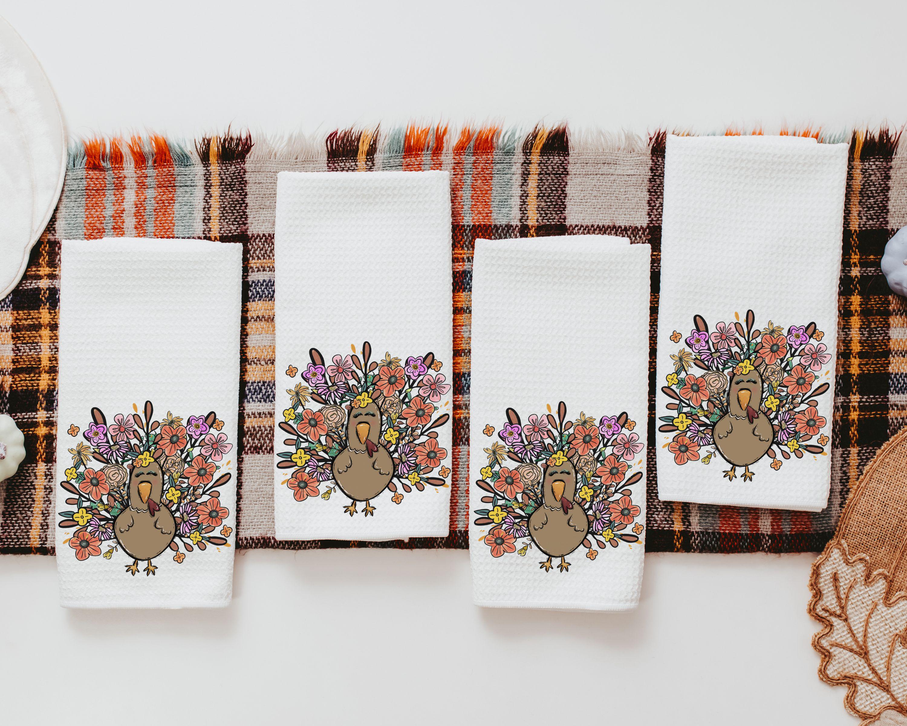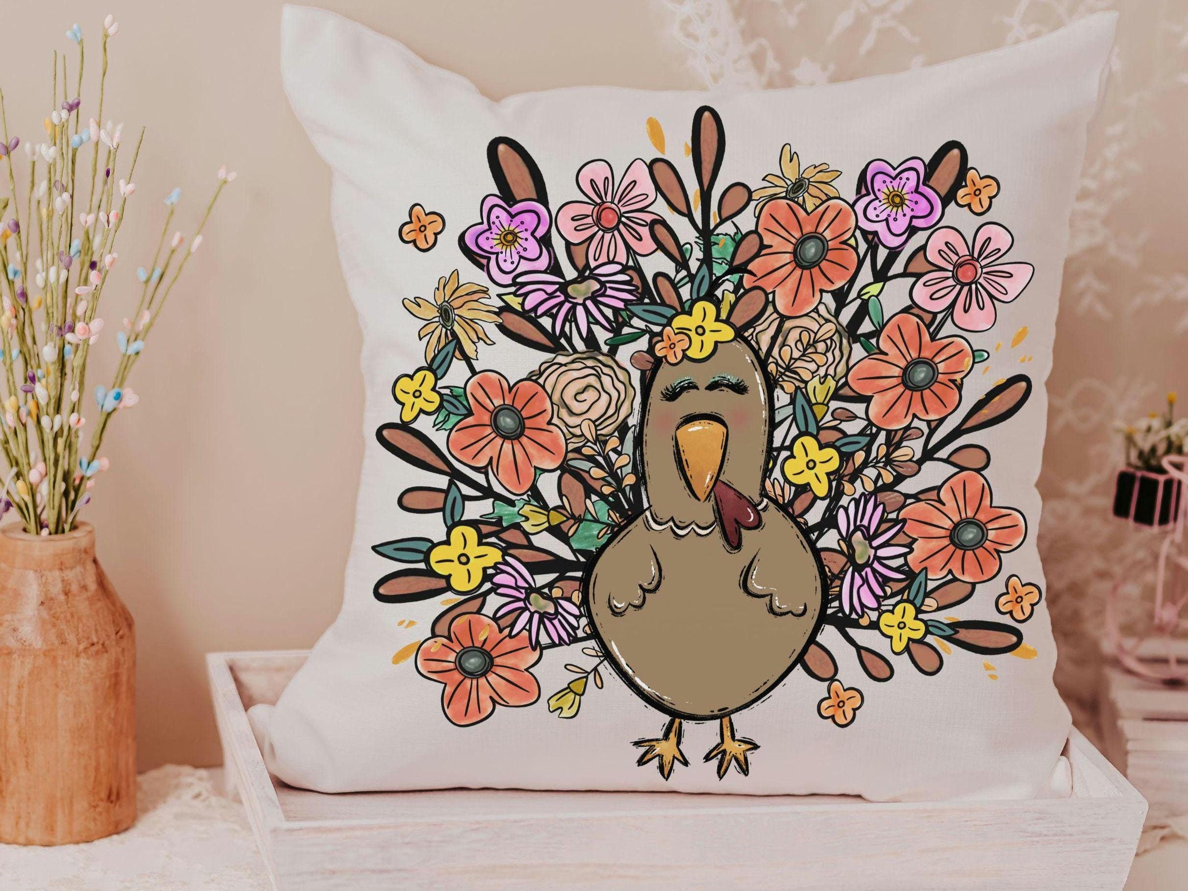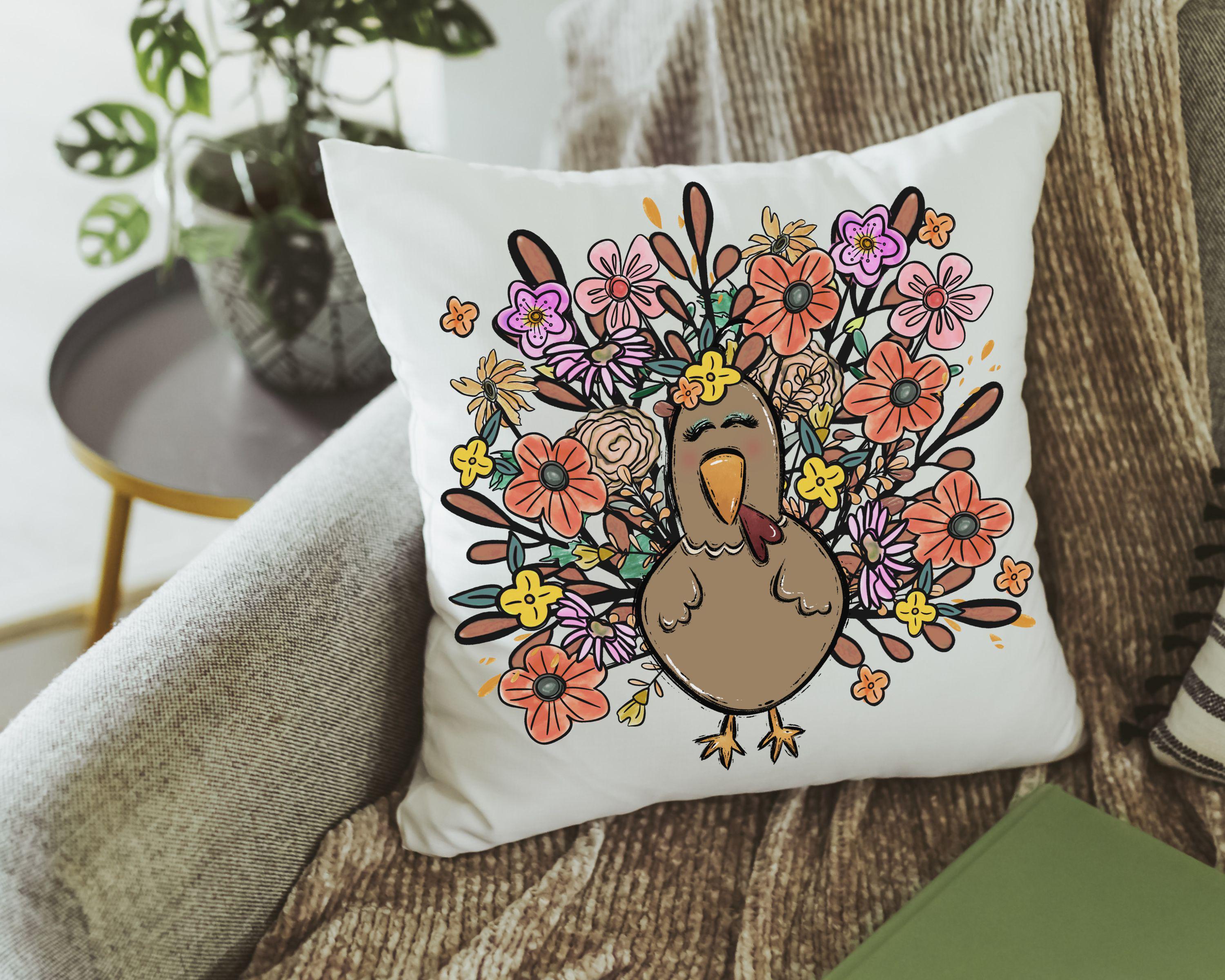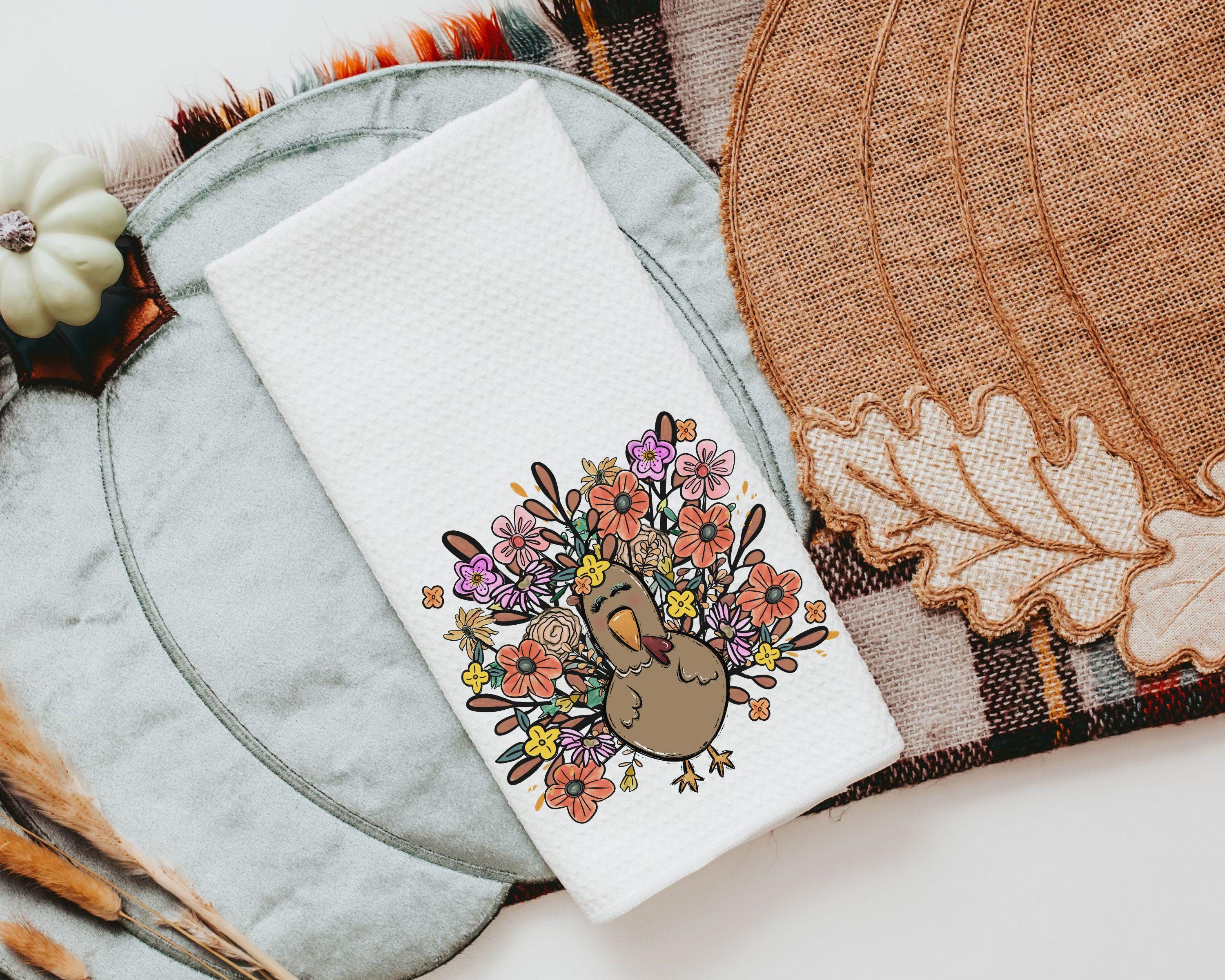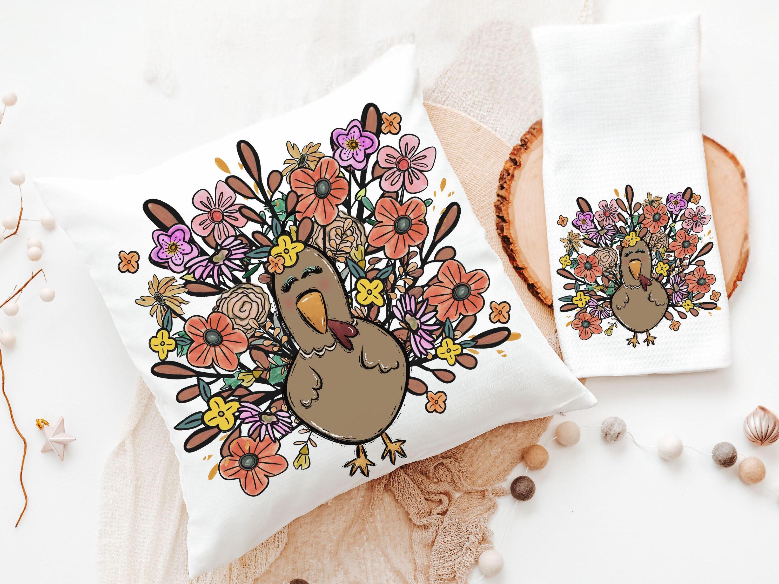 Bring turkey day vibes to your space with fall floral pillows and matching towels featuring a cute girly turkey design. Perfect for Thanksgiving decor in the living room or family room, they also make sweet fall hostess gifts. Available to purchase as accent pillows or towels, sold separately or as sets.
