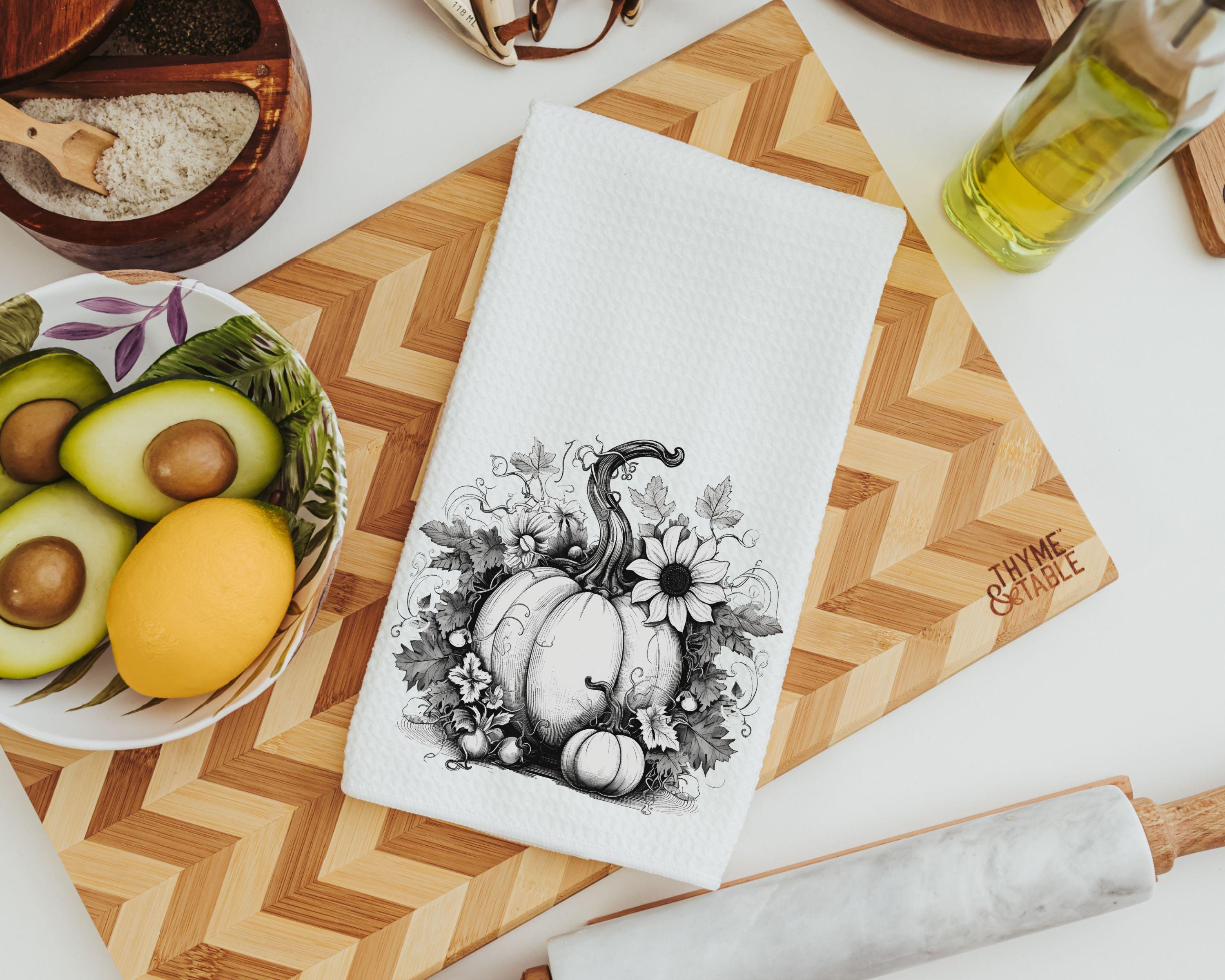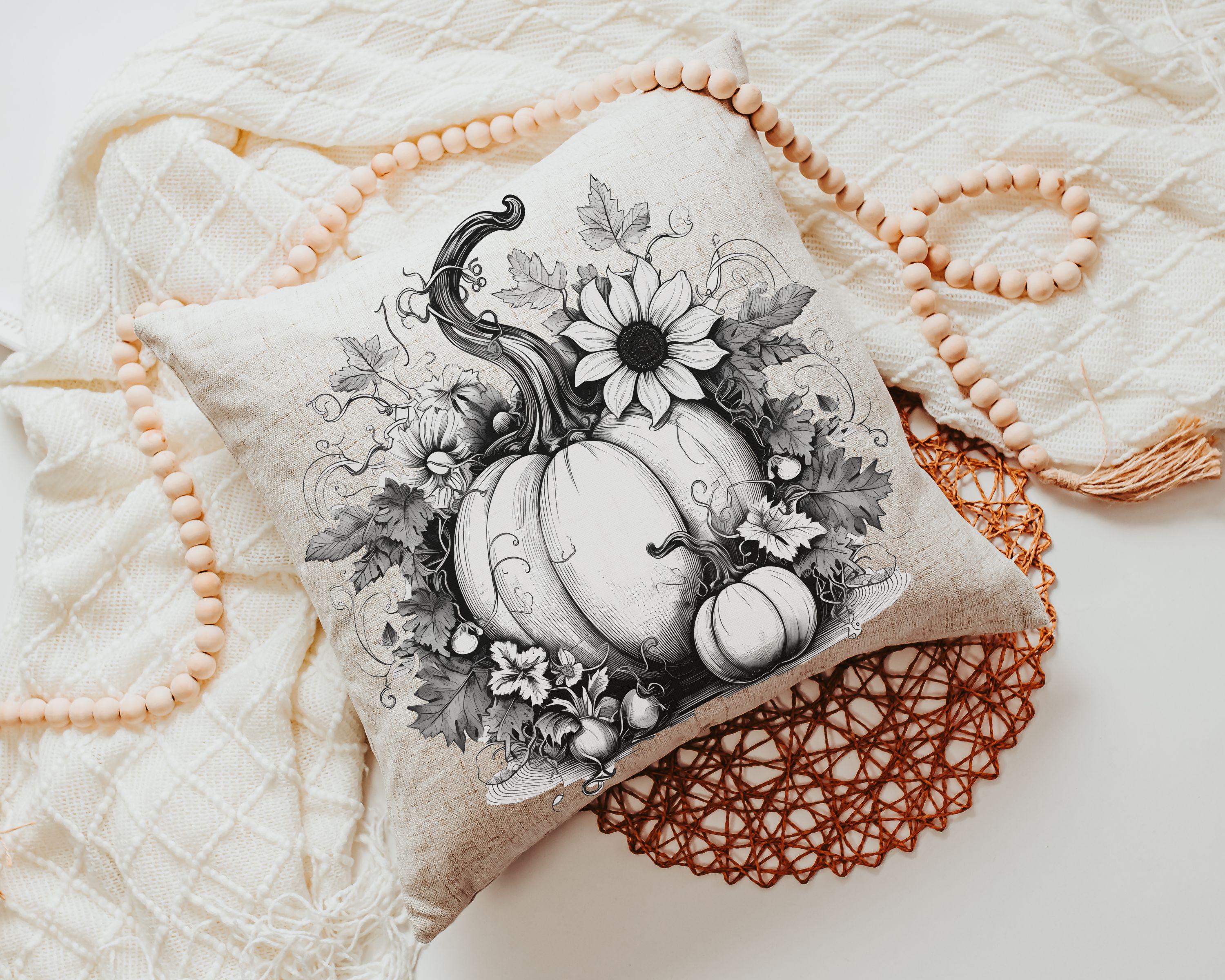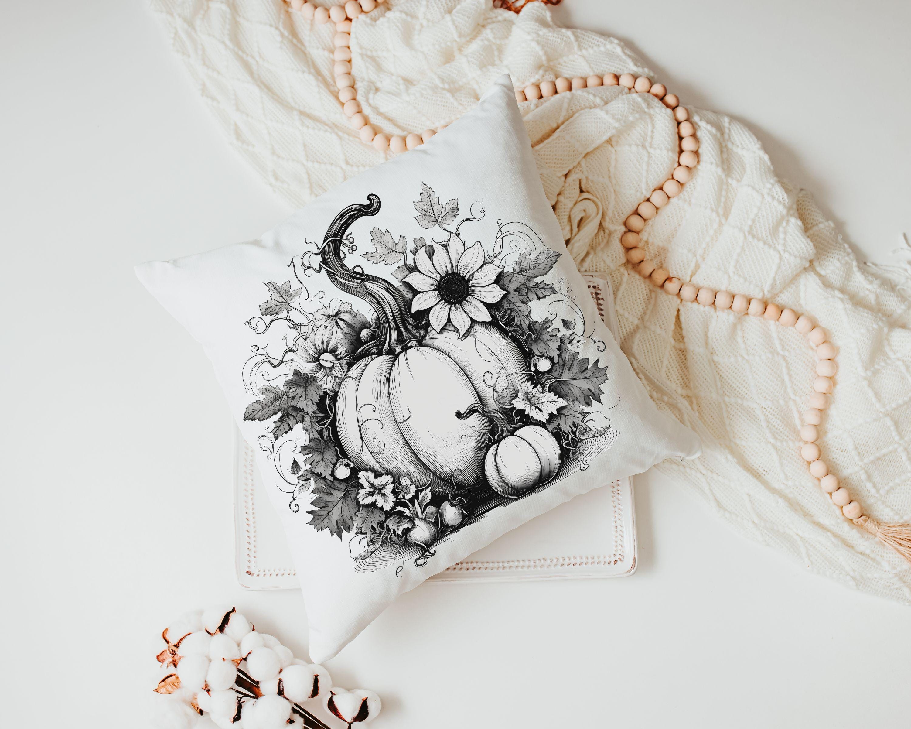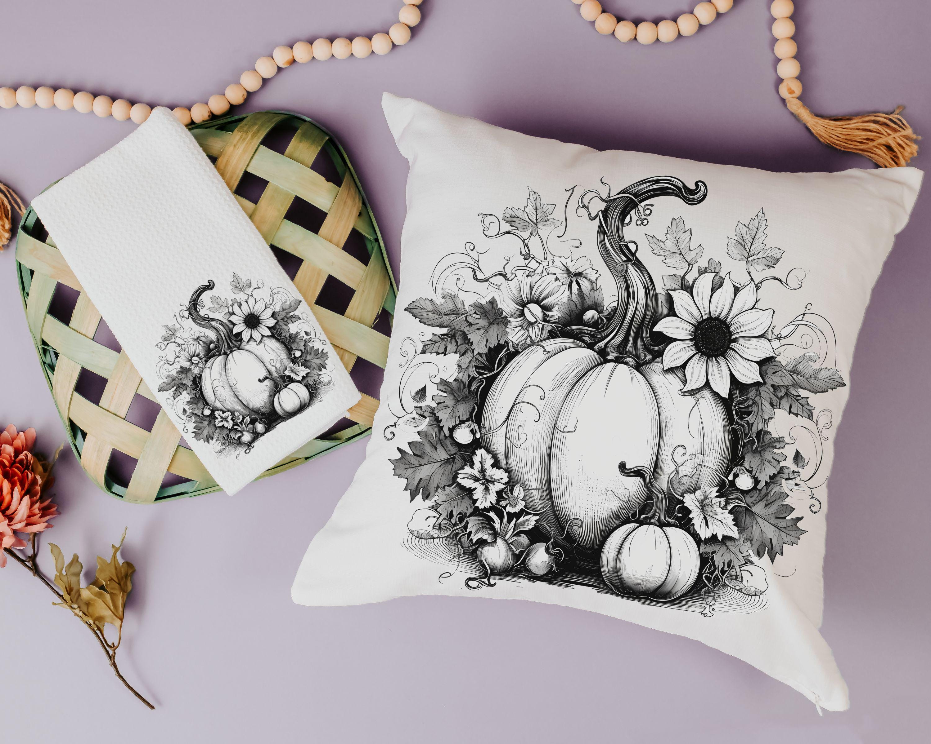 Add a touch of elegance to your fall decor with our Black and White Pumpkin Throw Pillows, perfect for the couch and modern farmhouse decor. These pillows, available in cream and off white, make great Thanksgiving hostess gifts or thoughtful October birthday gifts for her. Complete the look with matching towels, all of which can be purchased individually or as a set, creating a chic and coordinated fall vibe for your home!