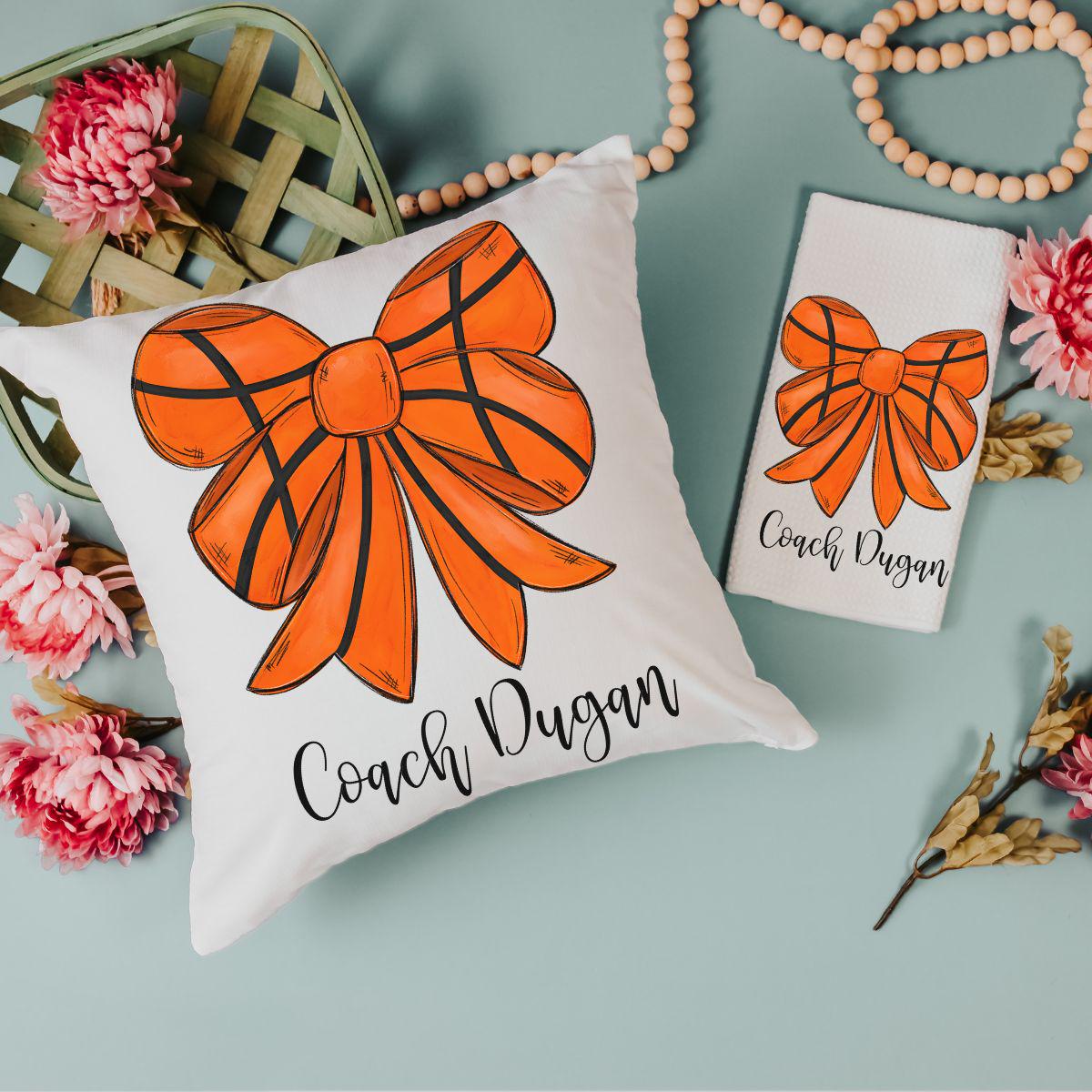 personalized basketball coquette throw pillows for dorm, cute basketball senior night gifts for girls, rally towel with name, basketball car