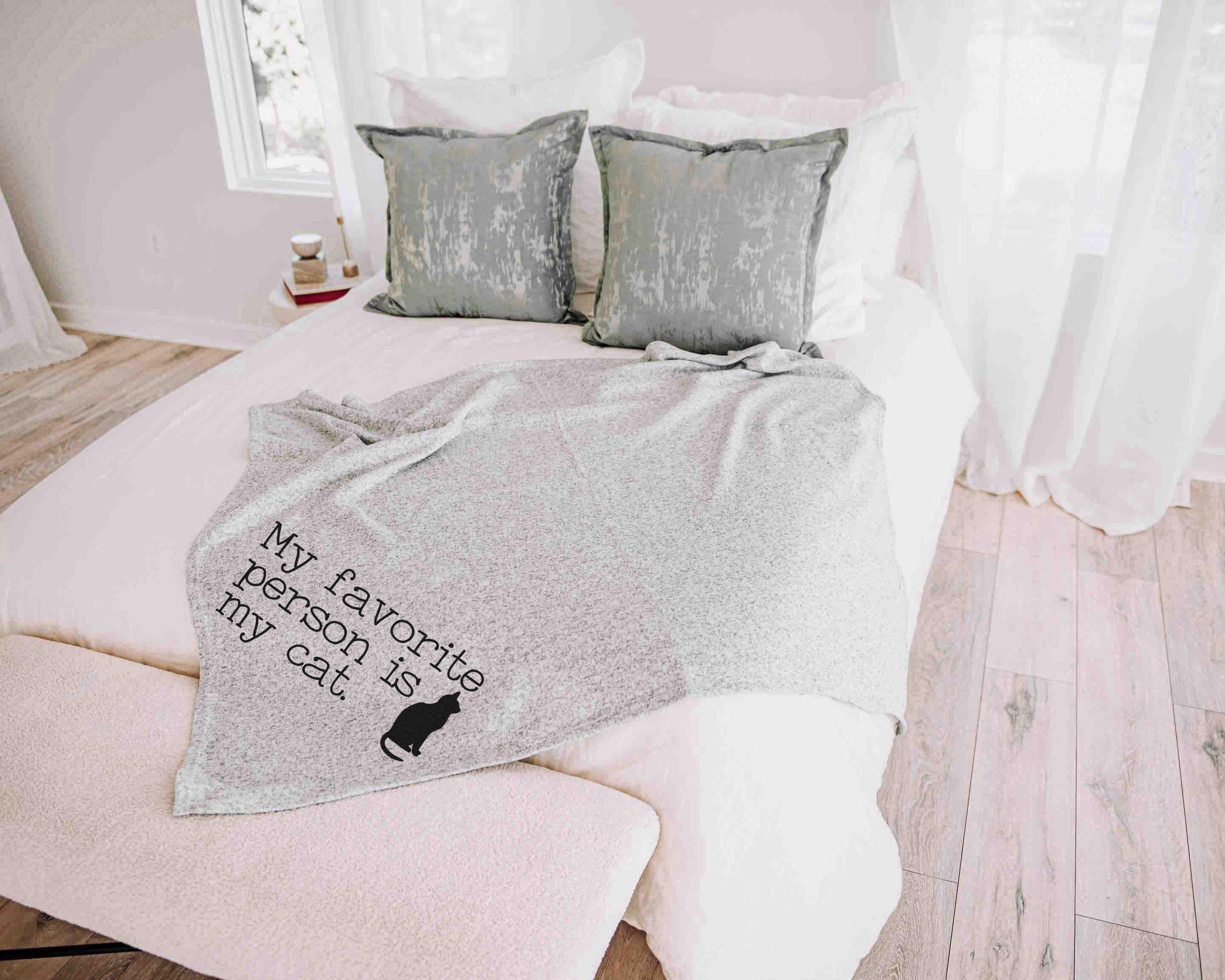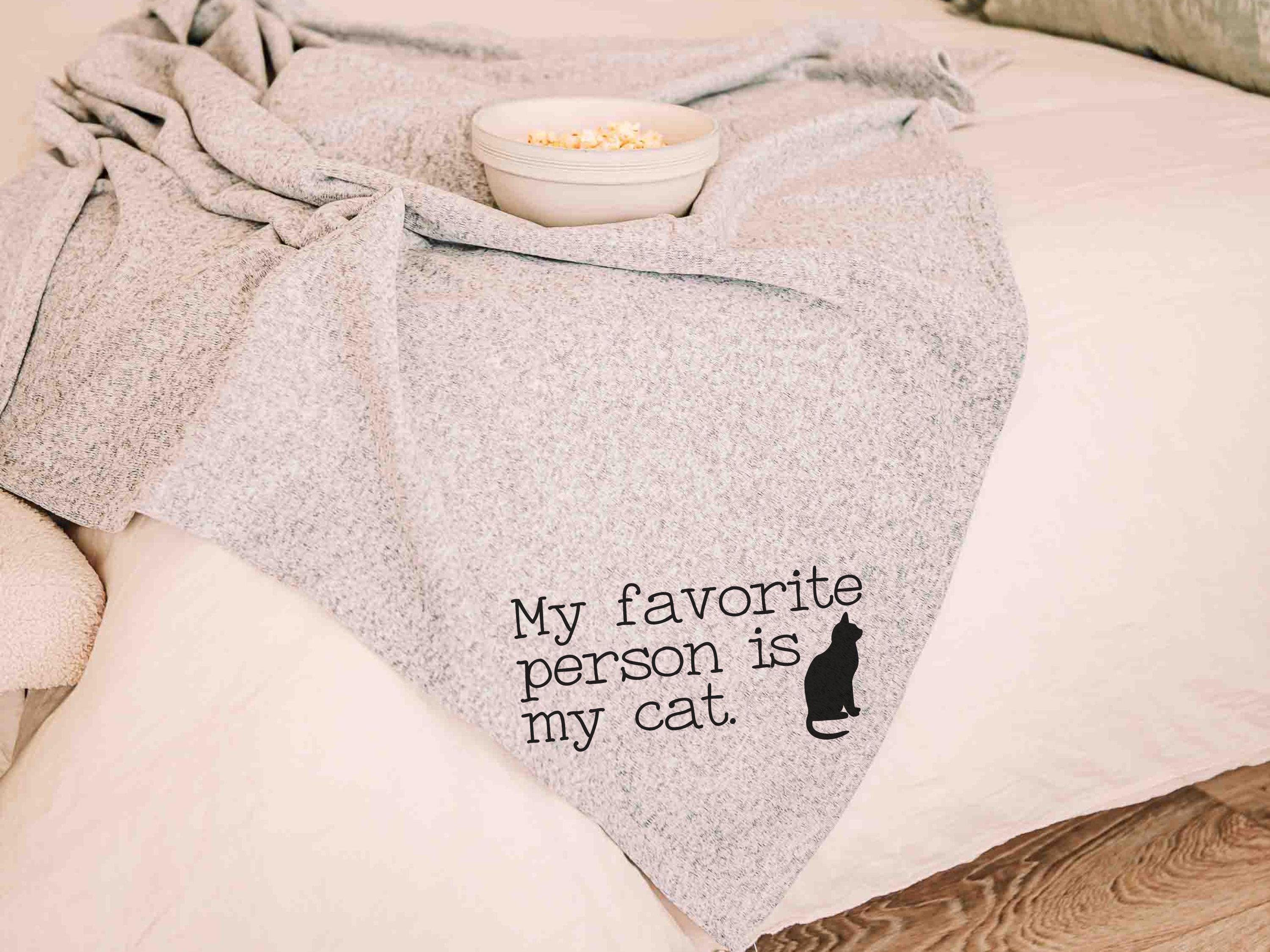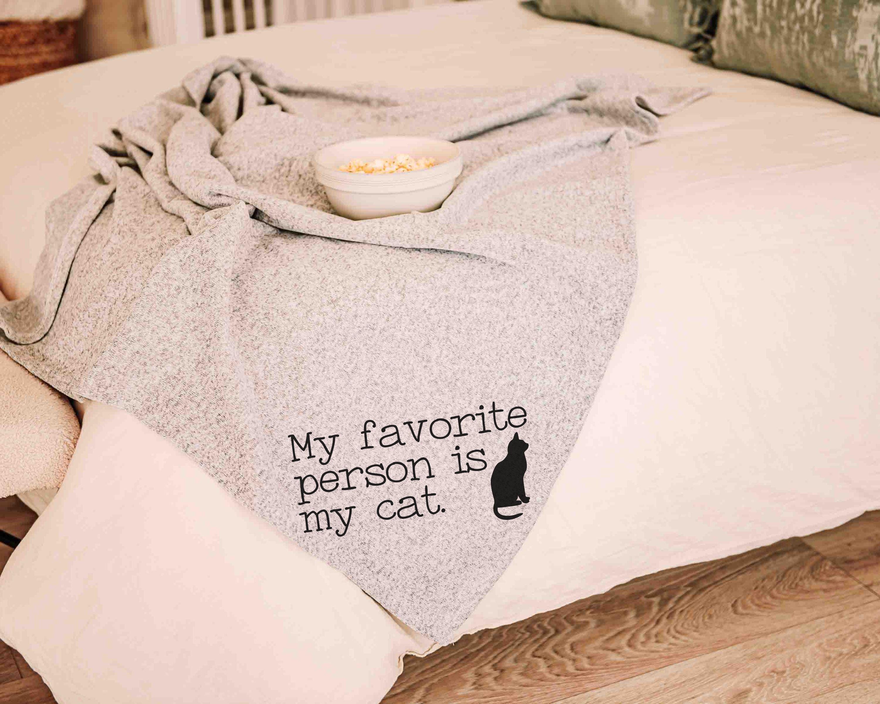 my favorite person is my cat throw blanket for bed, cozy Christmas gifts for cat lovers, snuggle blanket 50x60, cat mom blanket, cute cat