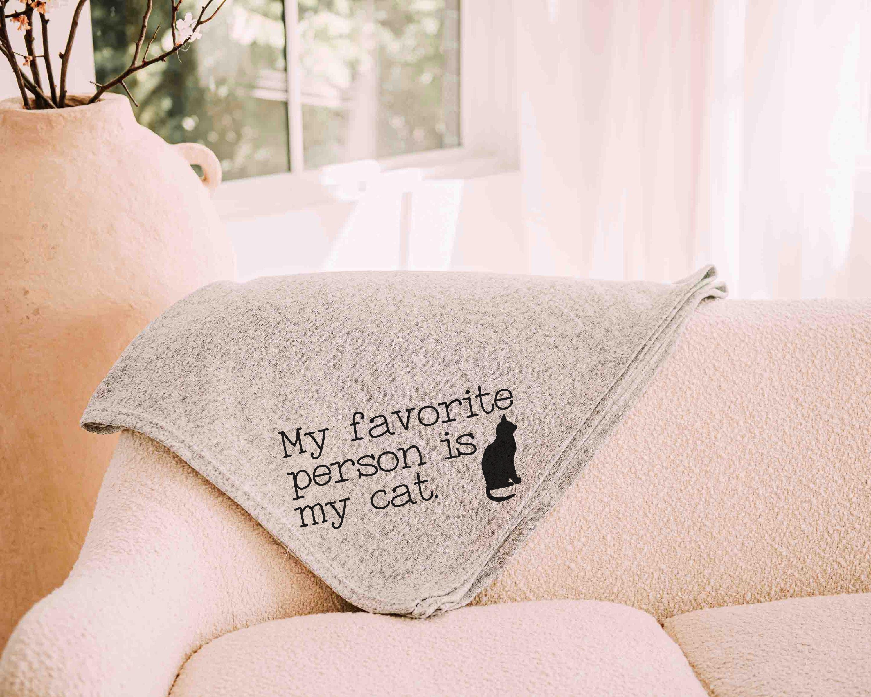 Stay warm and cozy with our "My Favorite Person is My Cat" Throw Blanket, perfect for the bed and a thoughtful cozy Christmas gift for cat lovers. This 50x60 snuggle blanket is an ideal cat mom blanket and adds a cute touch to any room. Whether you're gifting it to a special cat lover or treating yourself, it's a warm and playful Christmas gift for women who adore their feline companions!