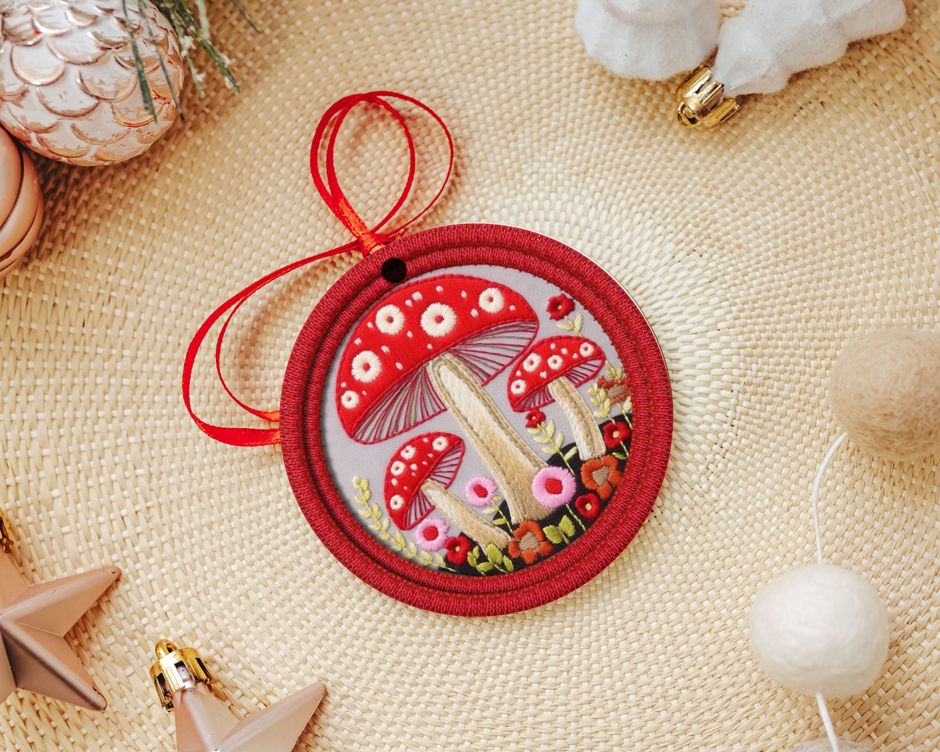 Add woodland vibes to your home with our Mushroom Ornaments for Mini Trees or Car Charms. These lightweight MDF ornaments feature a printed thread-like mushroom design, are double-sided, durable, and include a red ribbon. Perfect for mini trees, rearview mirrors, or as gifts for nature lovers and mushroom enthusiasts.