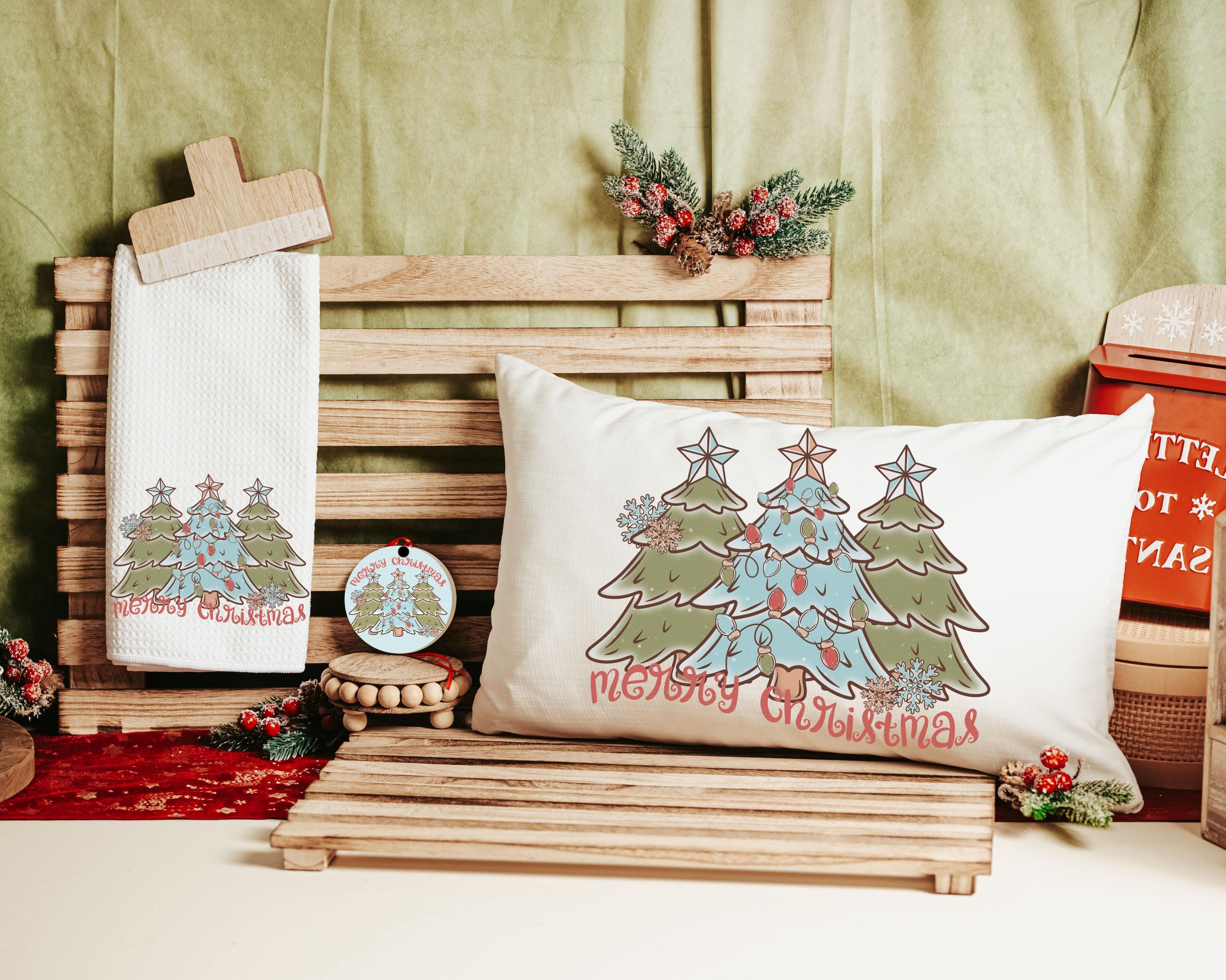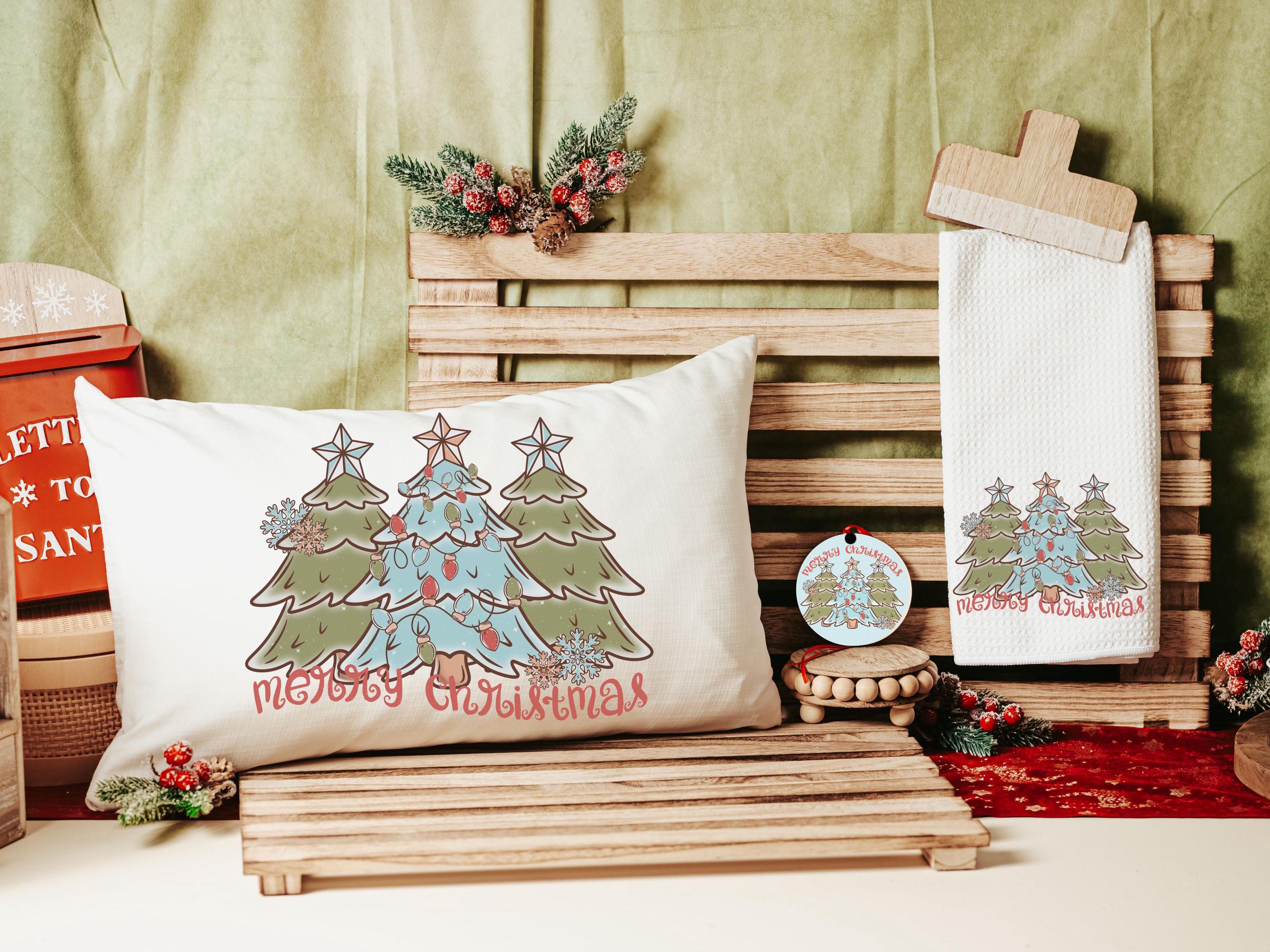 Add boho Christmas style to your home with Merry Christmas towels, matching pillows, and a coordinating ornament with moss green details. Perfect for winter decorating or the powder room, this set makes a beautiful housewarming gift and stylish stocking stuffers. Available to purchase as pillows, towels, or ornaments, sold separately or as sets.
